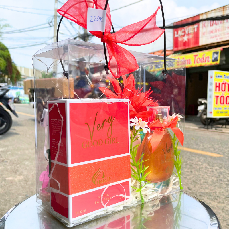 Set quà Charme Very Good Girl 100ml được thiết kế trong hộp trong suốt sang trọng, kết hợp hoa trang trí cùng ánh đèn đom đóm lung linh, tạo nên một món quà nổi bật và đầy tinh tế cho những dịp ý nghĩa.