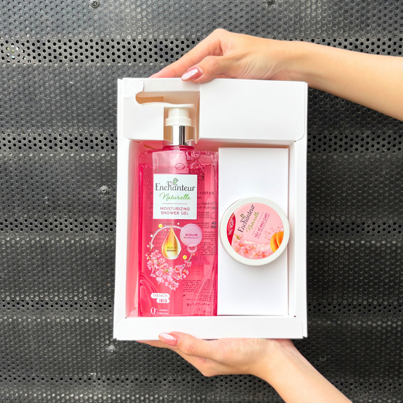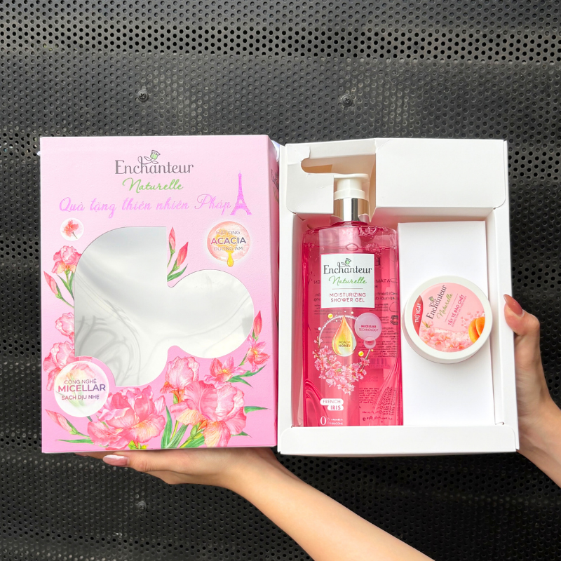 Set Quà Tặng Sữa Tắm Enchanteur Naturelle Hương Hoa Iris & Tẩy Tế Bào Chết Body (Set Màu Hồng)