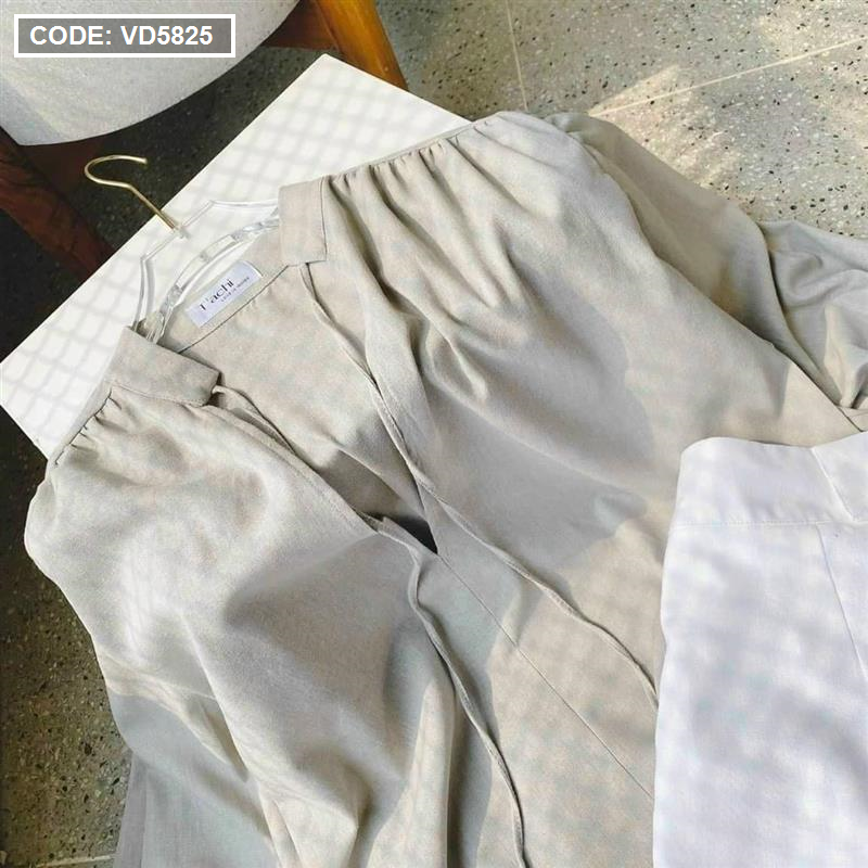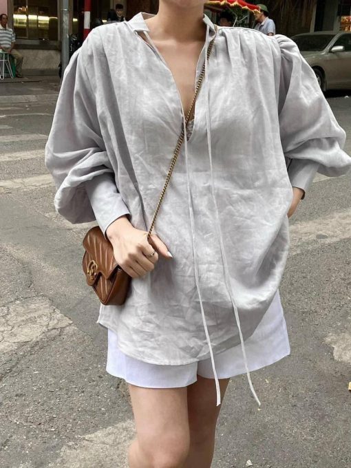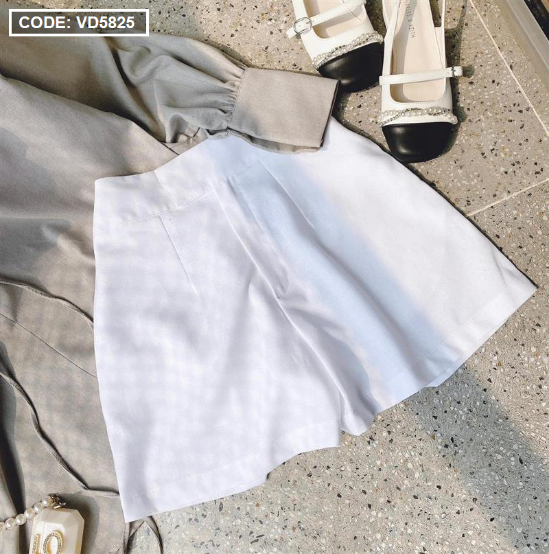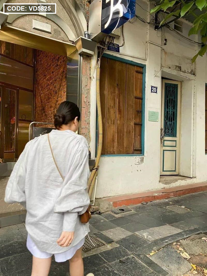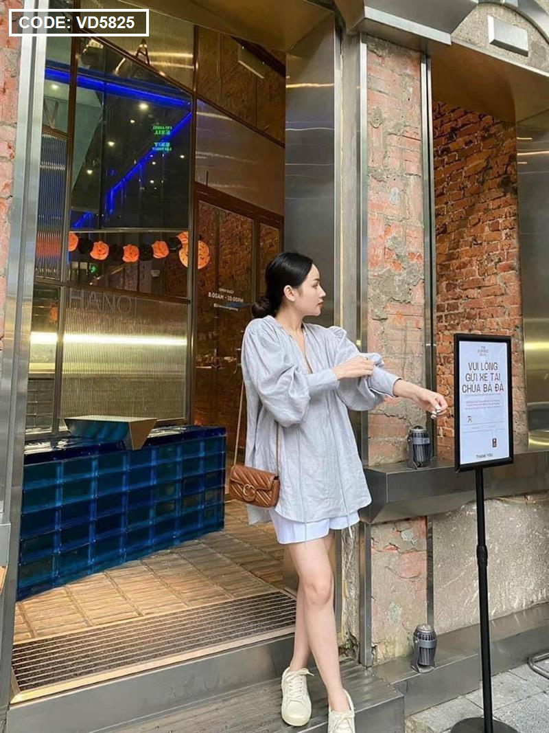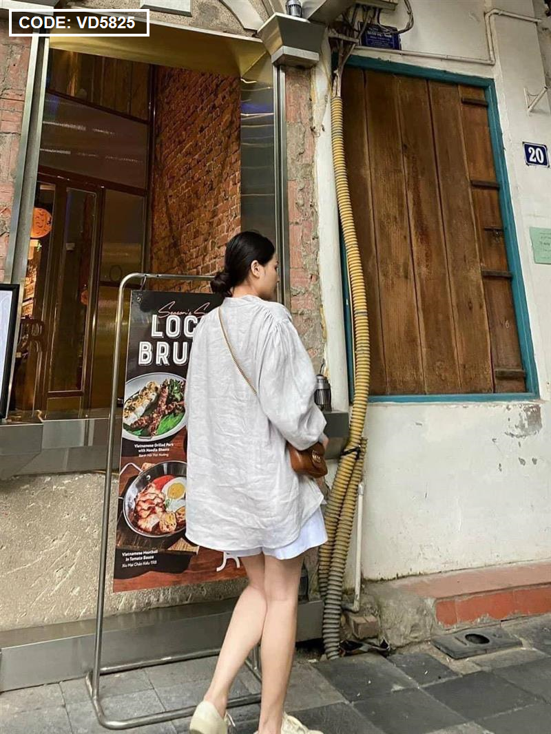 Sét sơ mi cổ v xám tay phồng short