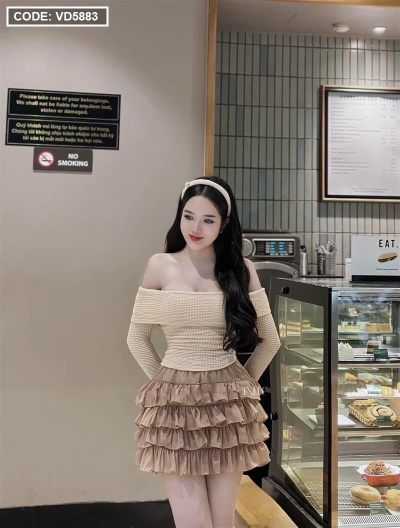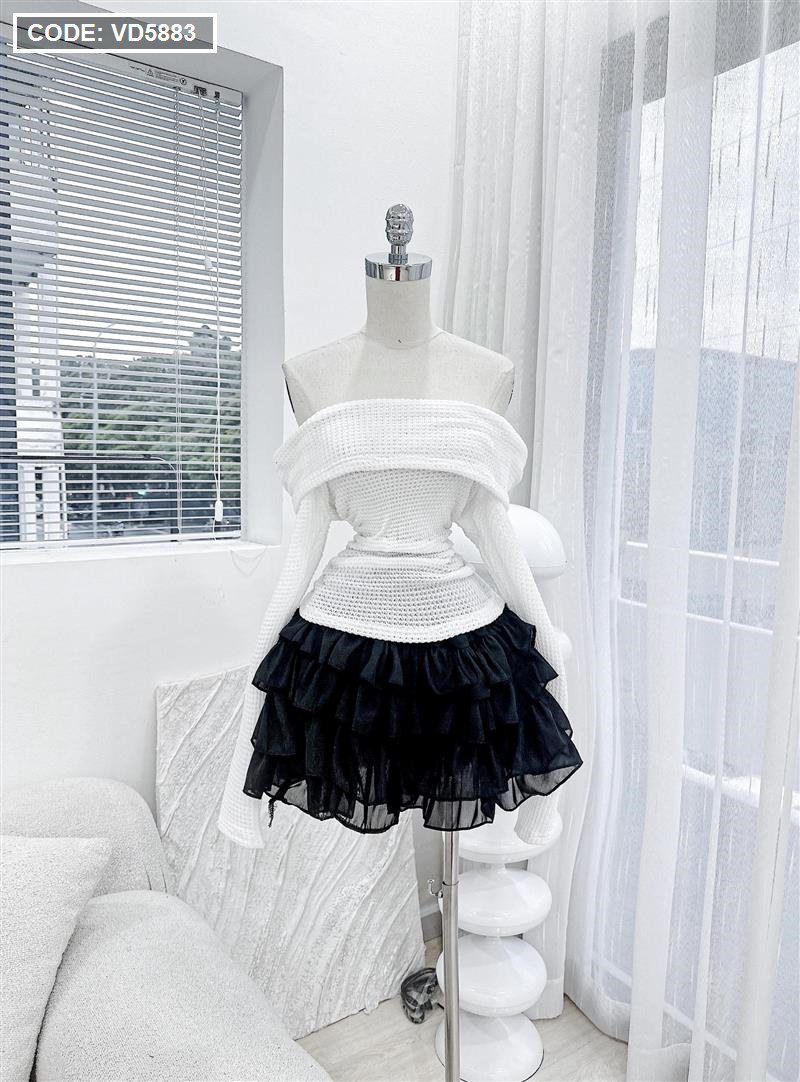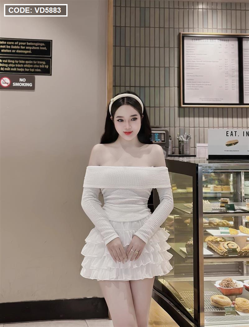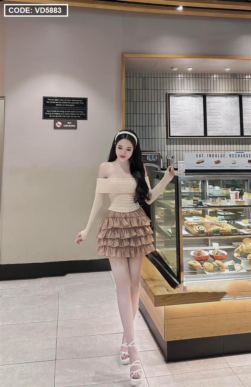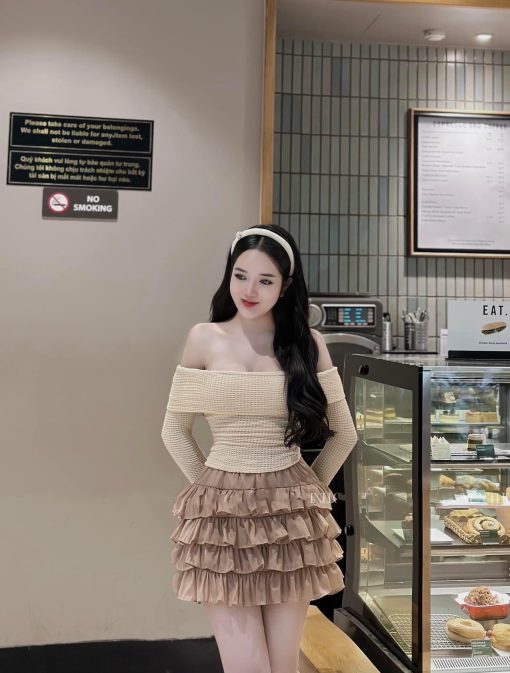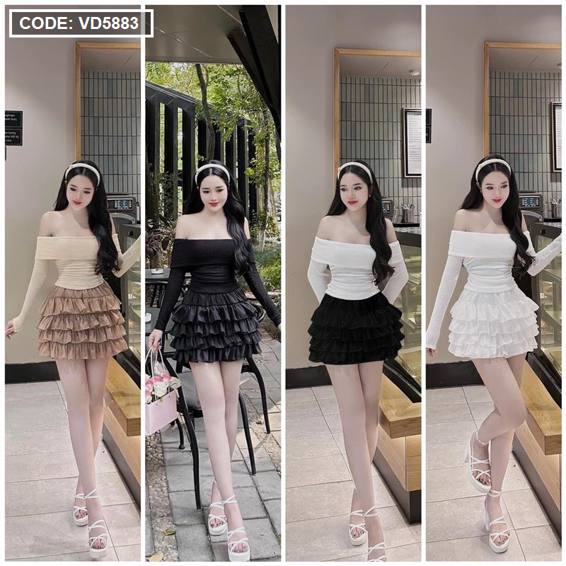 Sét trễ vai dệt kim mùa thu + chân váy tầng baby