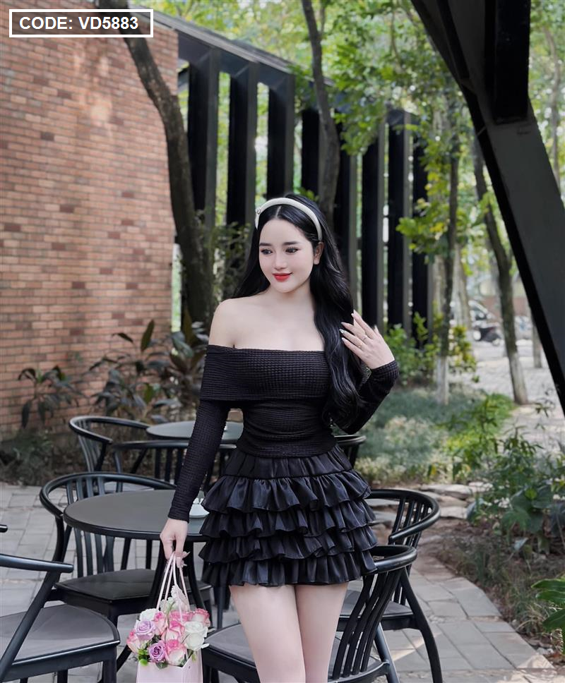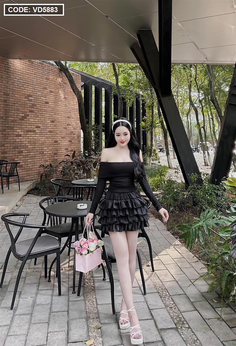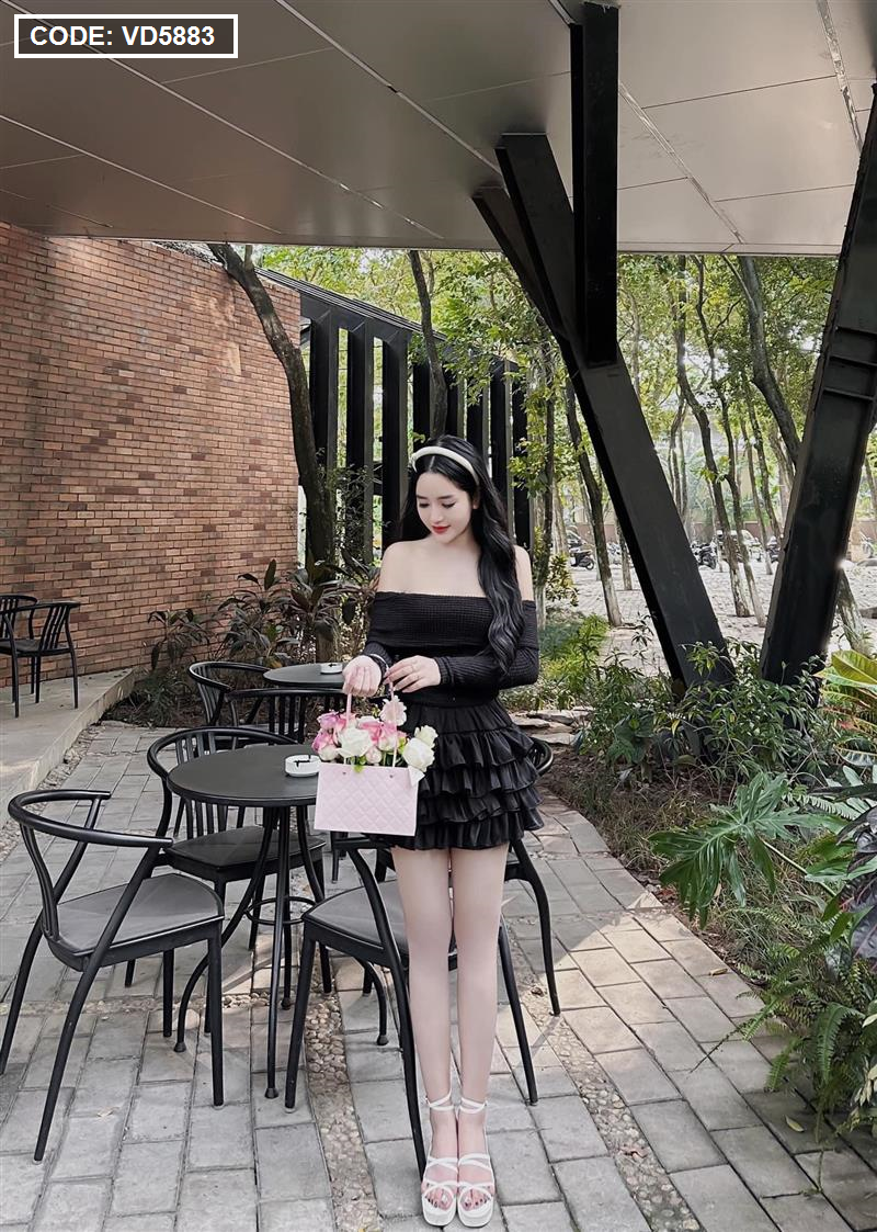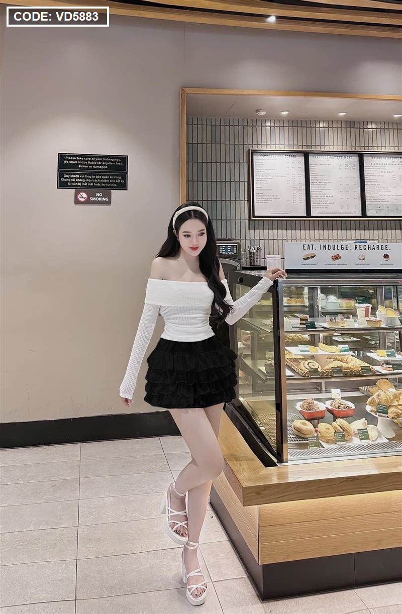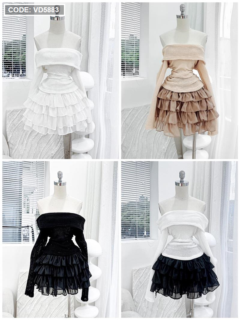 Sét trễ vai dệt kim mùa thu + chân váy tầng baby