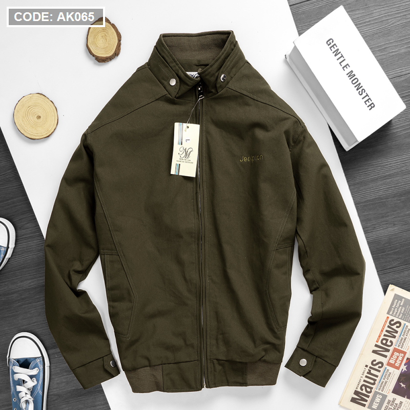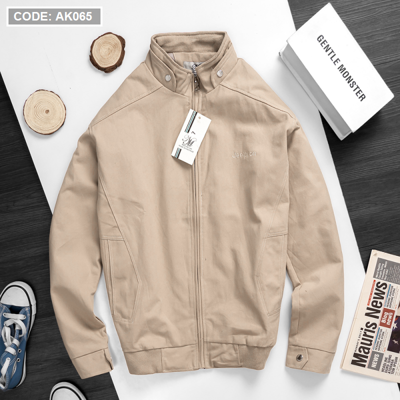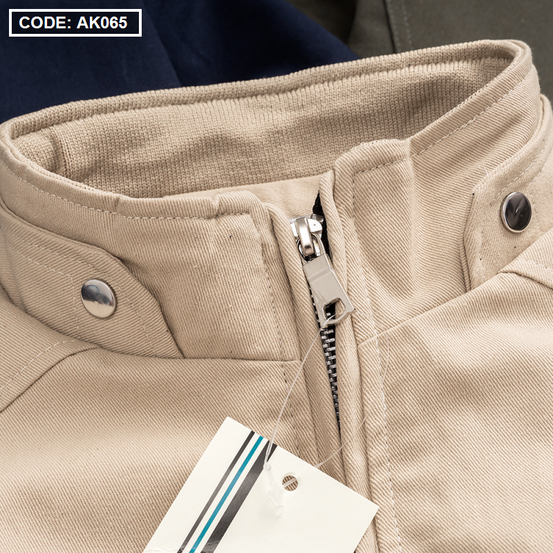 Shop sỉ áo Khoác Kaki Nam Cổ Trụ 2 Lớp Thêu Logo