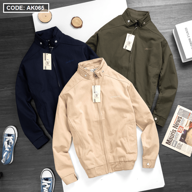 Shop sỉ áo khoác nam kaki cổ trụ 2 lớp thêu logo