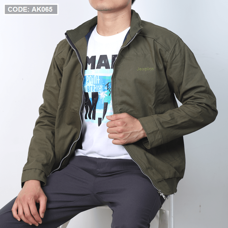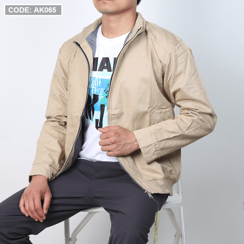 Áo khoác nam kaki cổ trụ 2 lớp thêu logo