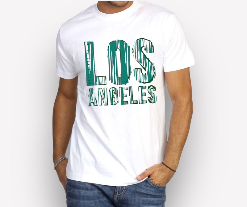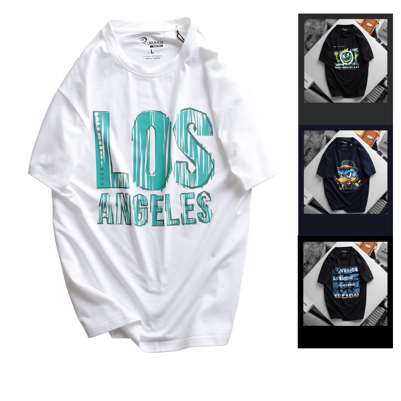 Shop sỉ áo Thun Nam Cổ Tròn Rurumen Màu Trắng In Chứ Los Angeles Big Size