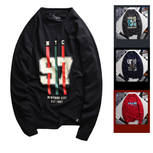 Shop sỉ áo Thun Nam Tay Dài Cổ Tròn Rurumen Màu Đen In Sọc Màu Số 97 Big Size