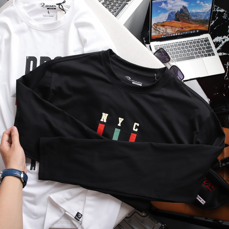 Áo Thun Nam Tay Dài Cổ Tròn Rurumen Màu Đen In Sọc Màu Số 97 Big Size