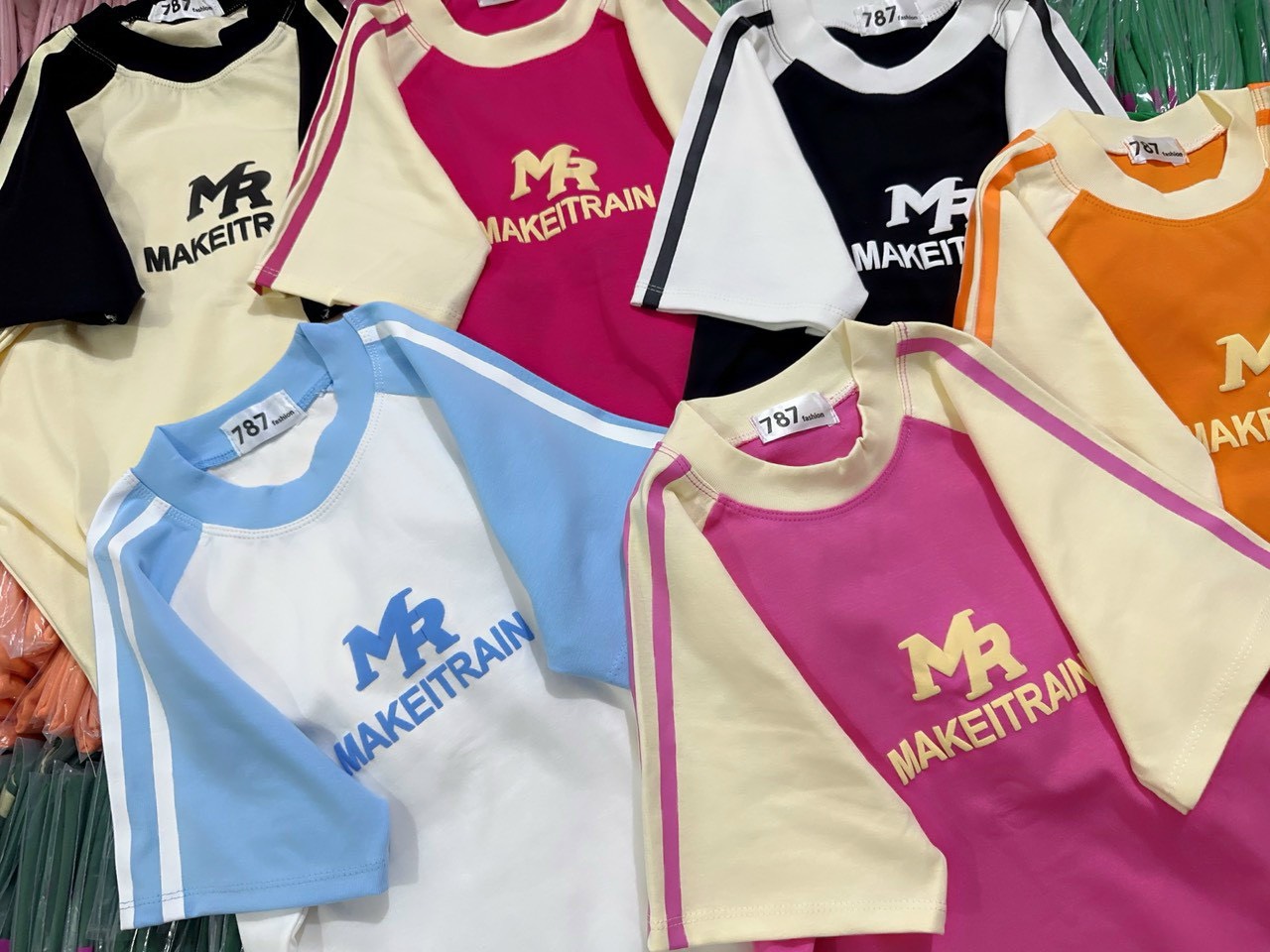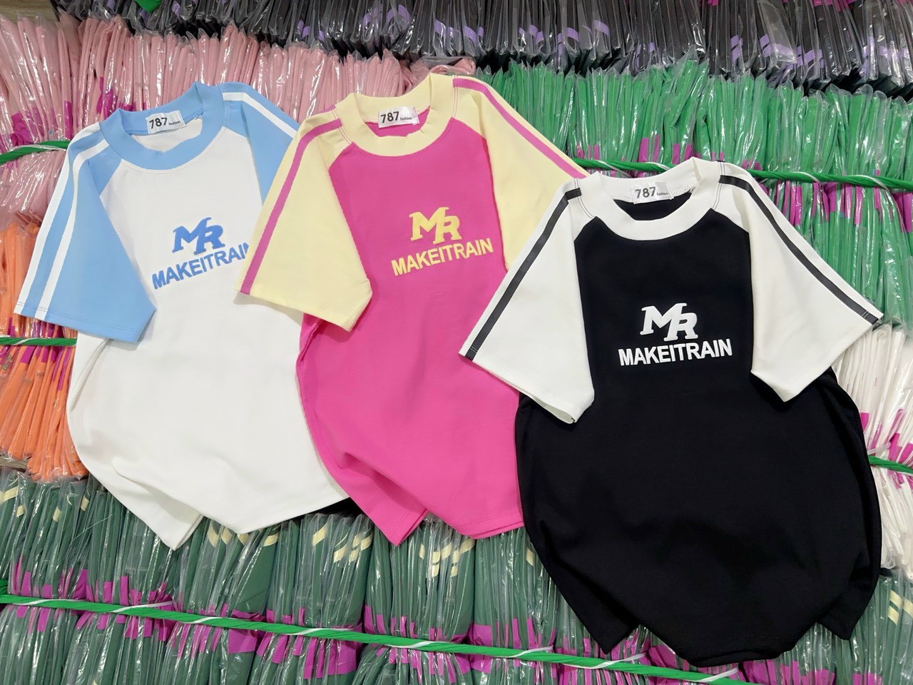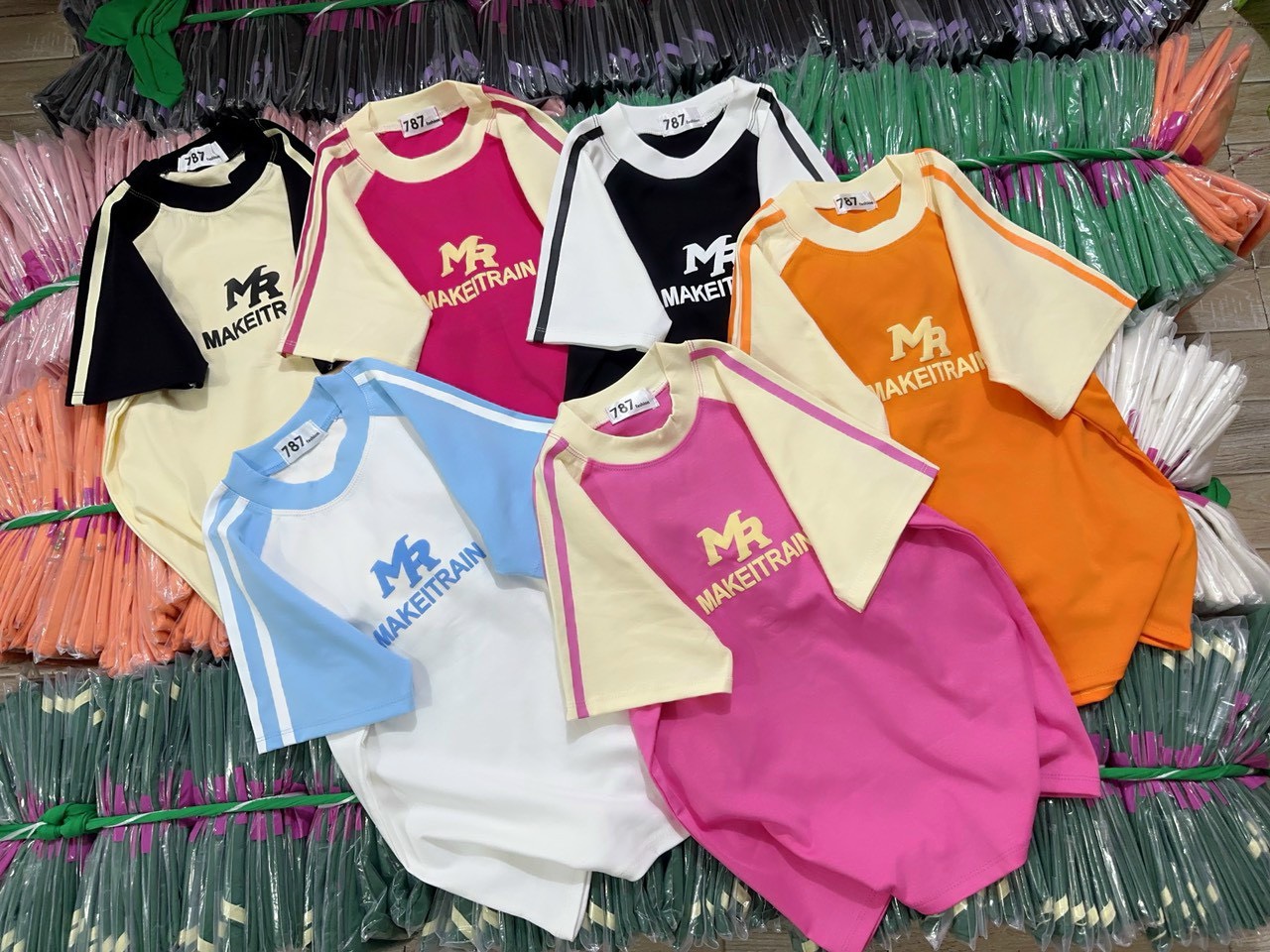Shop sỉ áo thun nữ Baby Tee ôm body từ 35kg – 55kg in chữ MAKEITRAIN
