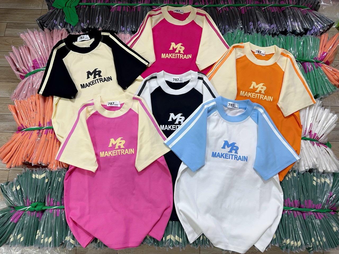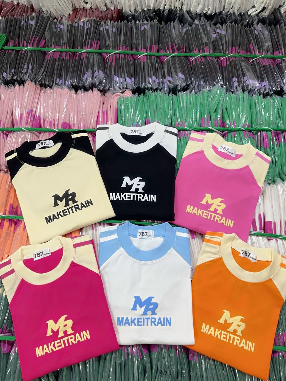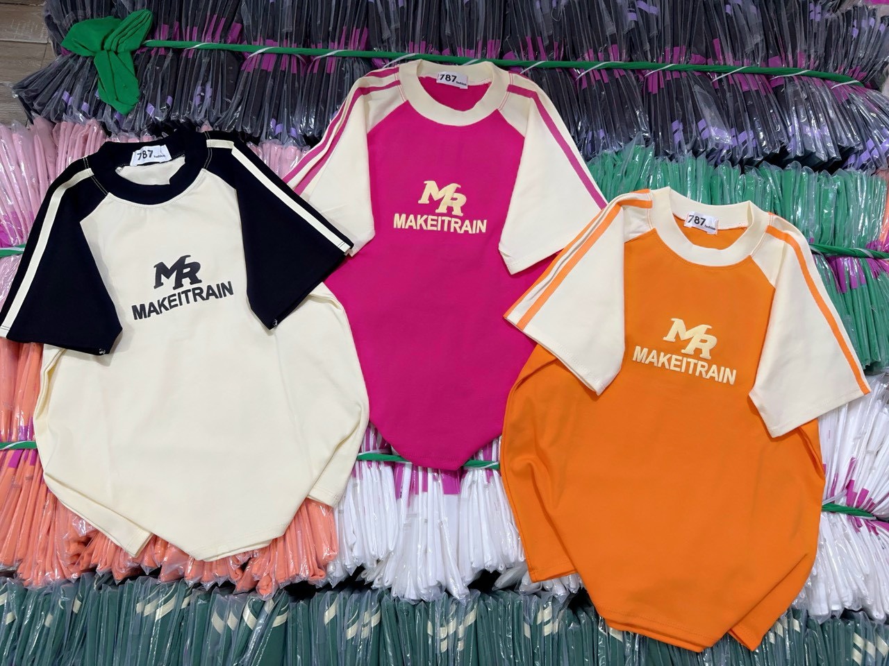 Shop sỉ áo thun nữ Baby Tee ôm body từ 35kg – 55kg in chữ MAKEITRAIN