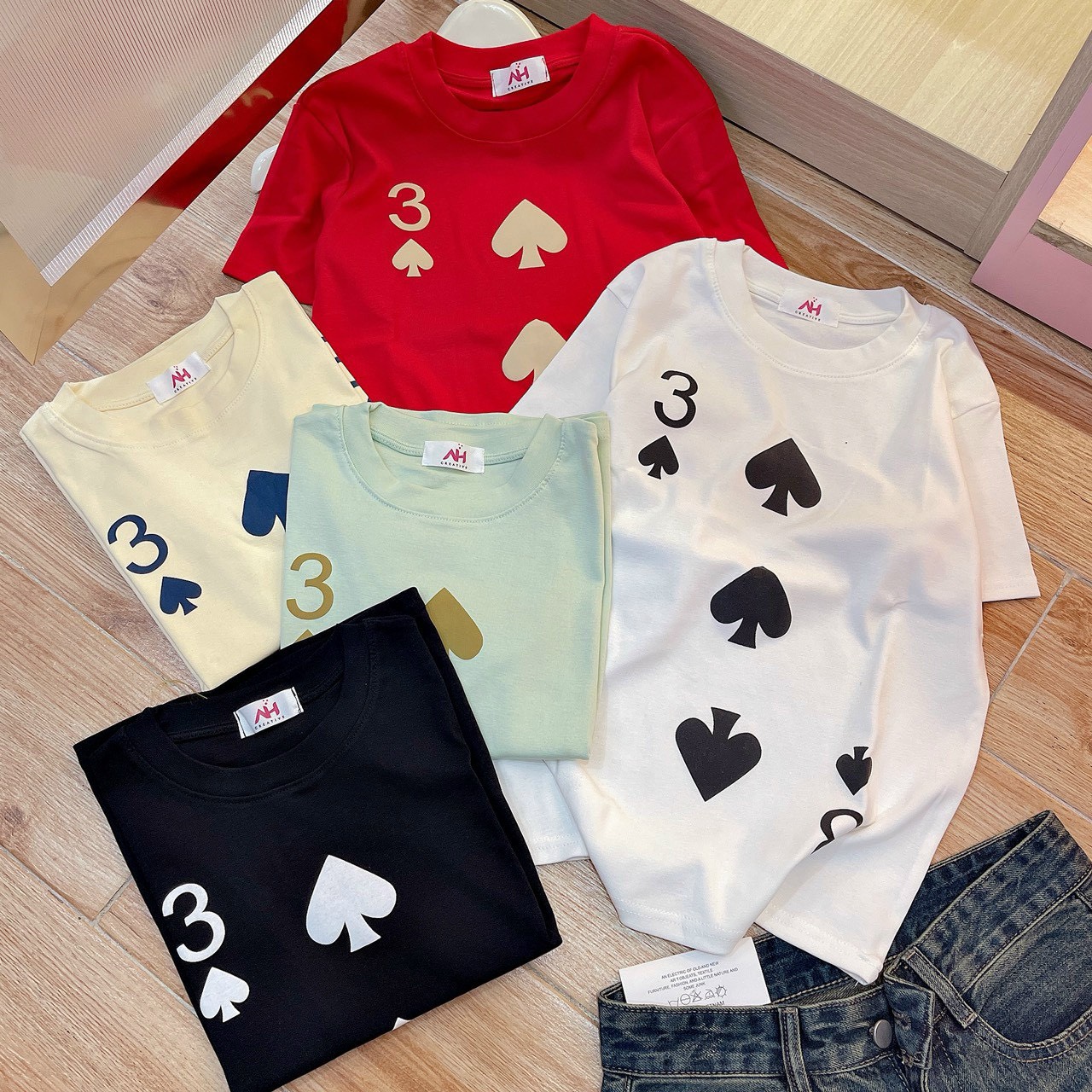 Shop sỉ áo thun nữ Baby Tee ôm body từ 35kg – 55kg in hình lá bài