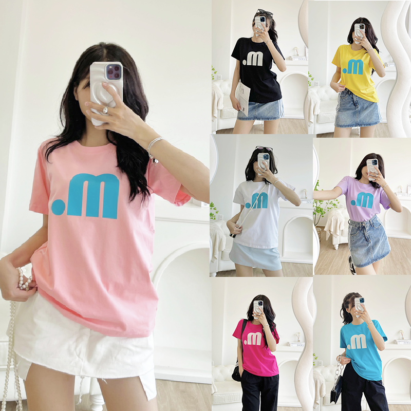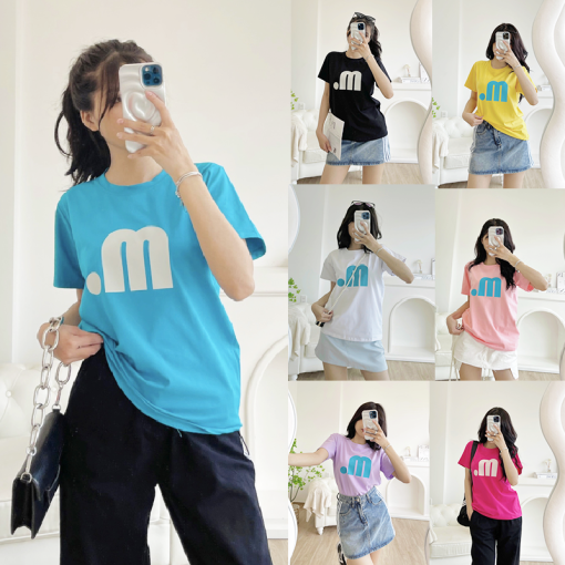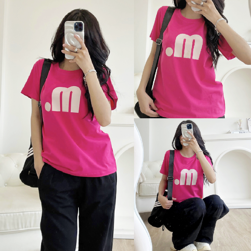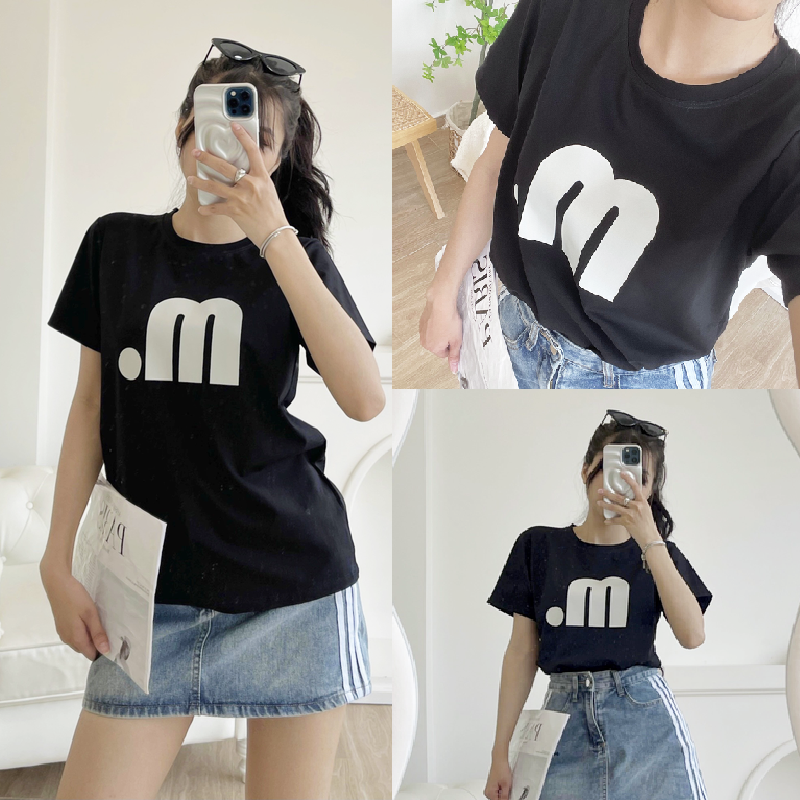 Shop sỉ áo thun thái nữ cổ tròn form suông in chữ M