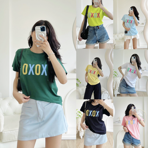 Shop sỉ áo thun thái nữ cổ tròn form suông in chữ Xoxo