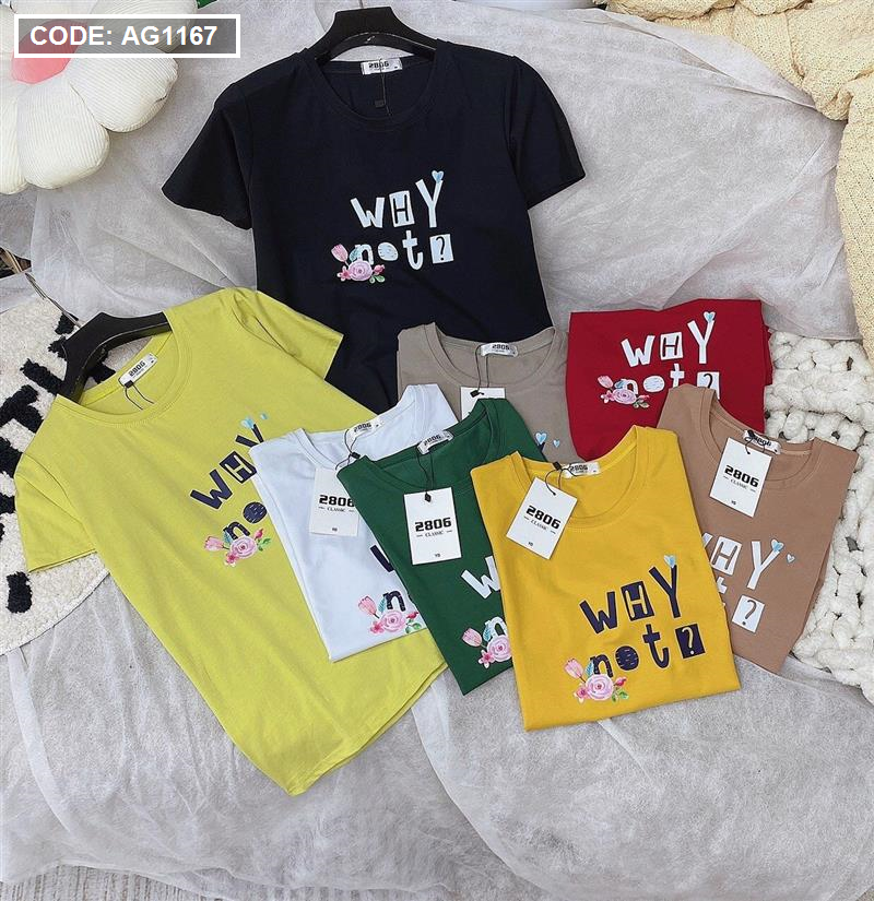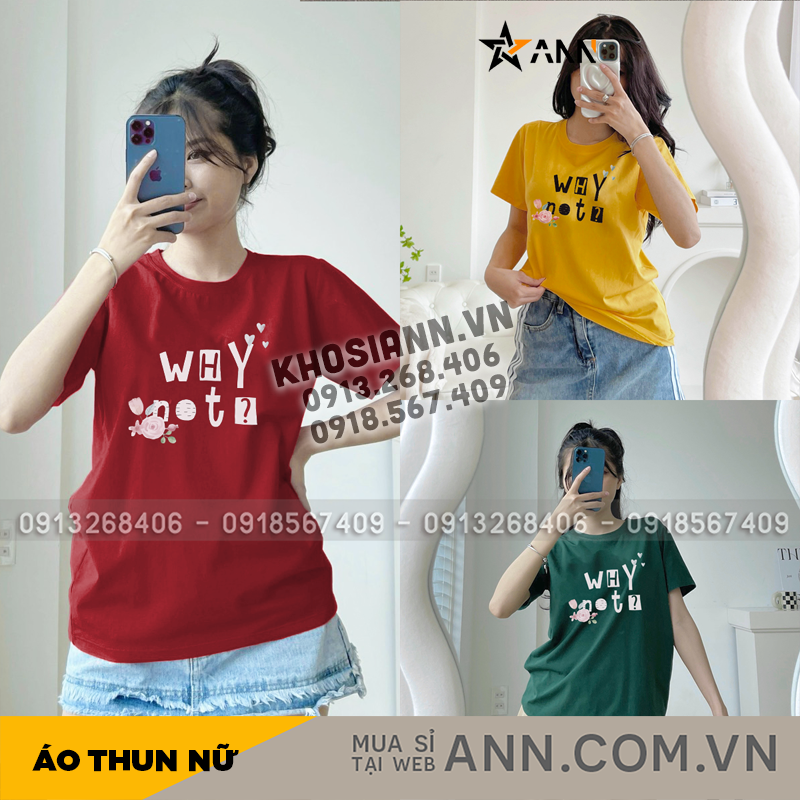 Shop sỉ áo thun thái nữ form rộng in chữ why not