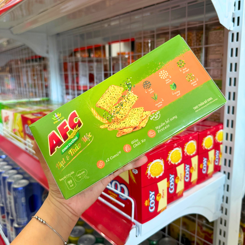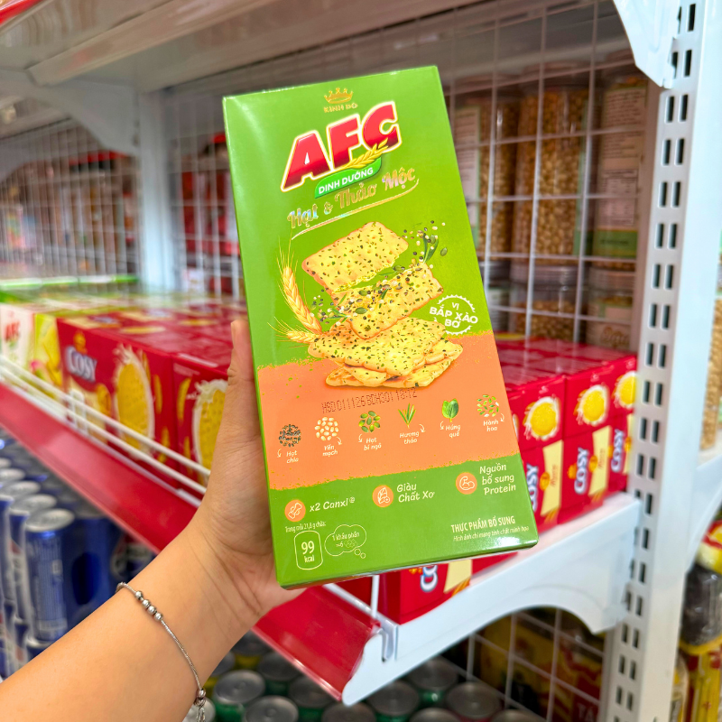 Shop sỉ bánh Afc Hạt Thảo Mộc Vị Bắp Xào Bơ – Bánh Kinh Đô Afc Dinh Dưỡng 172g (5 Gói x 21,8g)