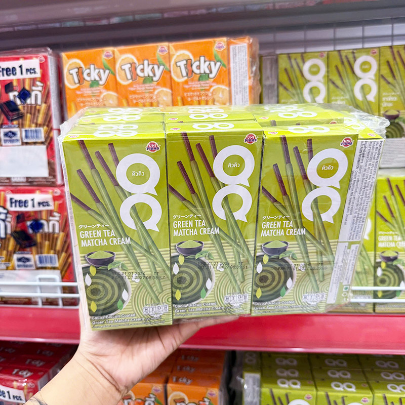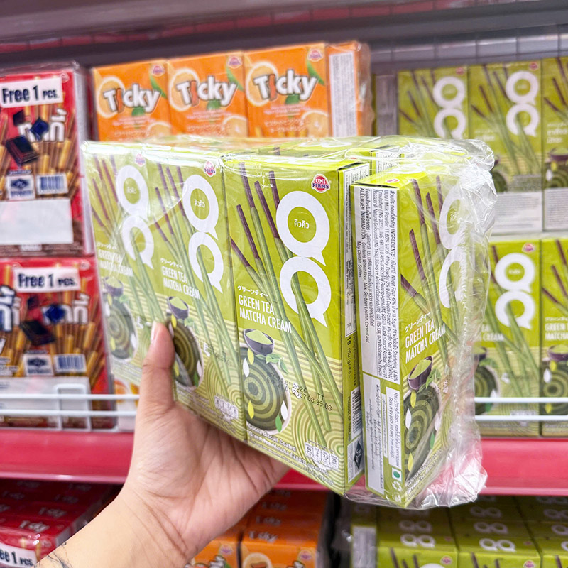 Shop sỉ bánh Que Đũa Phủ Trà Xanh Ticky Uni Firms Lốc 13 Hộp – Màu Xanh Lá