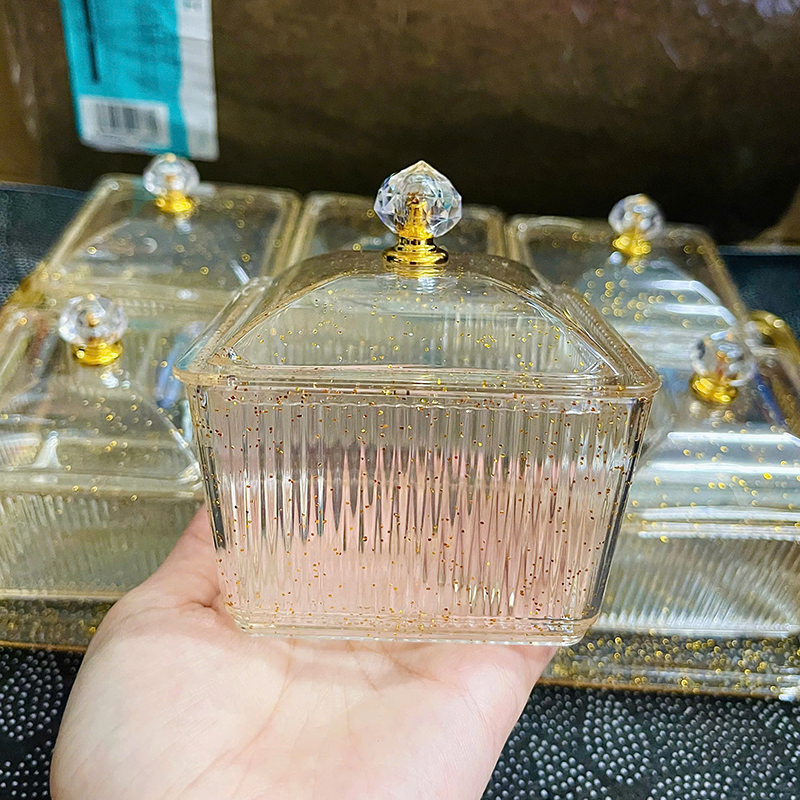 Shop sỉ bộ 6 Hộp Mứt – Khay Đựng Mứt Tết – Hũ Đựng Bánh Kẹo Hoa Quả Bằng Nhựa Kim Tuyến