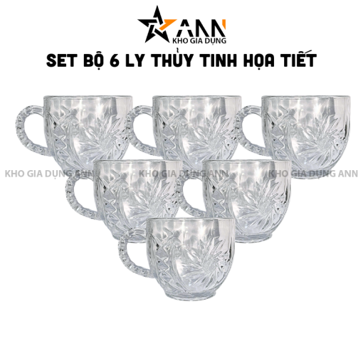 ✨ SET BỘ 6 LY THỦY TINH HỌA TIẾT – KHO GIA DỤNG ANN ✨