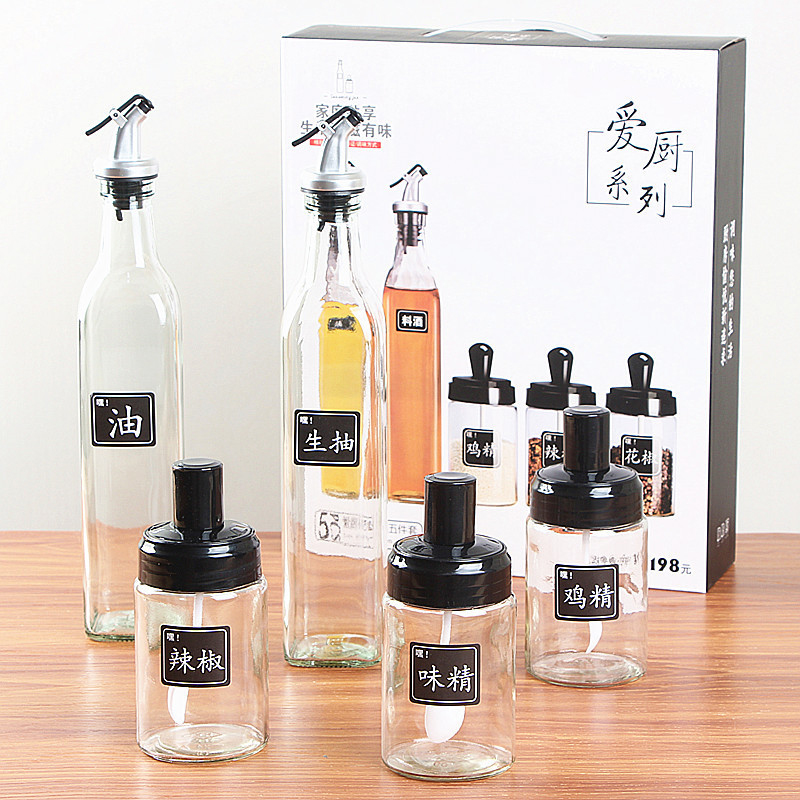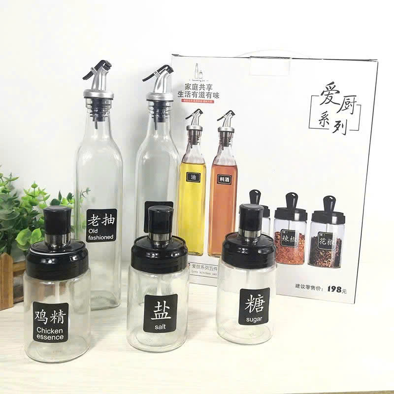 ❌❌Bộ Hũ Lọ Gia Vị Thủy Tinh 5 Món Bình Đựng Rót Dầu Nước Mắm Hủ Đựng Gia Vị Có Thìa Tiện Lợi❌❌