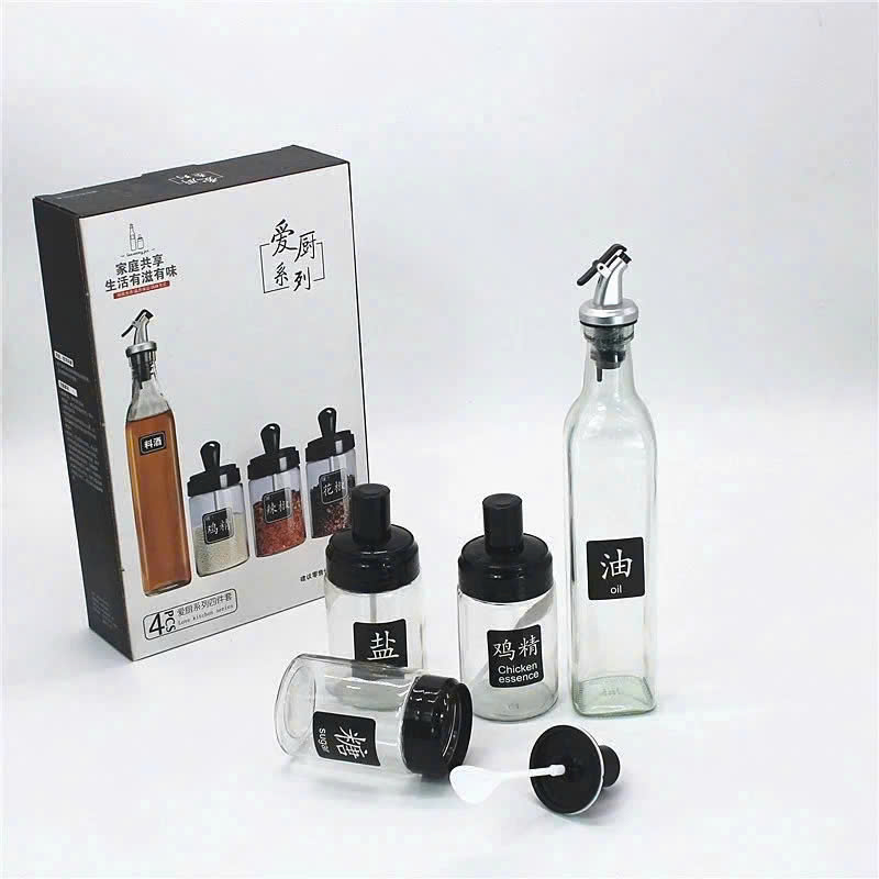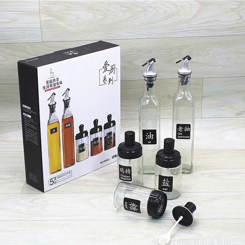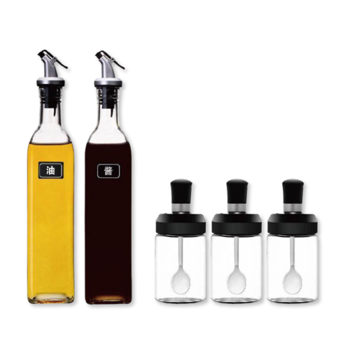 Shop sỉ bộ Hũ Lọ Gia Vị Thủy Tinh 5 Món 500ml 250ml 31×5.2cm & 15×6.5cm