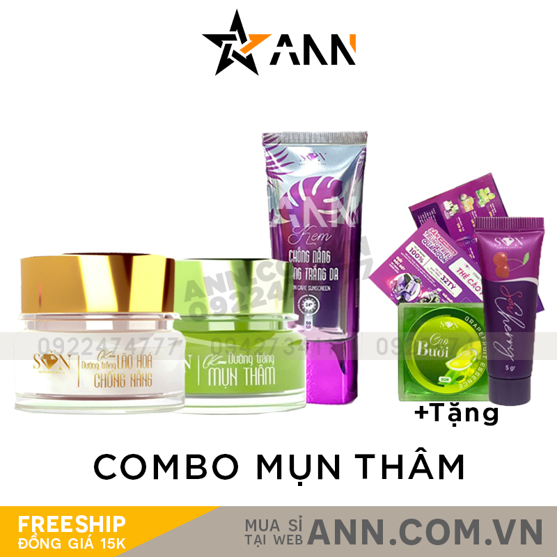 Shop sỉ combo Face Mụn Thâm Trắng Xanh SON Cosmetic + Chống Nắng SON Cosmetic