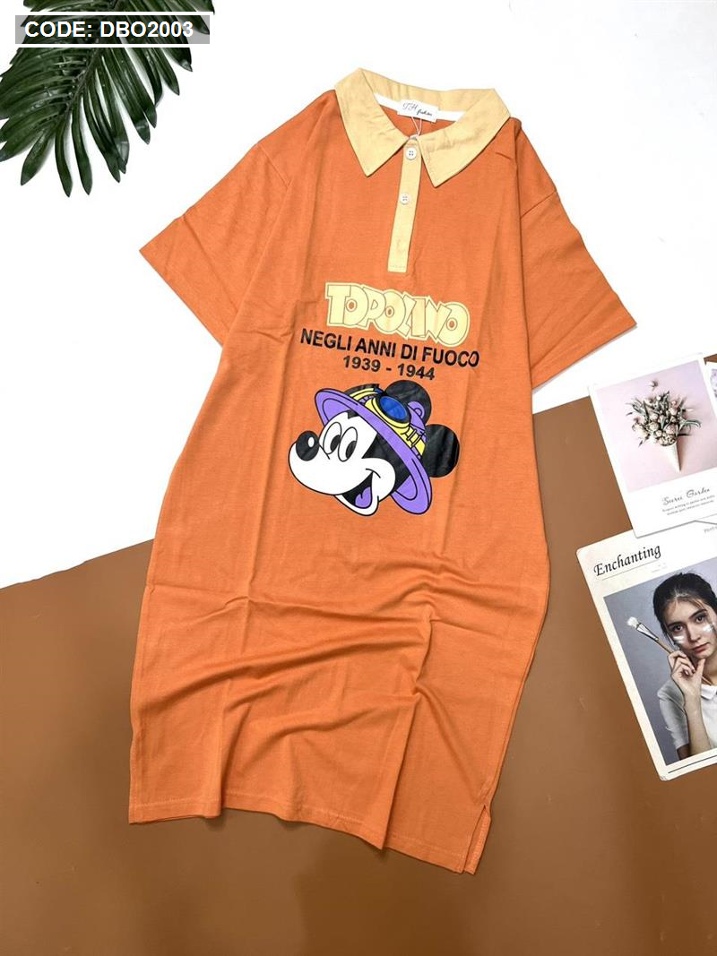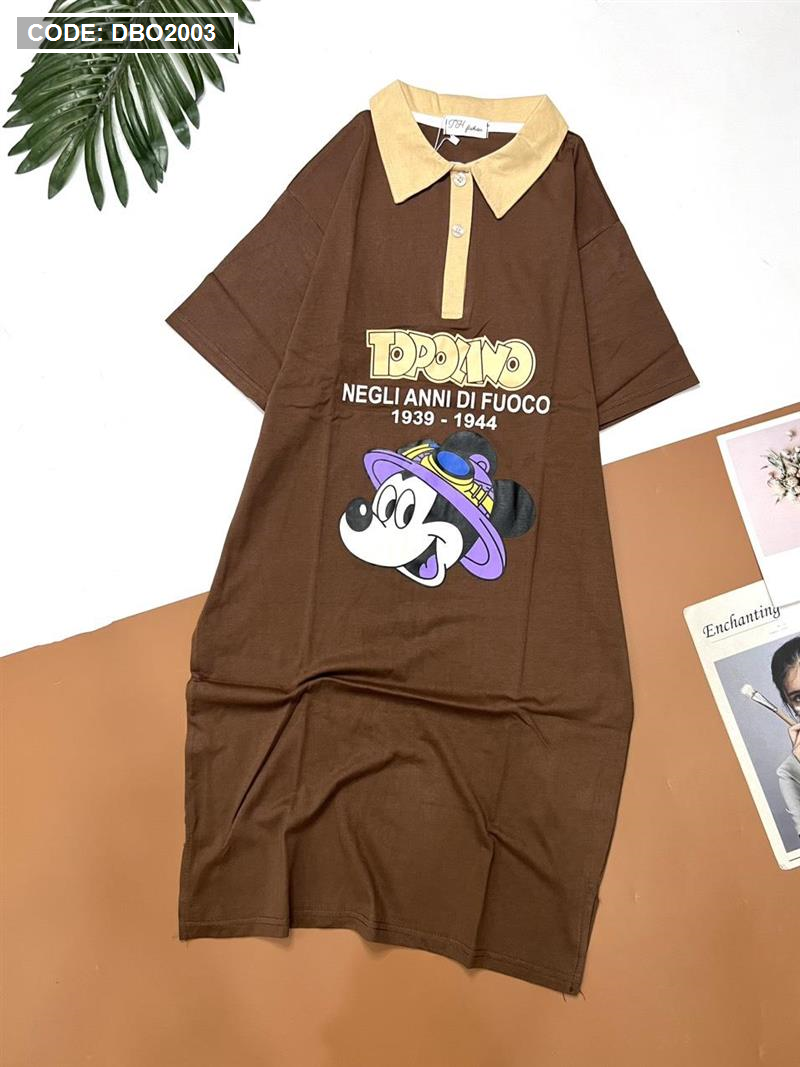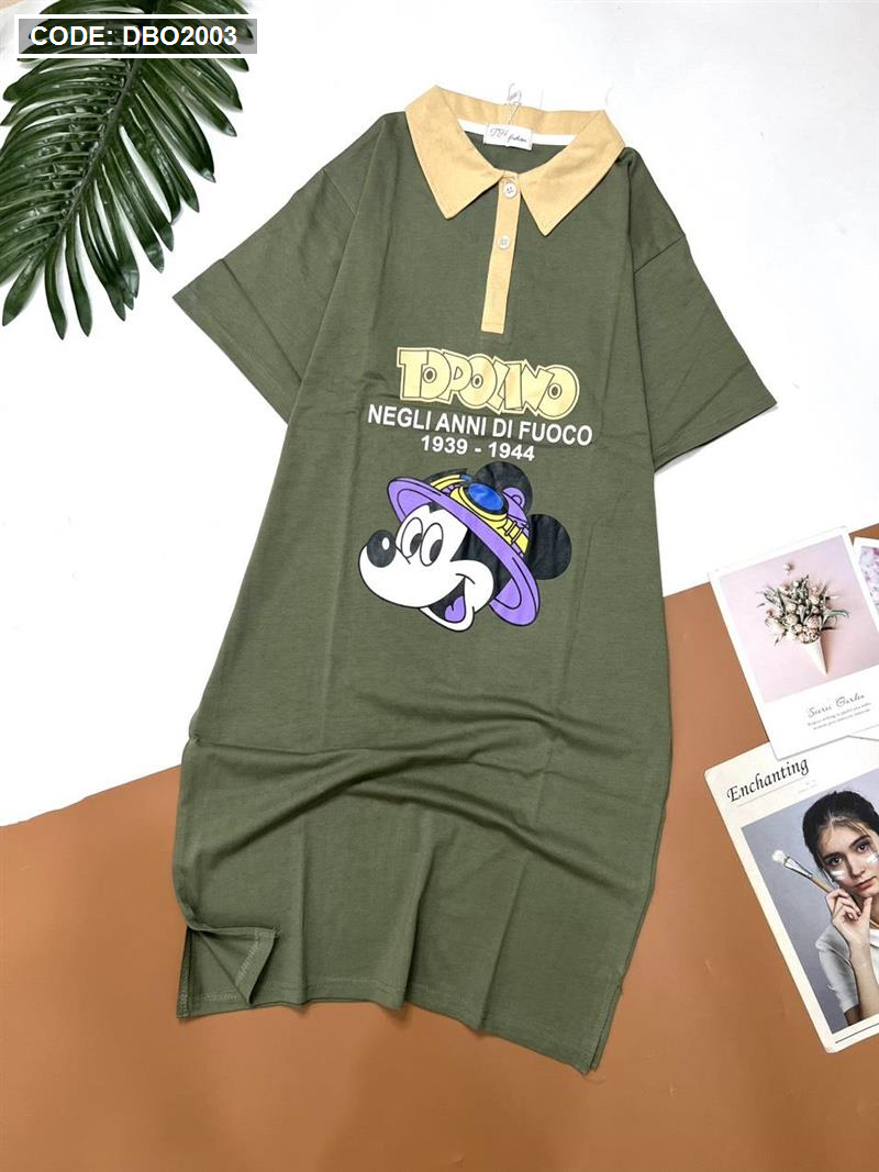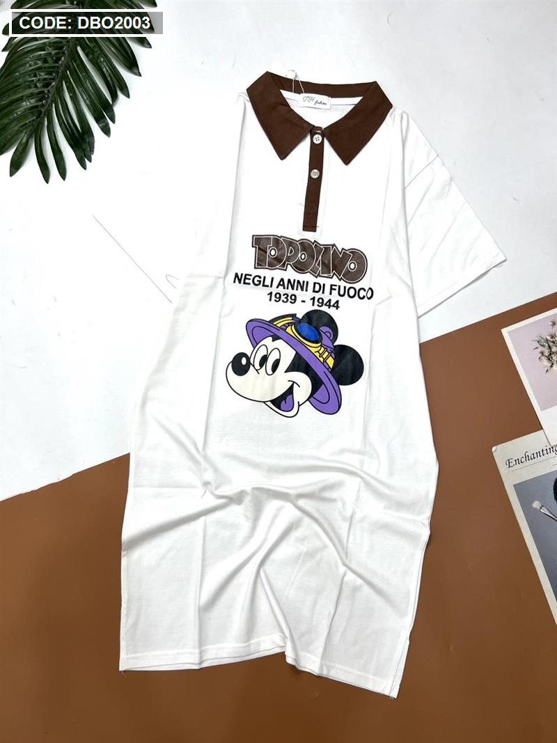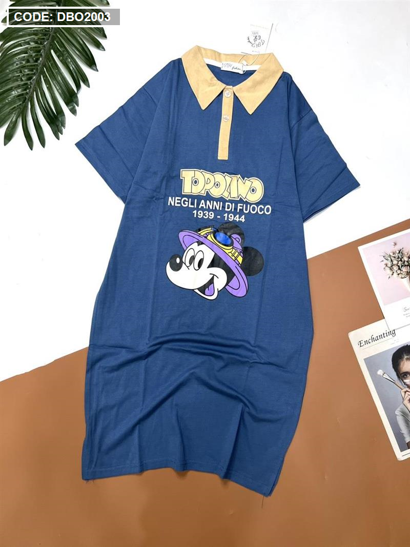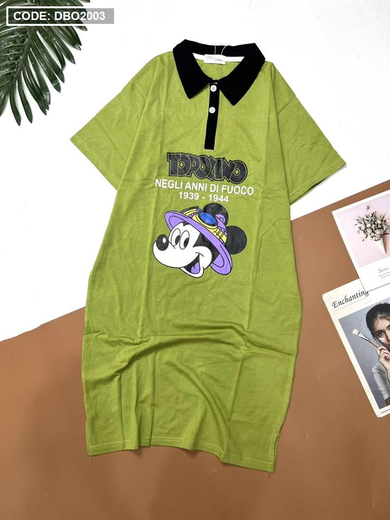 Shop sỉ đầm nữ tay ngắn cổ bẻ in hình chuột mickey