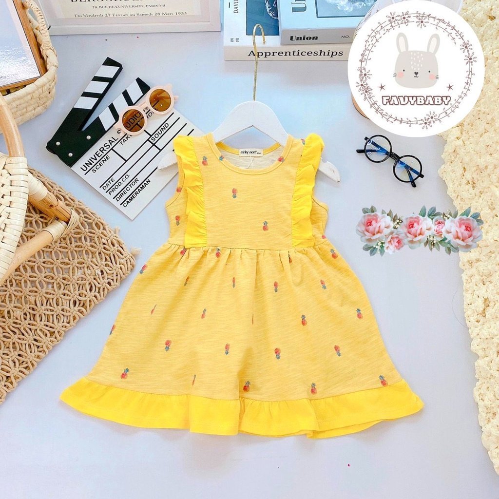 Shop sỉ đầm thun bé gái form xoè bèo đơn in hoạ tiết đáng yêu