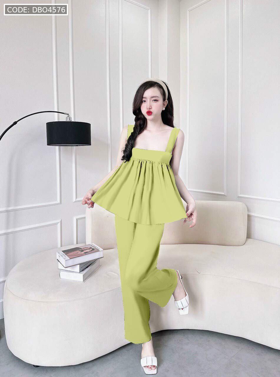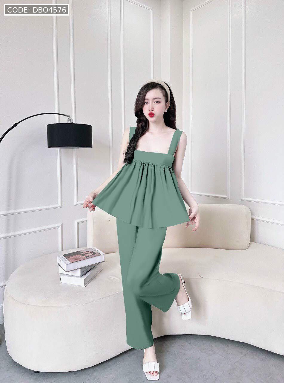 Shop sỉ đồ bộ latin trơn siêu mát quần dài áo hai dây bản