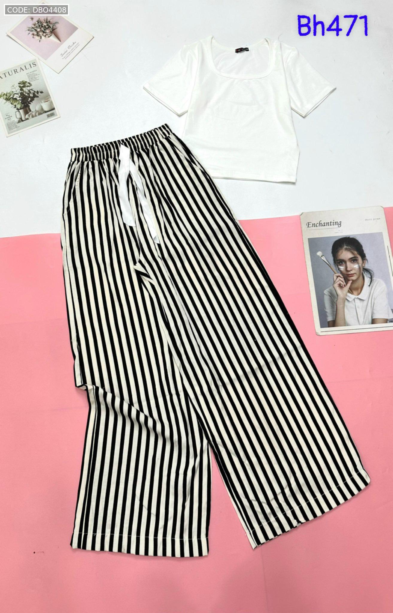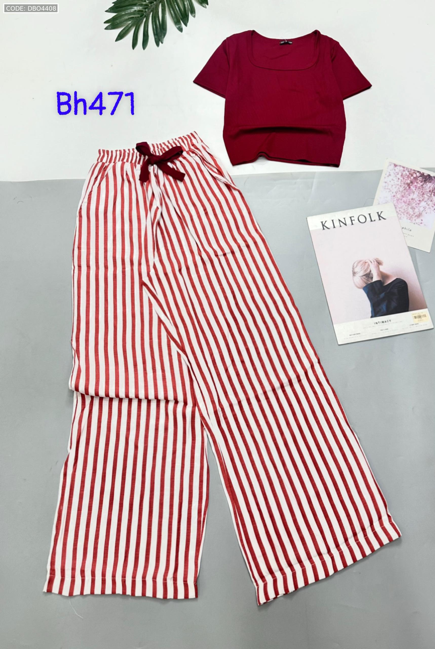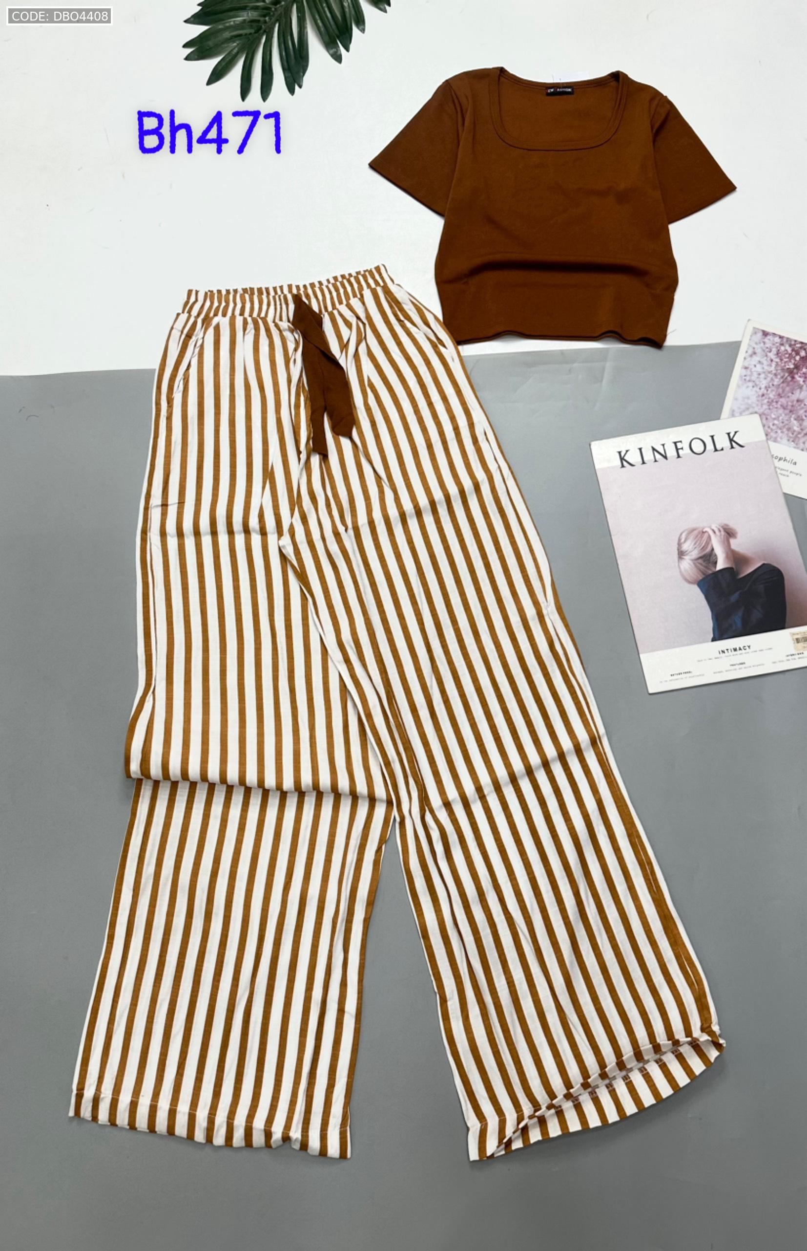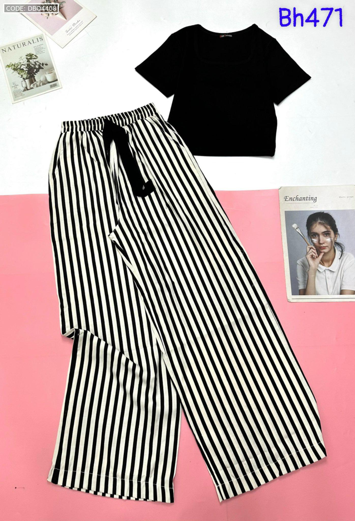 Shop sỉ đồ bộ mặc nhà quần dài sọc áo tay ngắn màu trơn