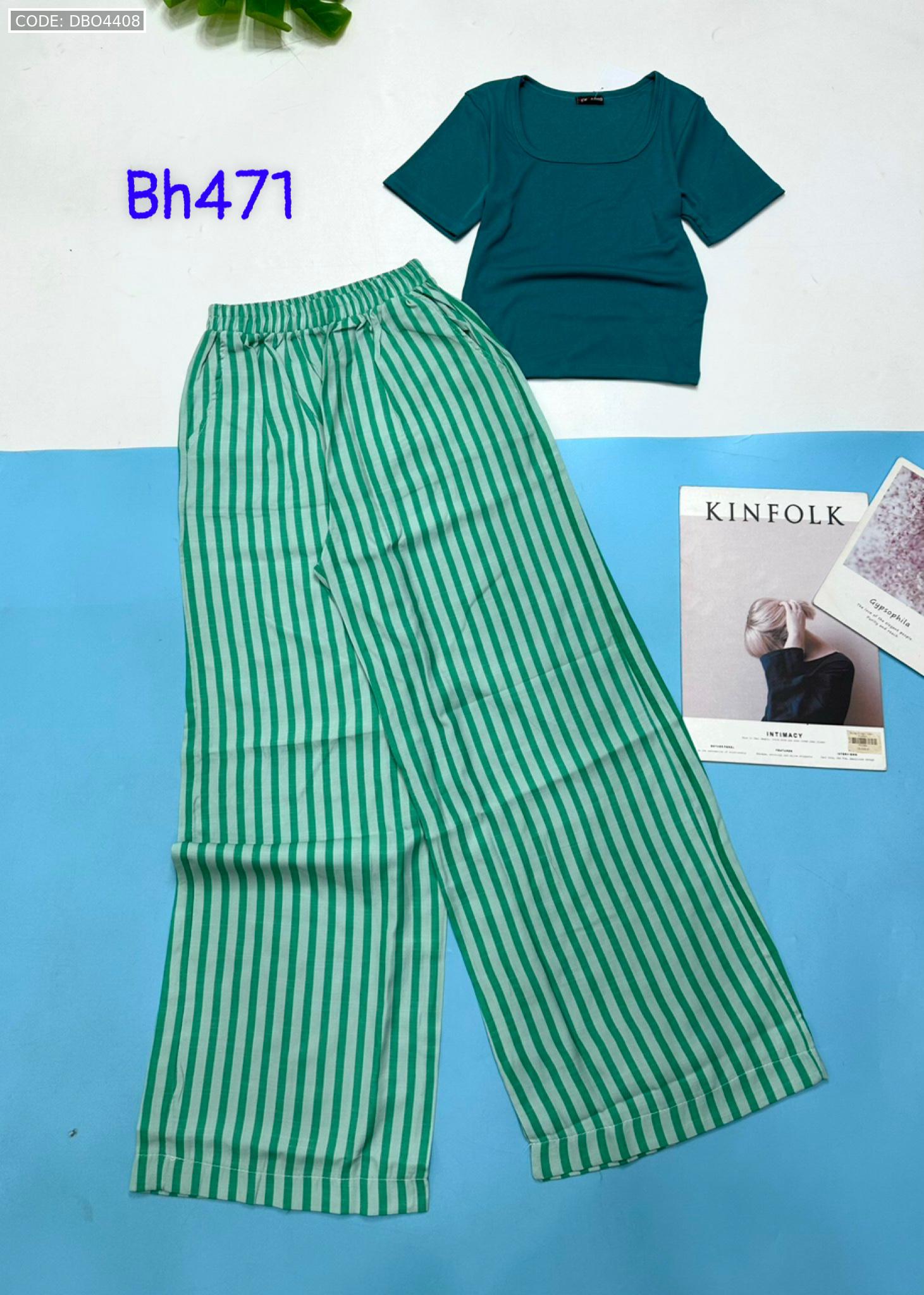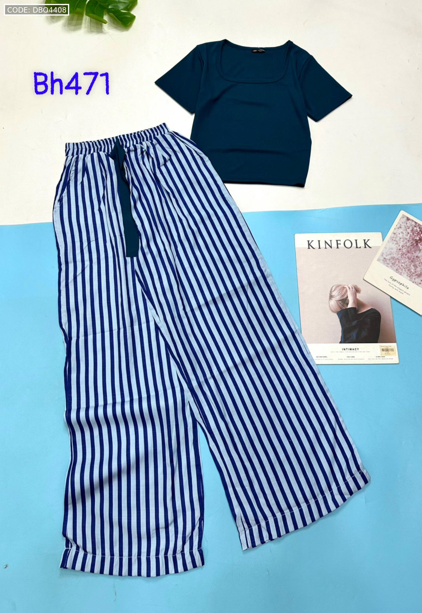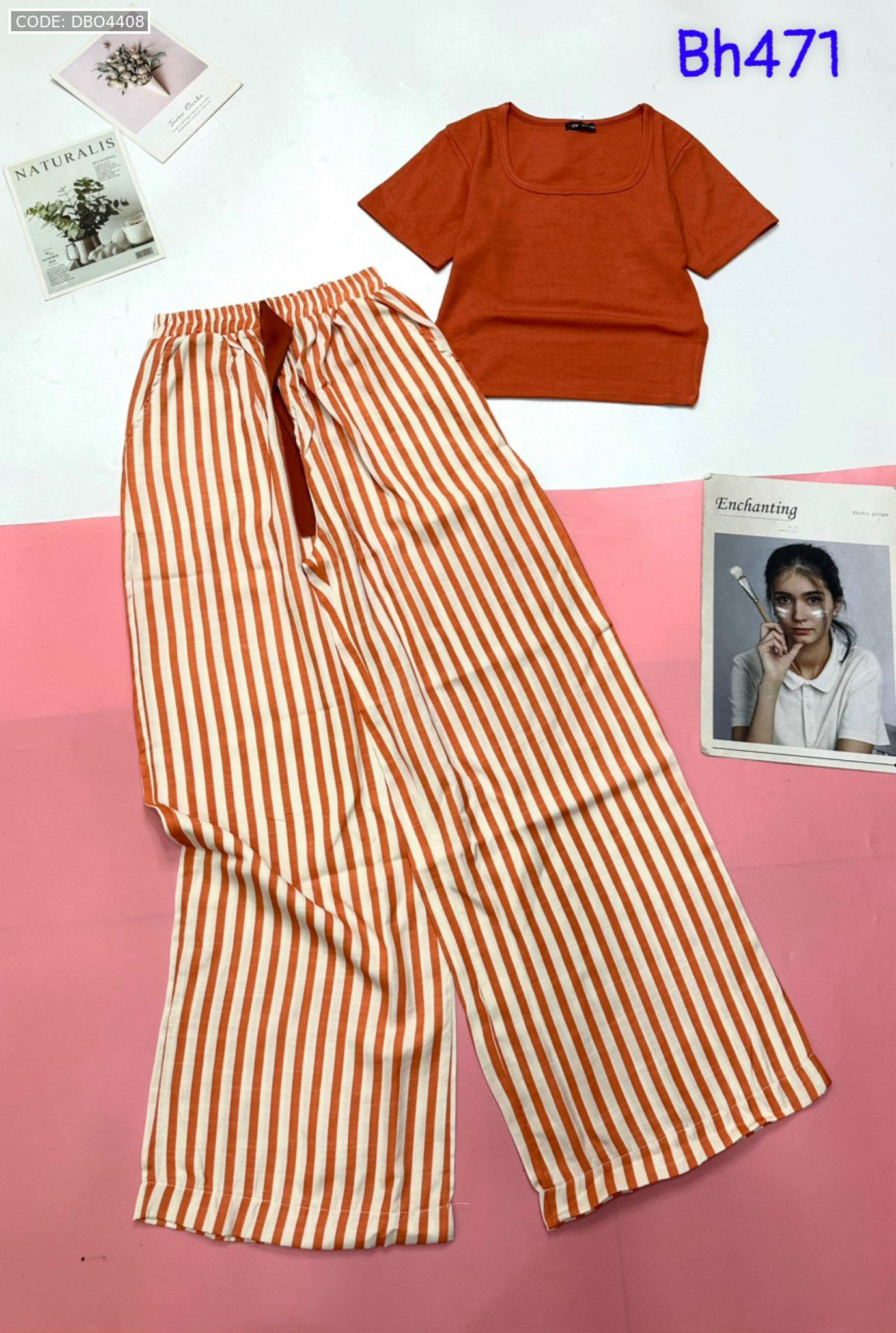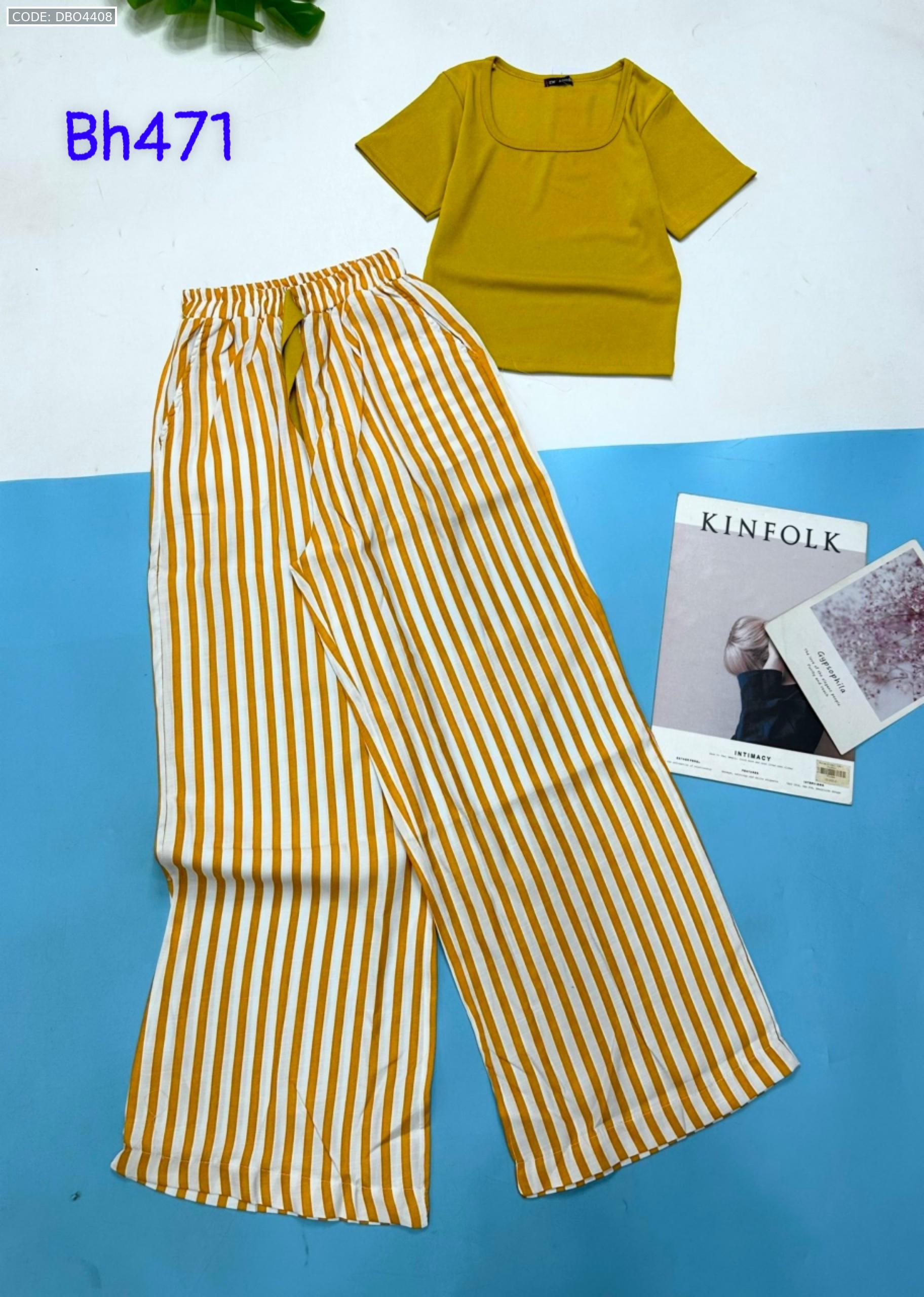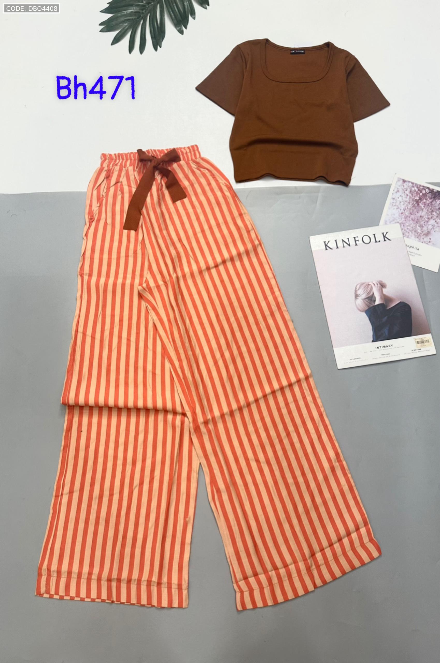 Shop sỉ đồ bộ mặc nhà quần dài sọc áo tay ngắn màu trơn