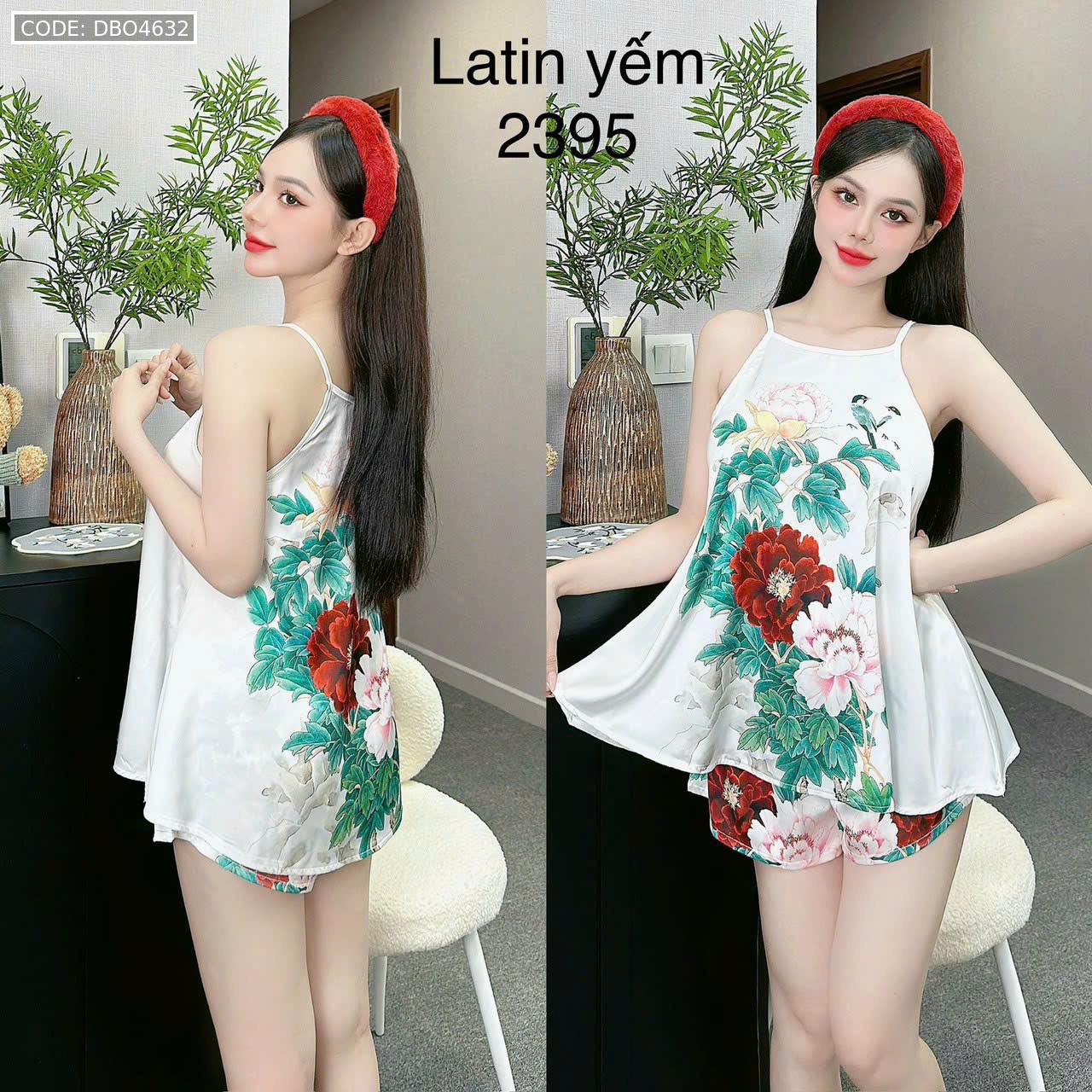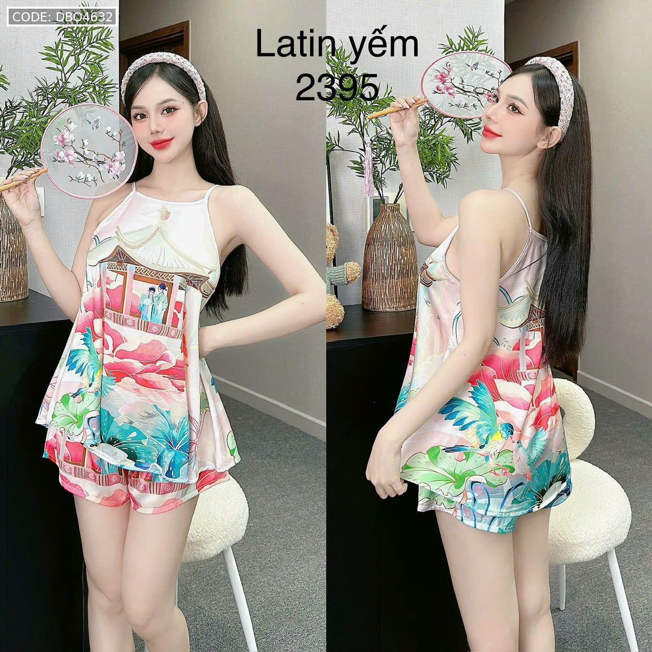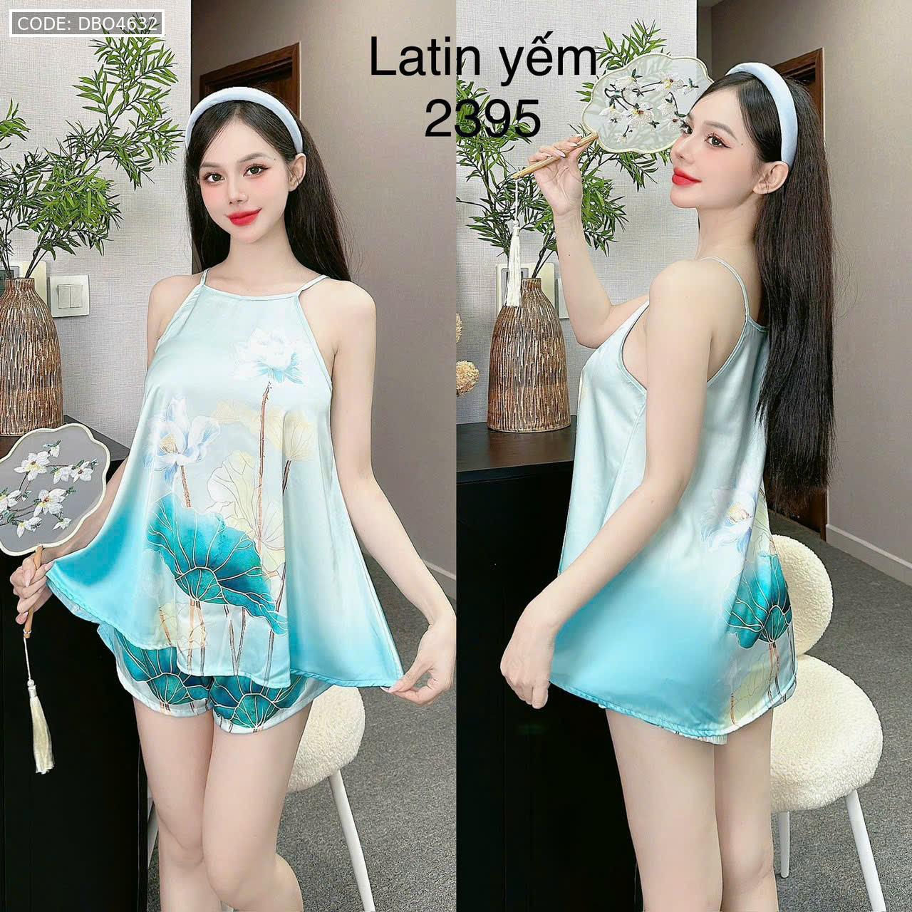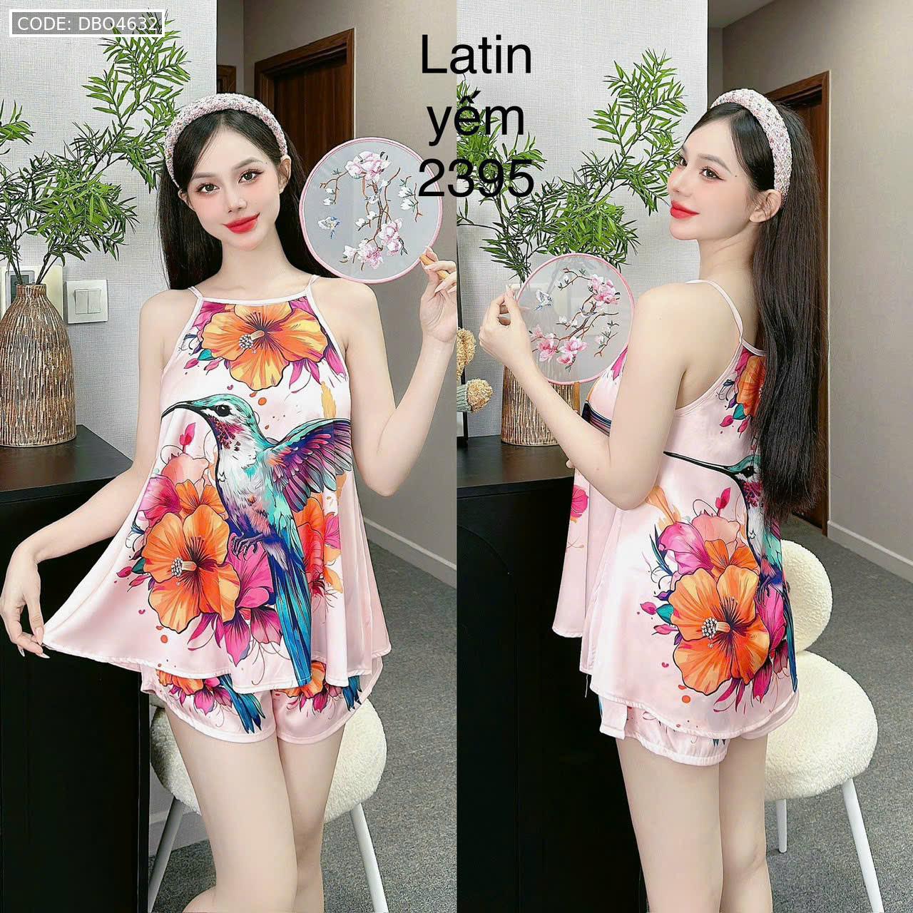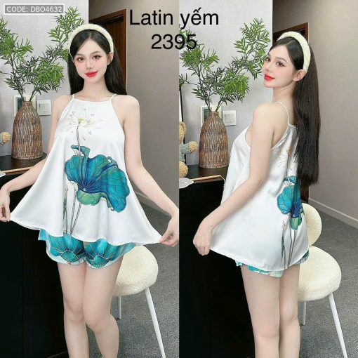 Shop sỉ đồ bộ mặc nhà siêu mát quần đùi latin áo yếm nhiều bông lớn