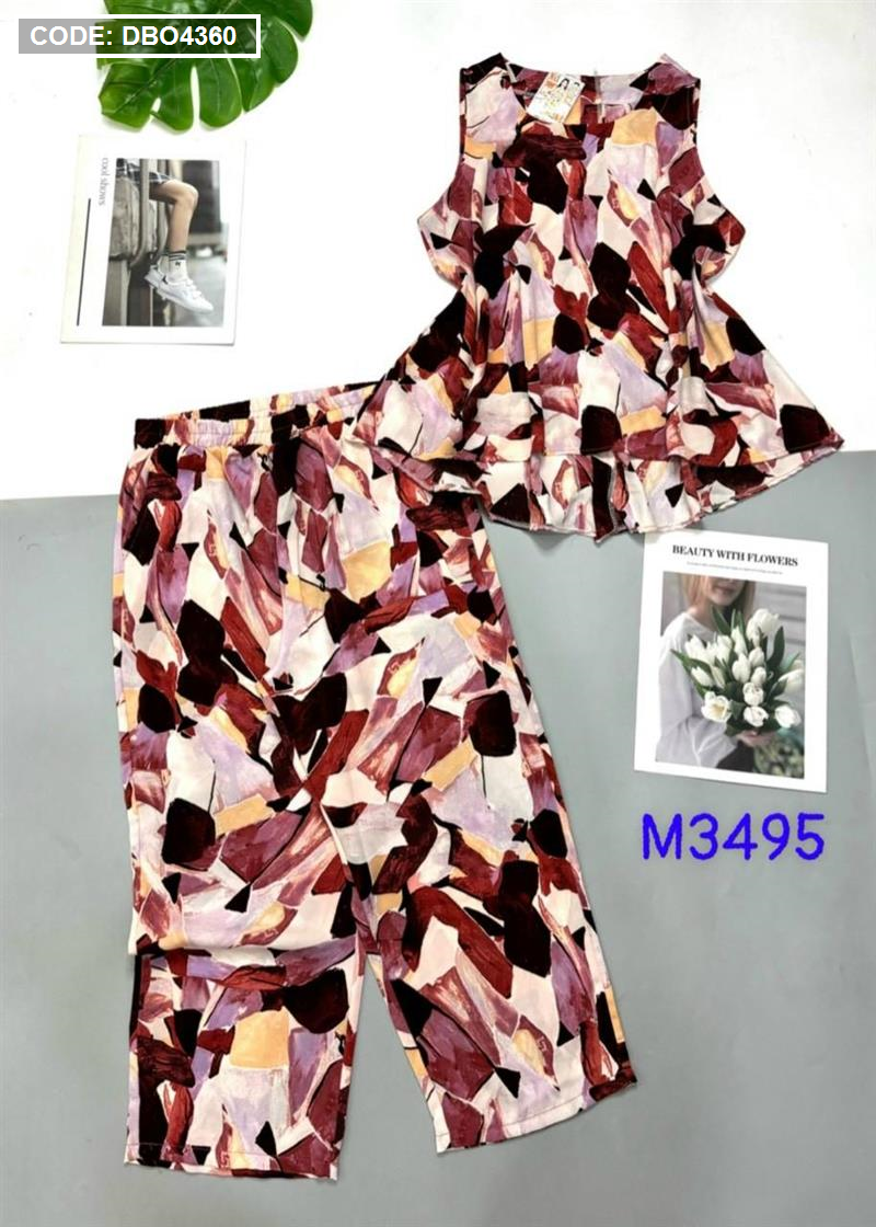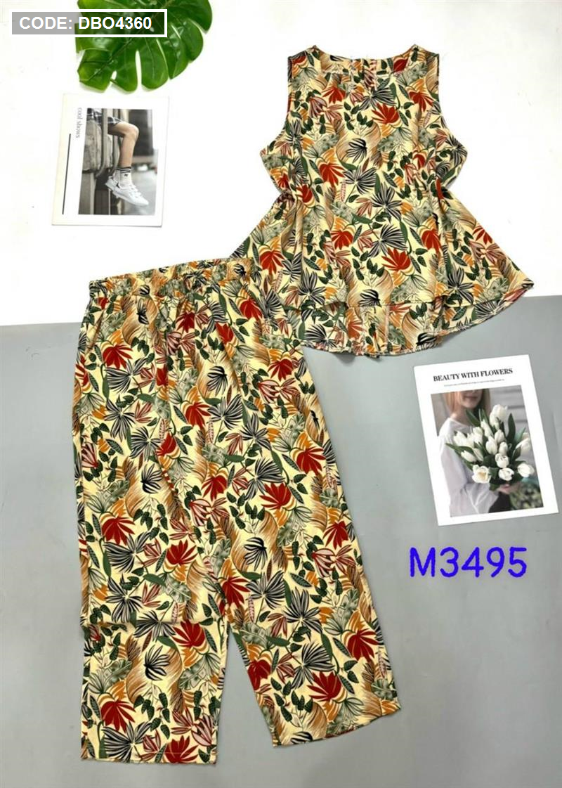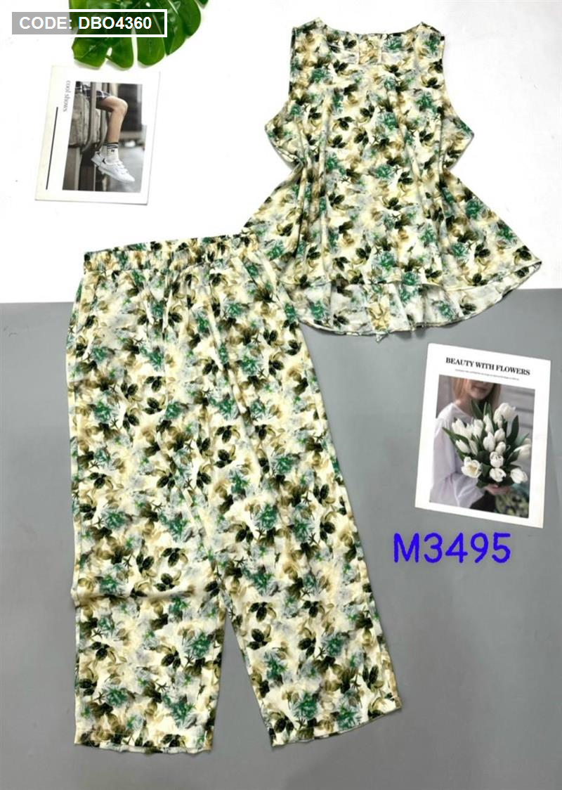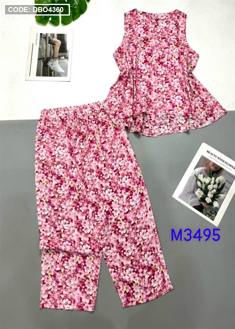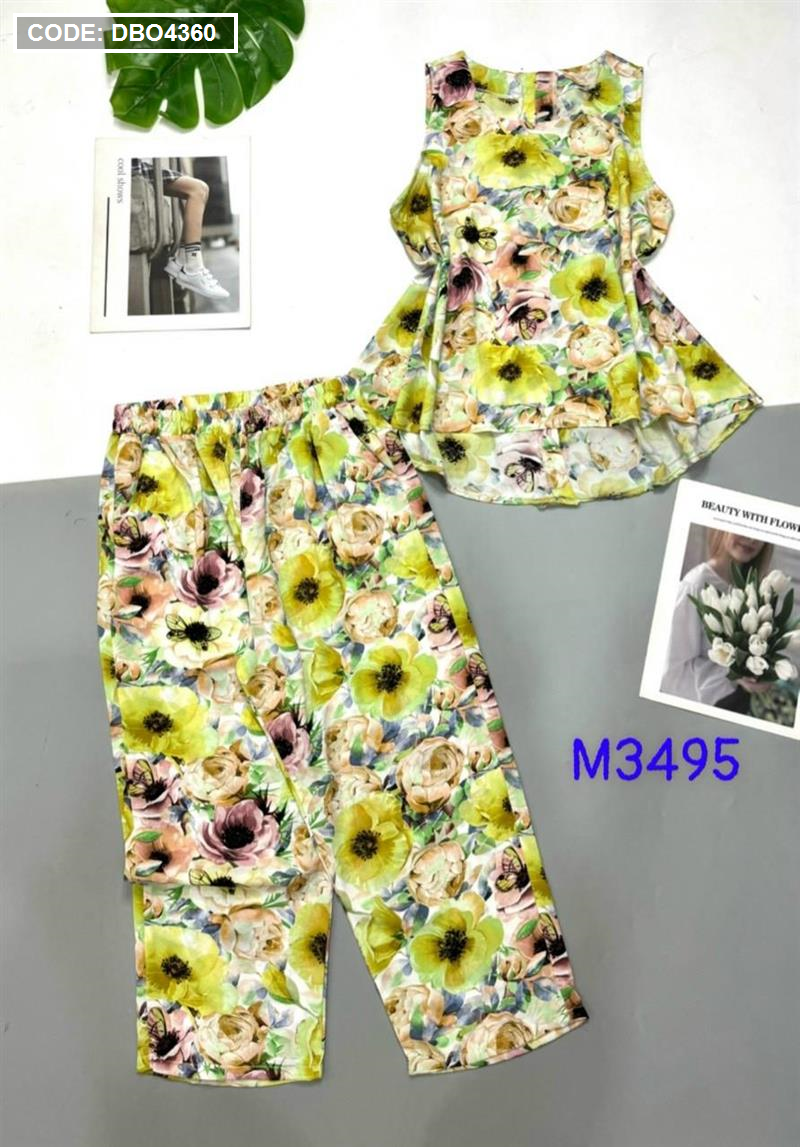 Shop sỉ đồ bộ mango áo sát nách cổ tròn in hình bông