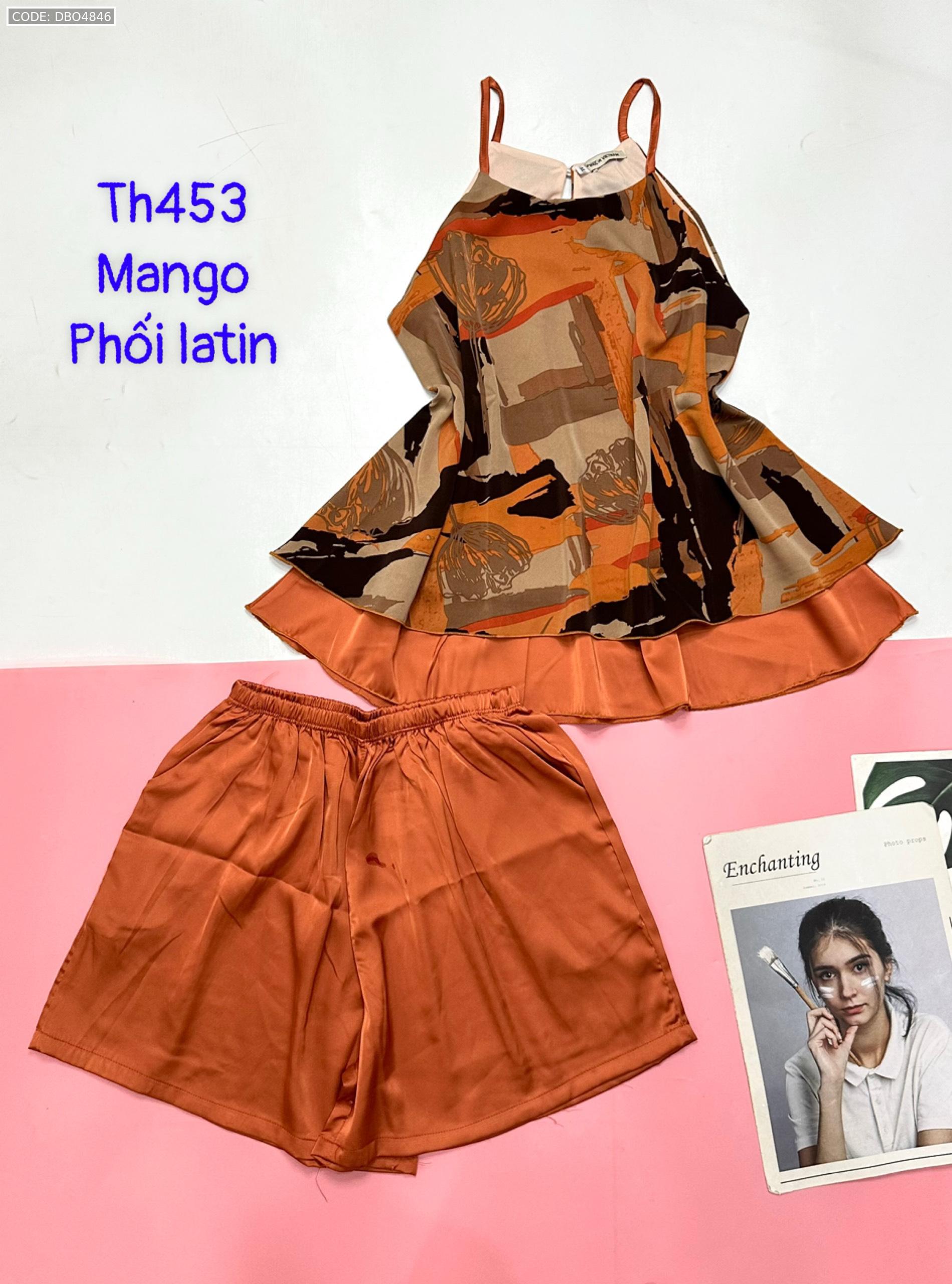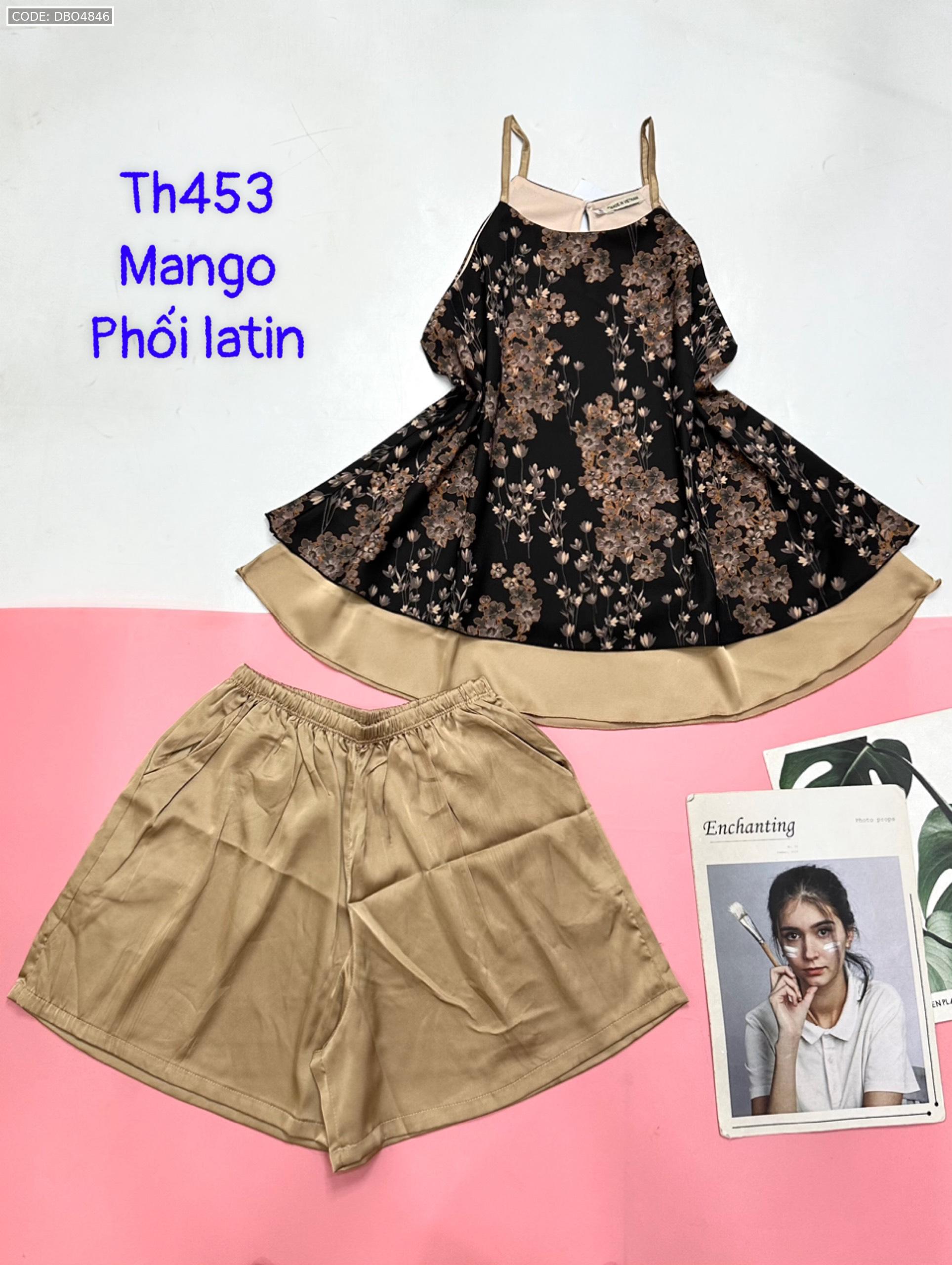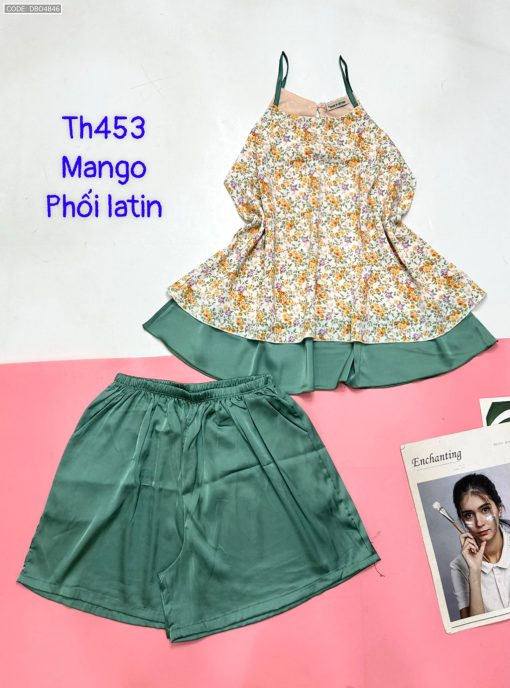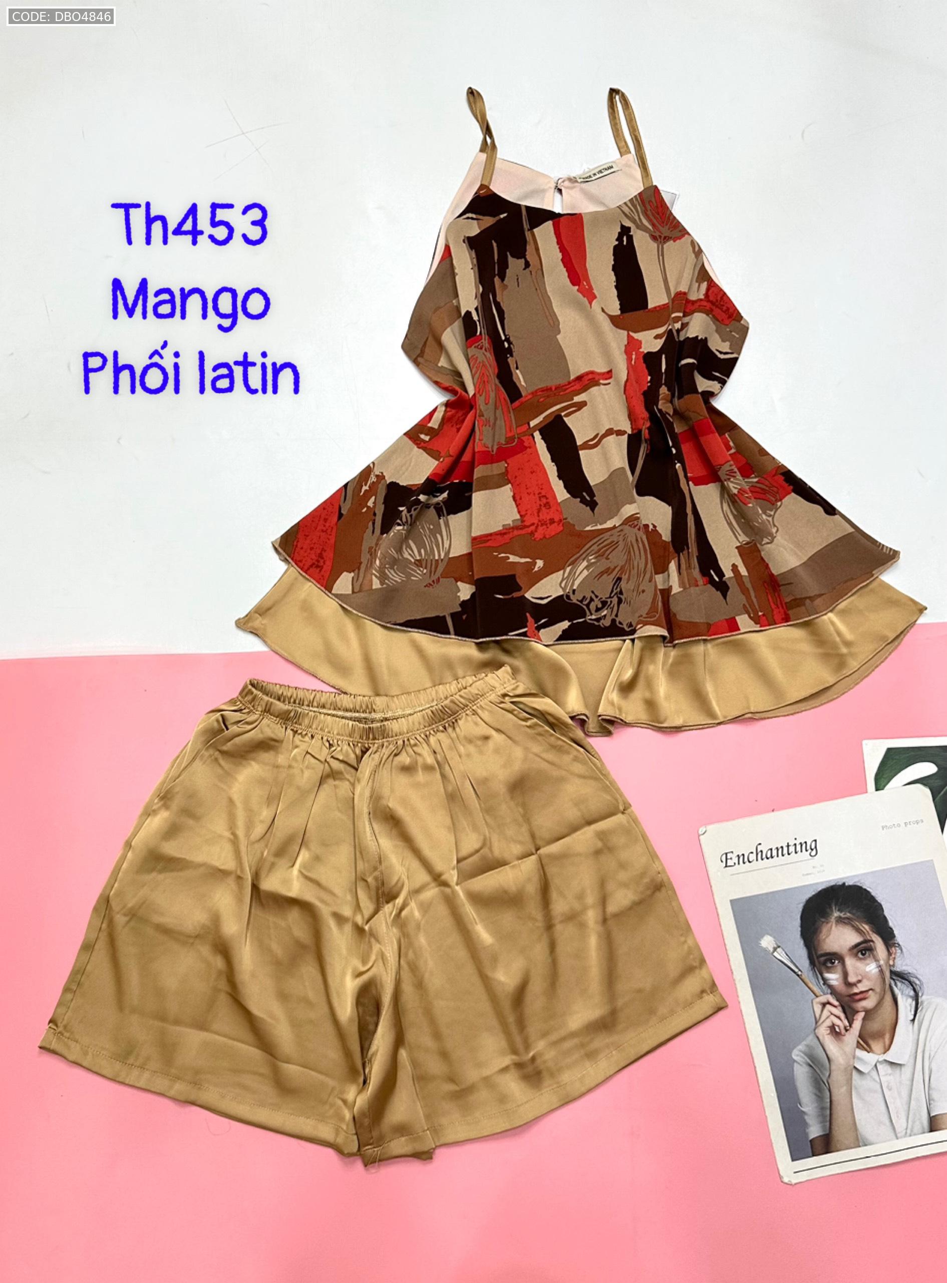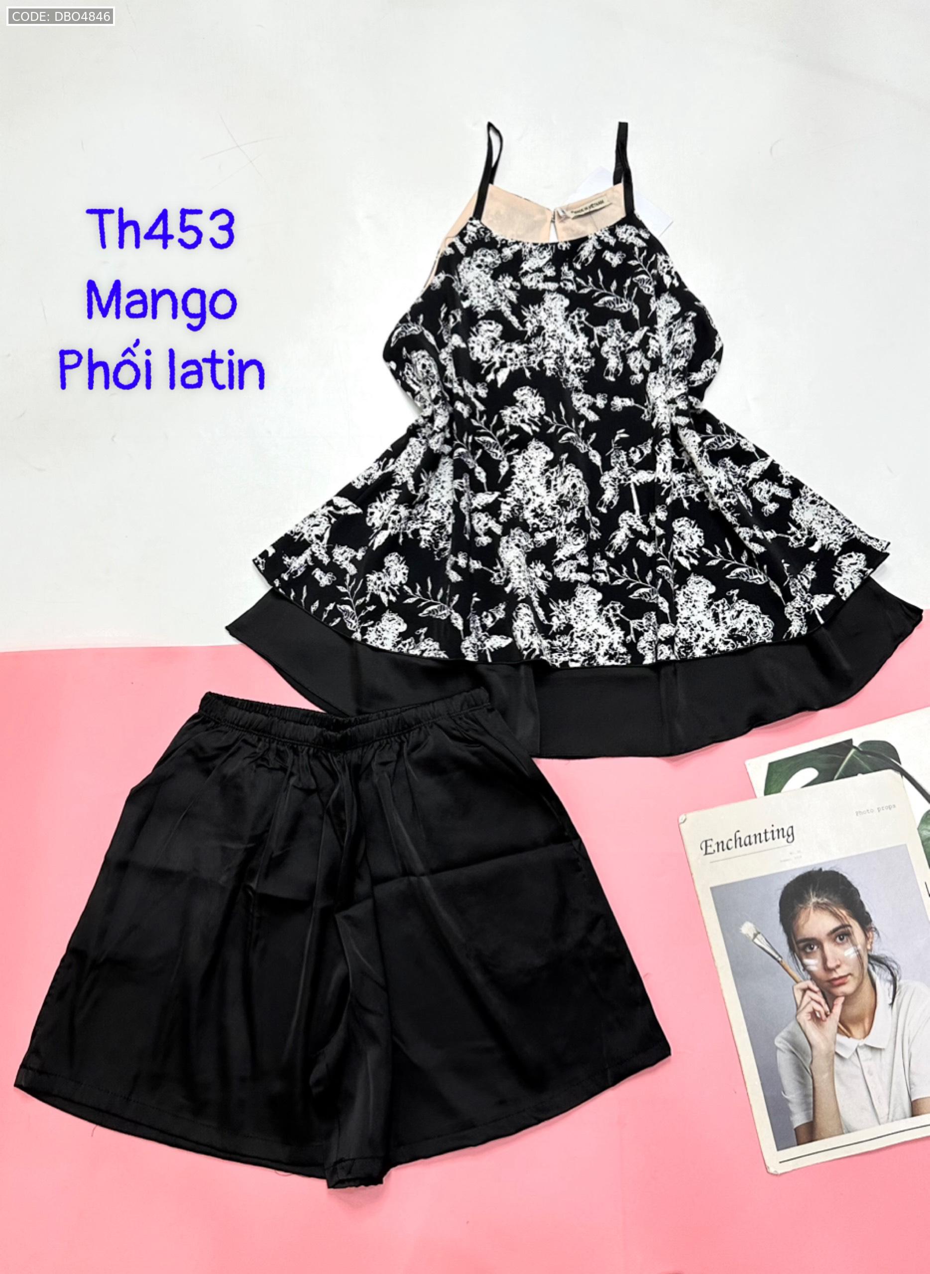 Shop sỉ đồ bộ mango phối latin quần đùi trơn áo yếm 2 dây 2 tầng
