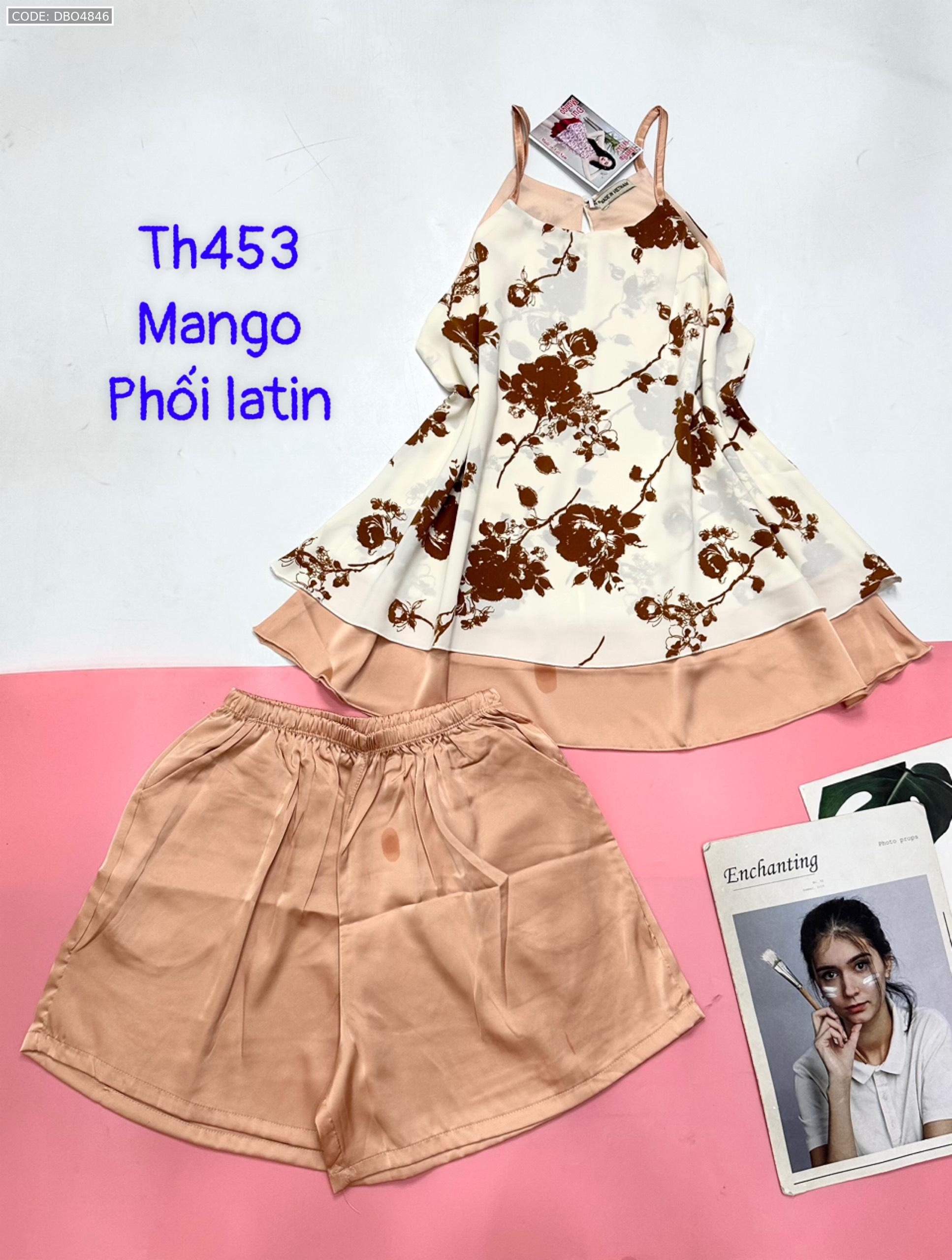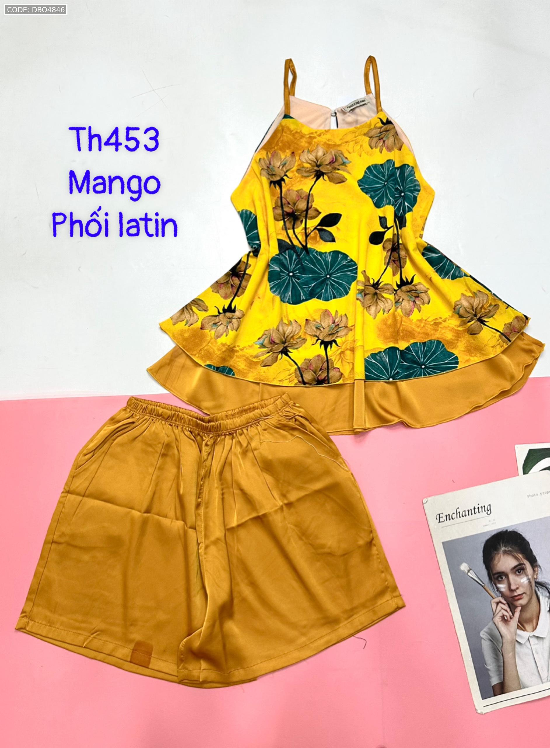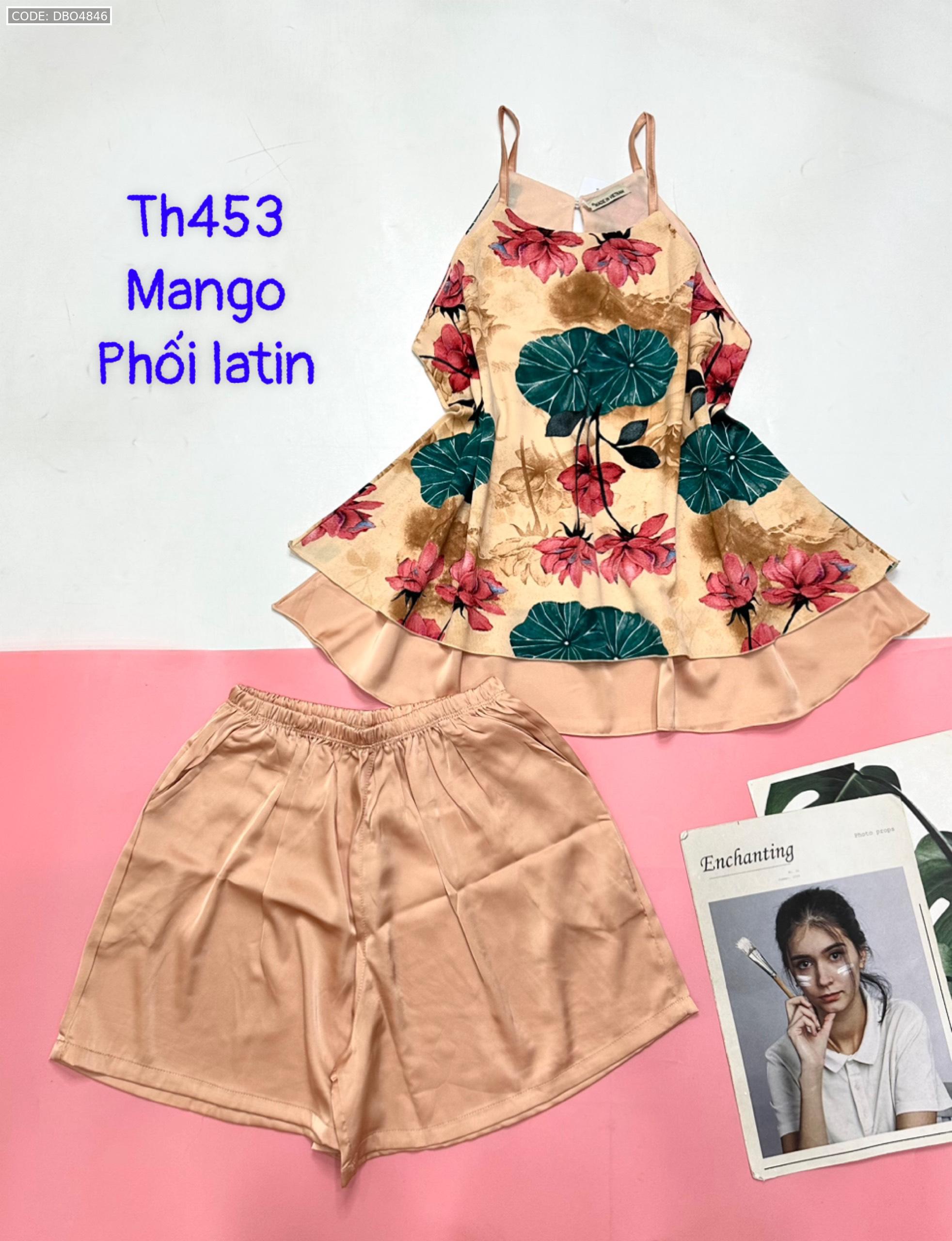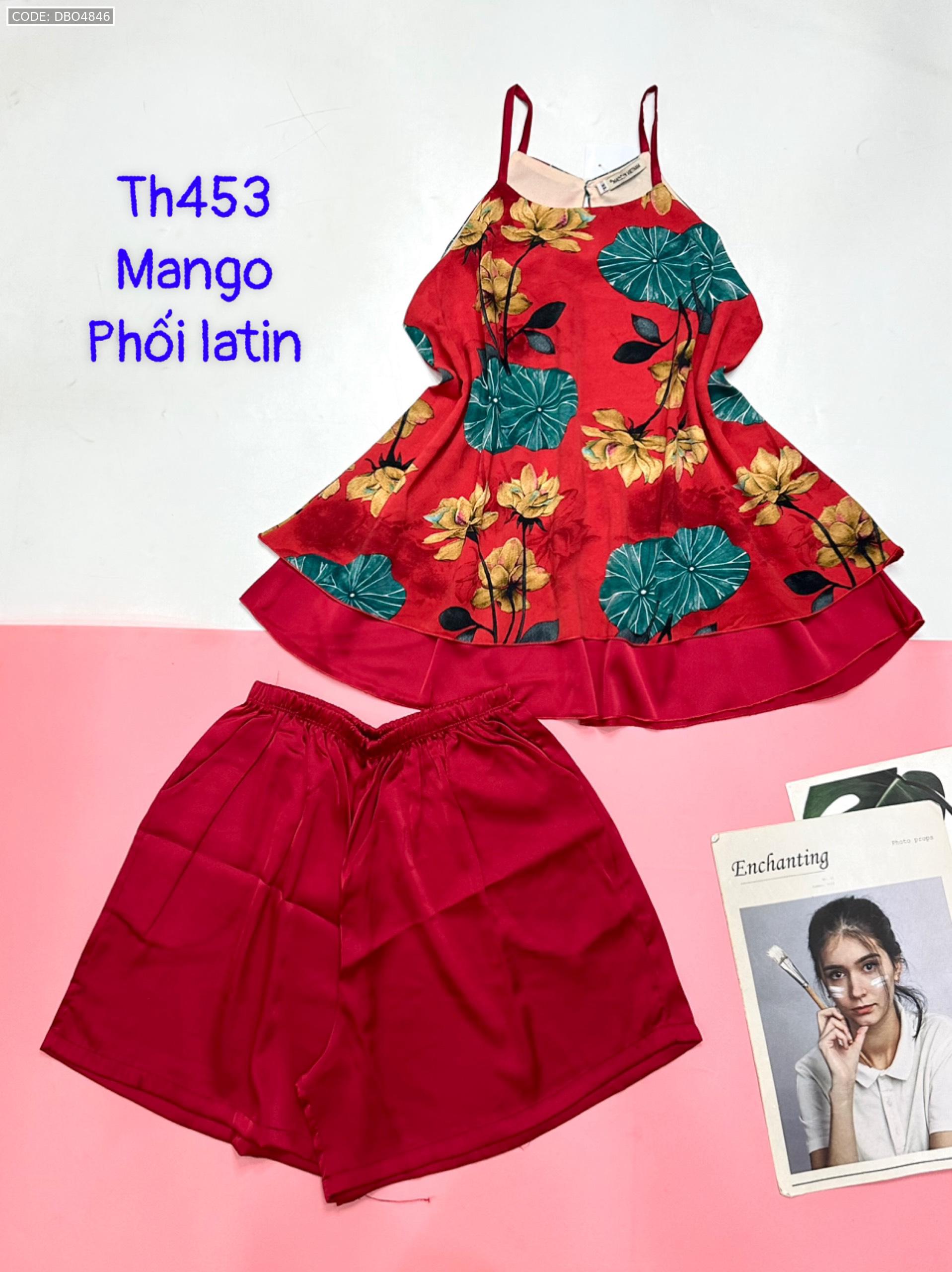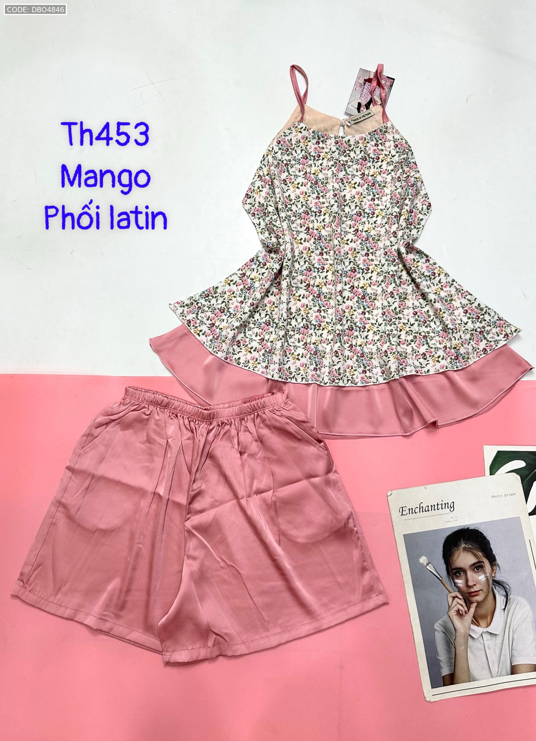 Shop sỉ đồ bộ mango phối latin quần đùi trơn áo yếm 2 dây 2 tầng