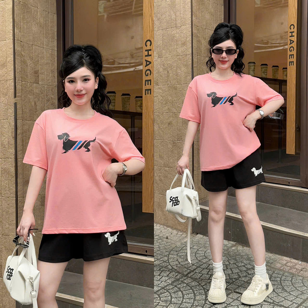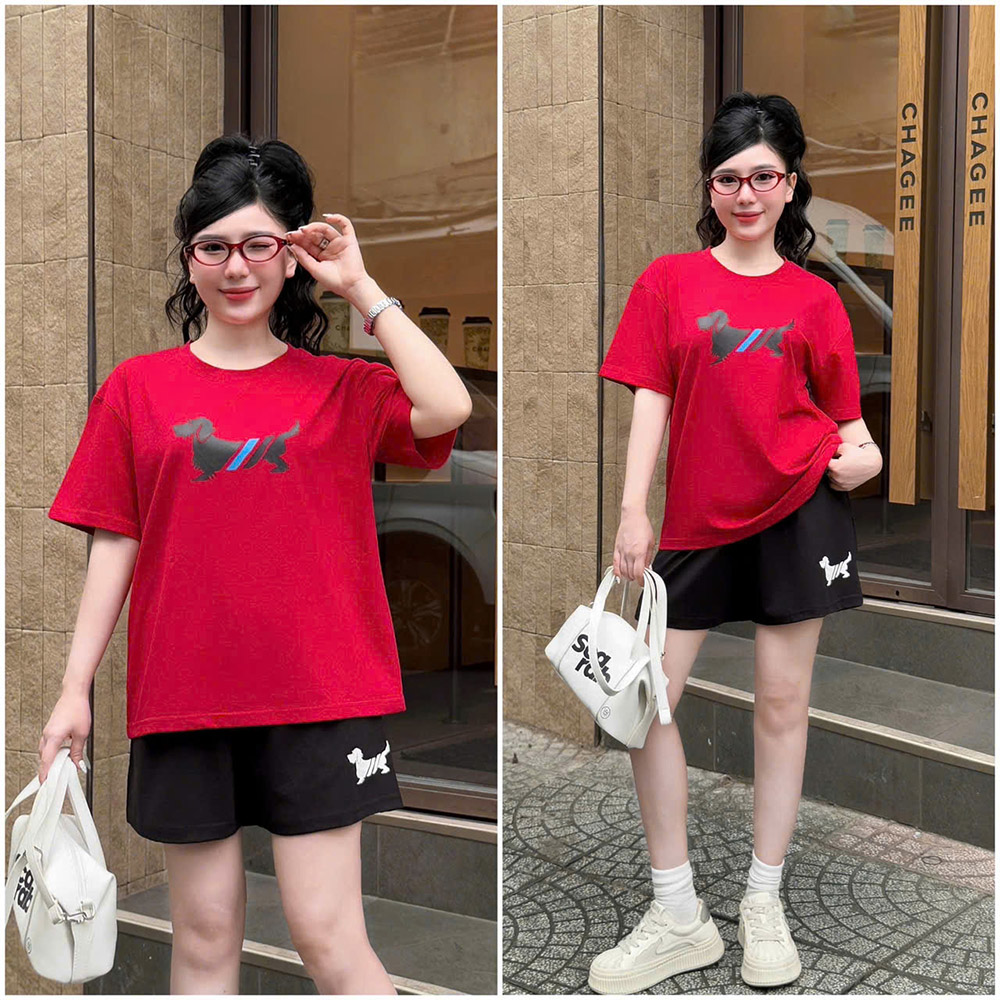 Shop sỉ đồ Bộ Nữ Áo Thun Cổ Tròn Tay Ngắn Quần Đùi Thể Thao Năng Động Vải Cotton Thoáng Mát Size 45-62kg