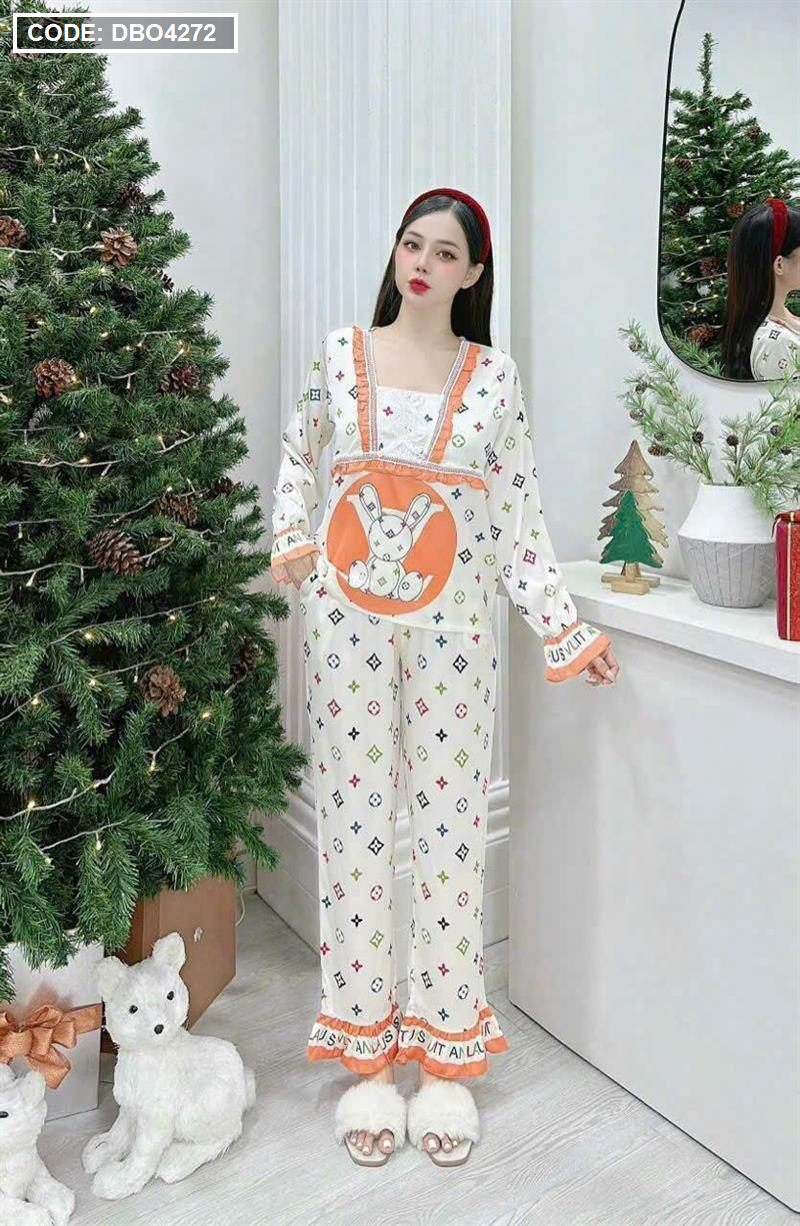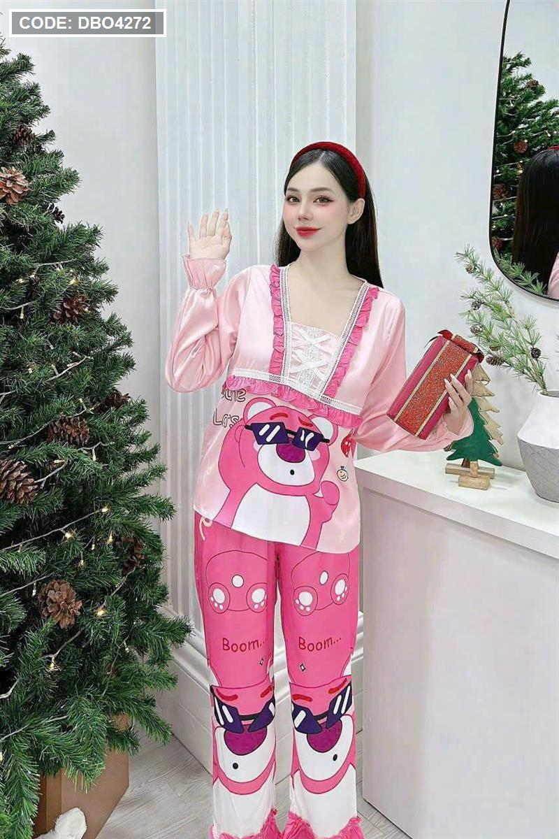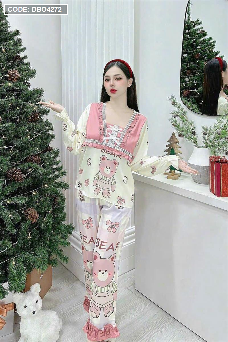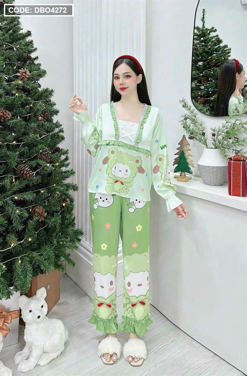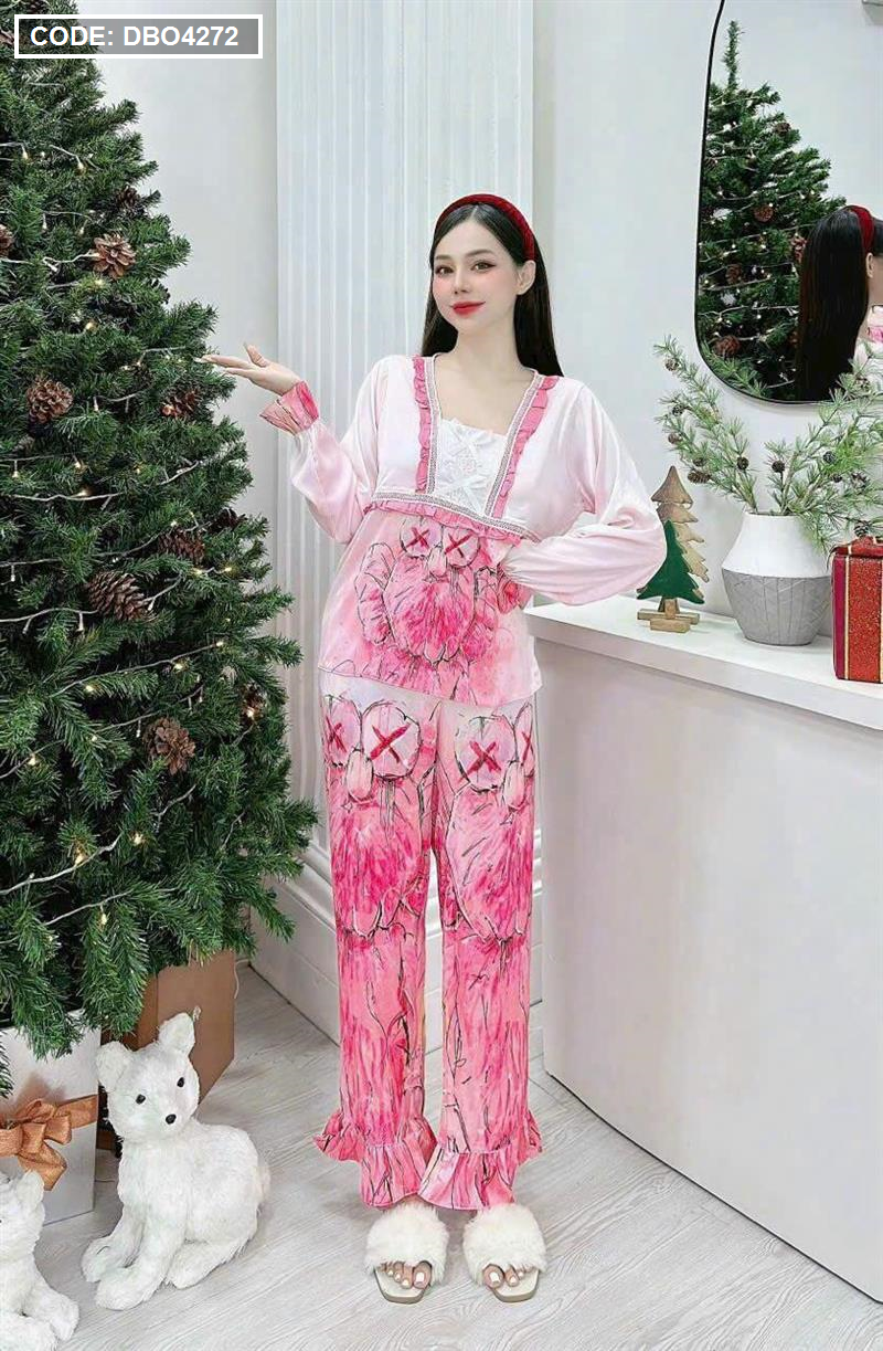 Đồ bộ pijama quần dài áo tay dài cổ vuông in hình
