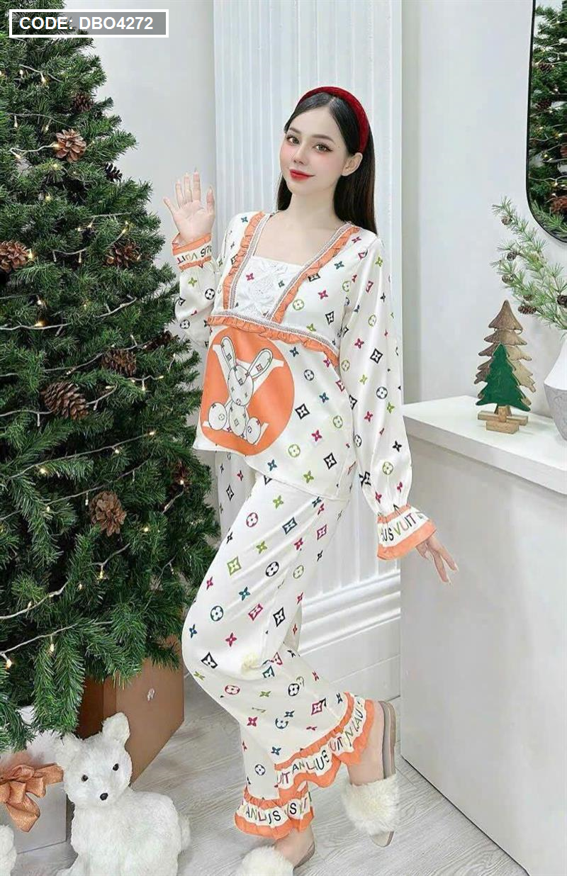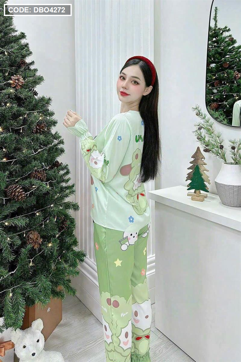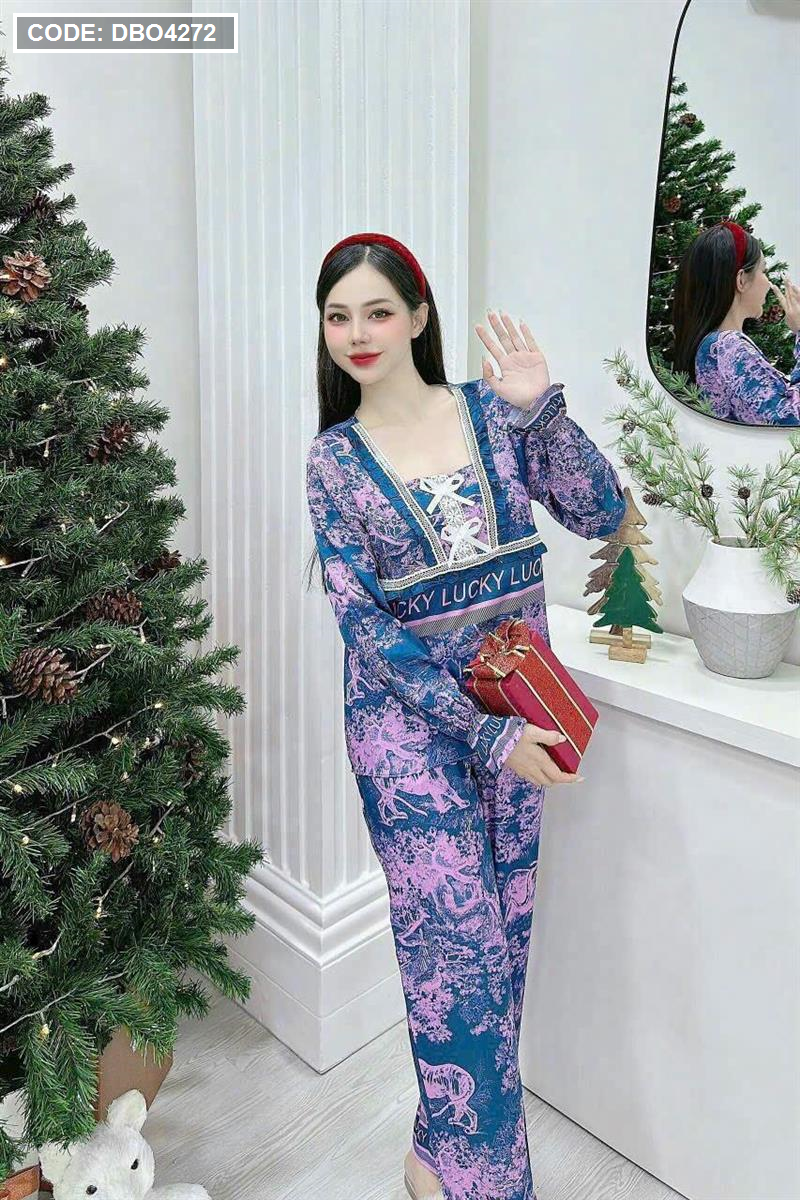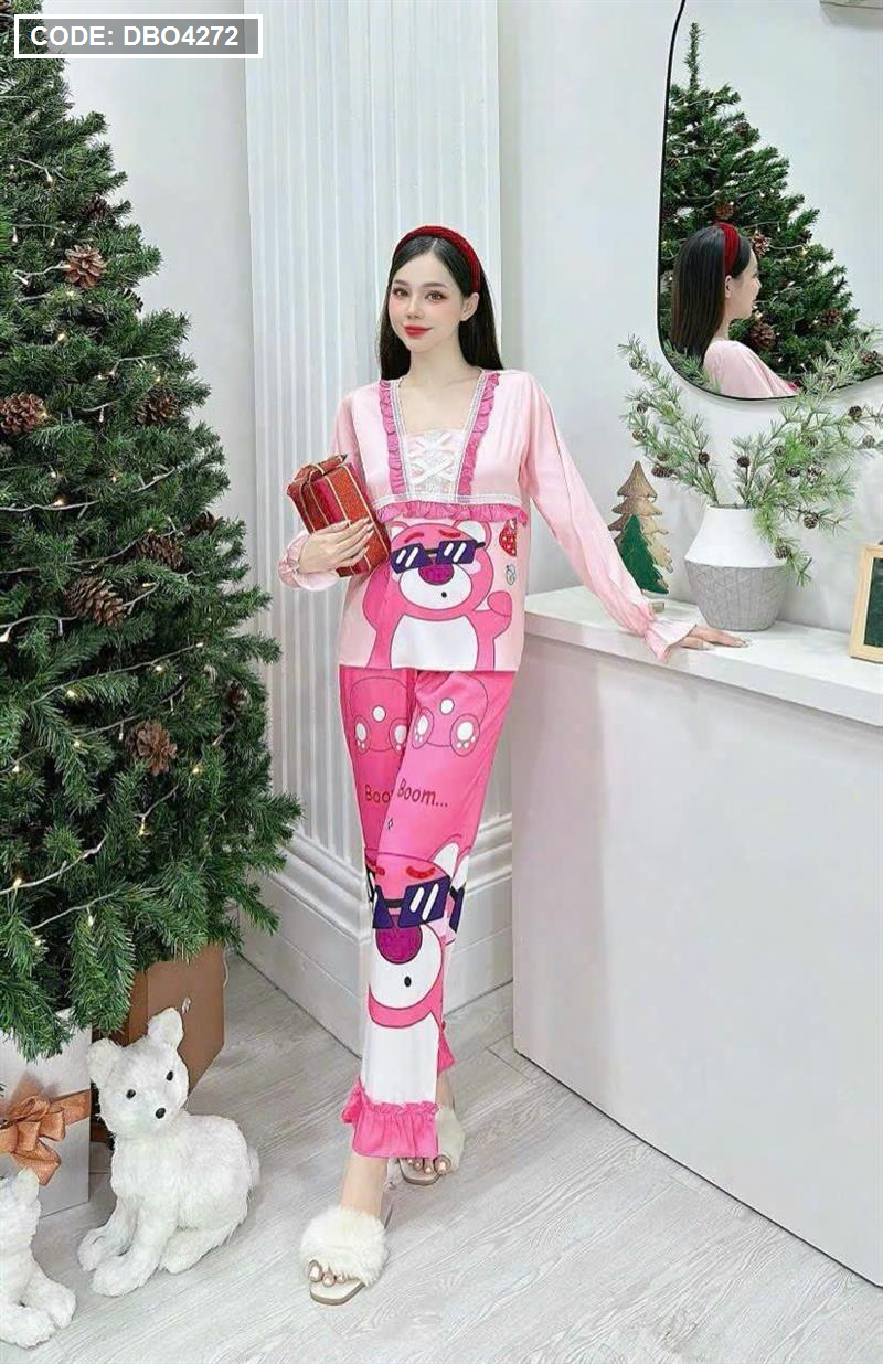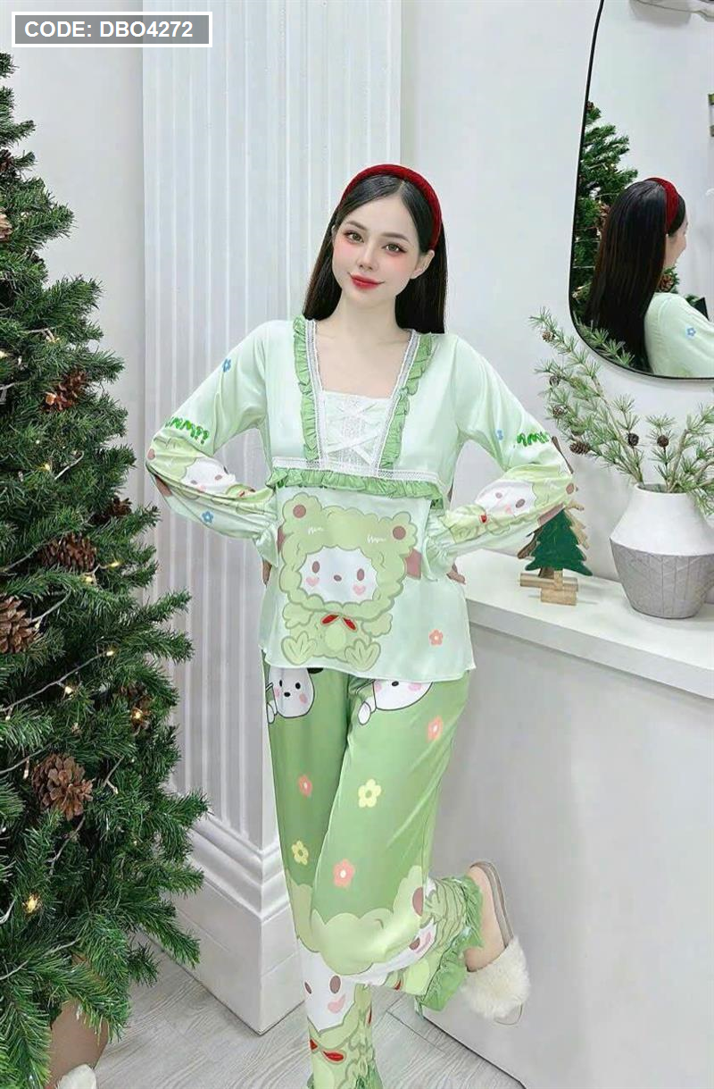 Đồ bộ pijama quần dài áo tay dài cổ vuông in hình