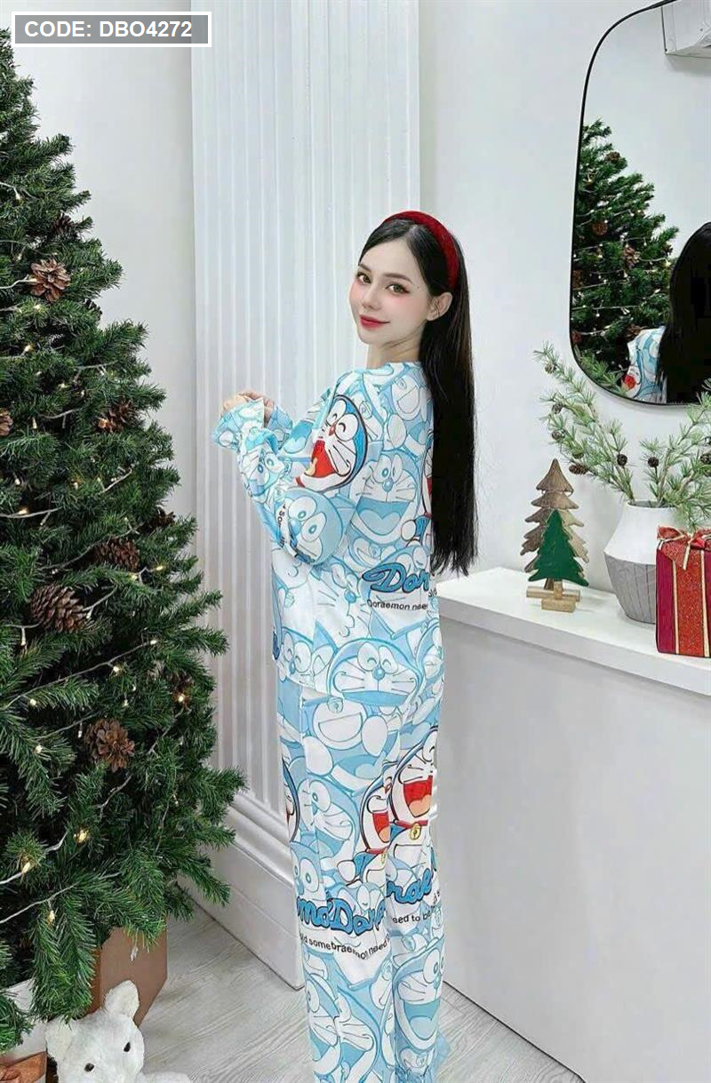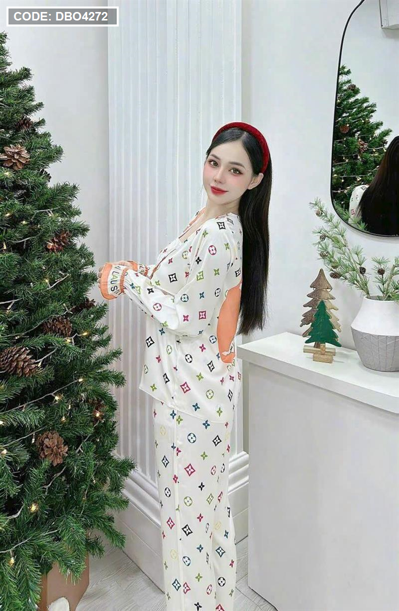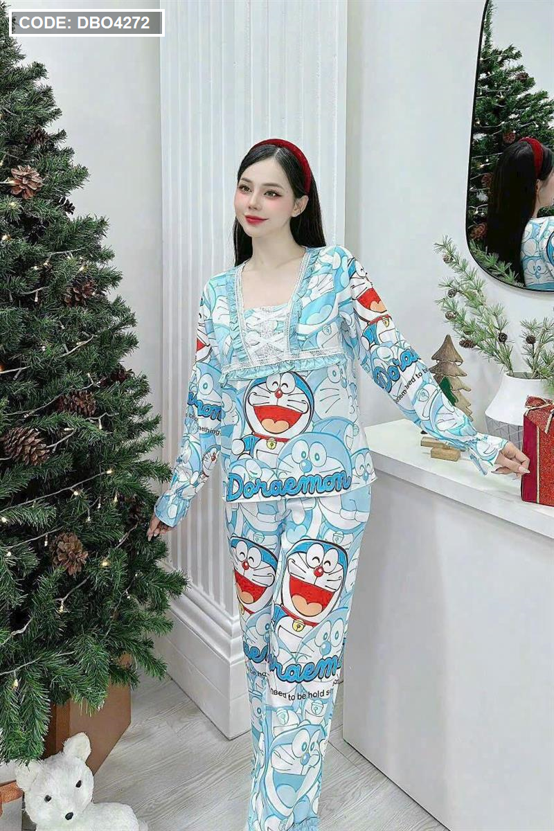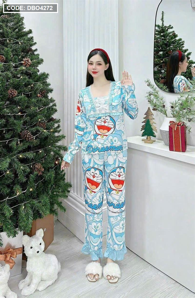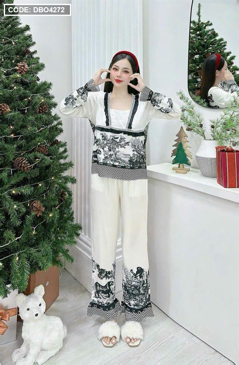 Đồ bộ pijama quần dài áo tay dài cổ vuông in hình