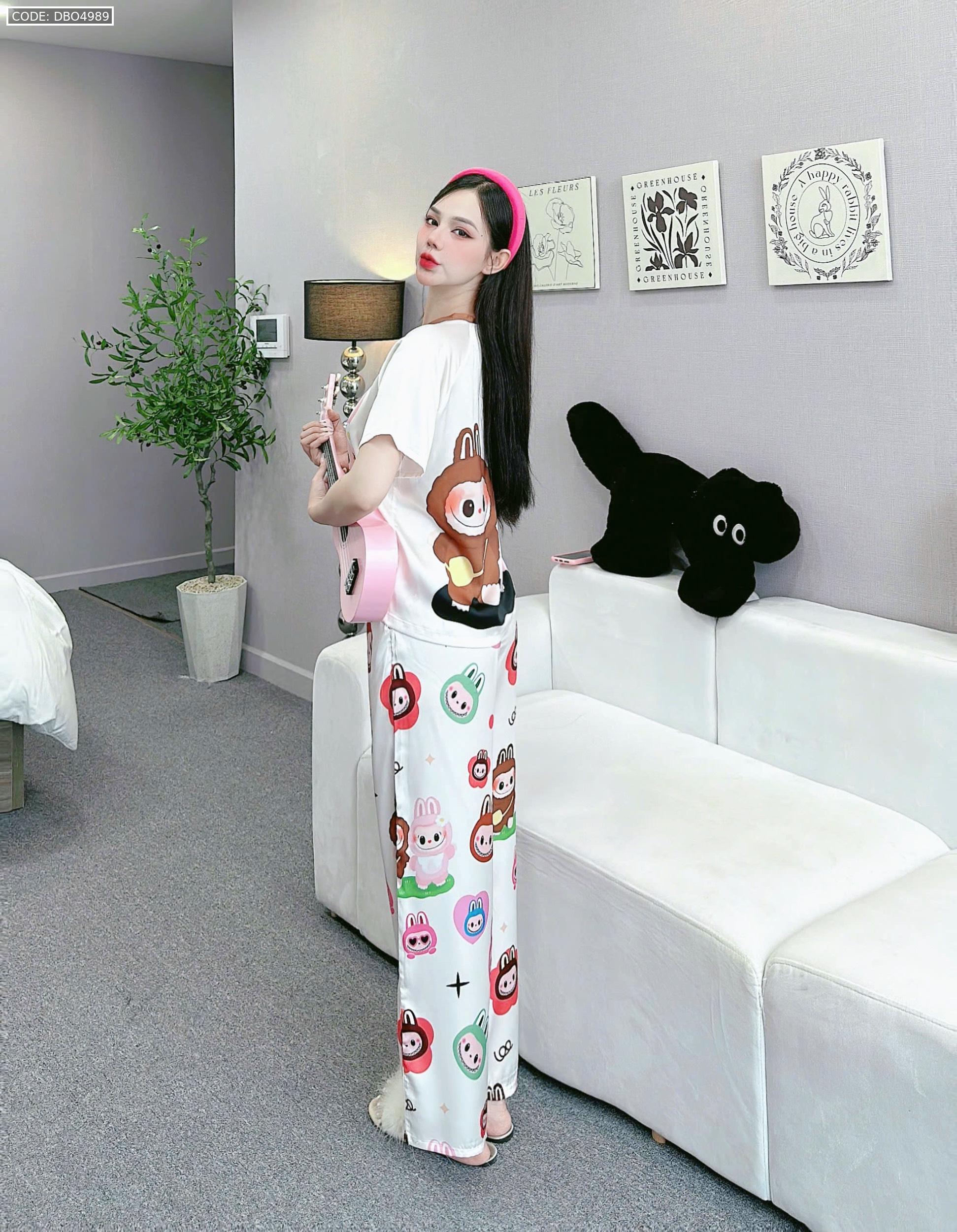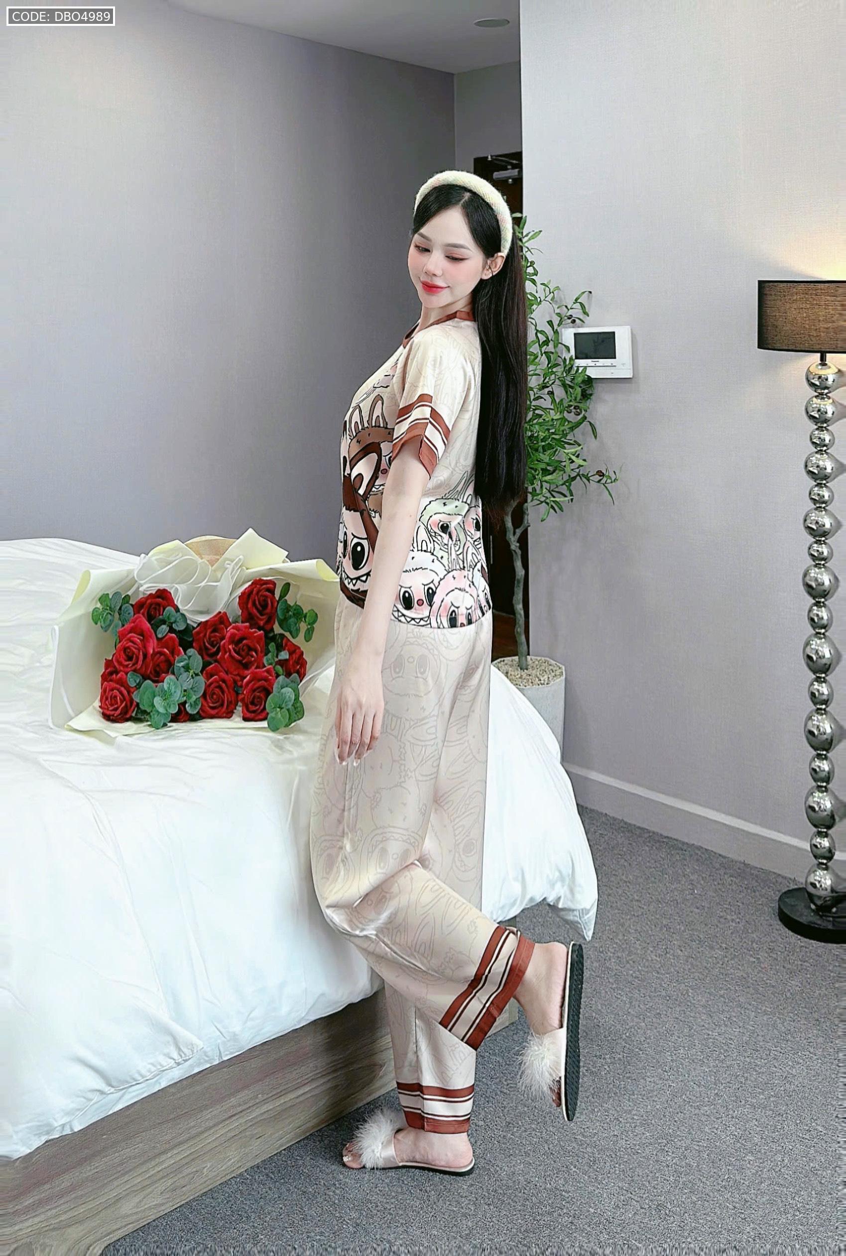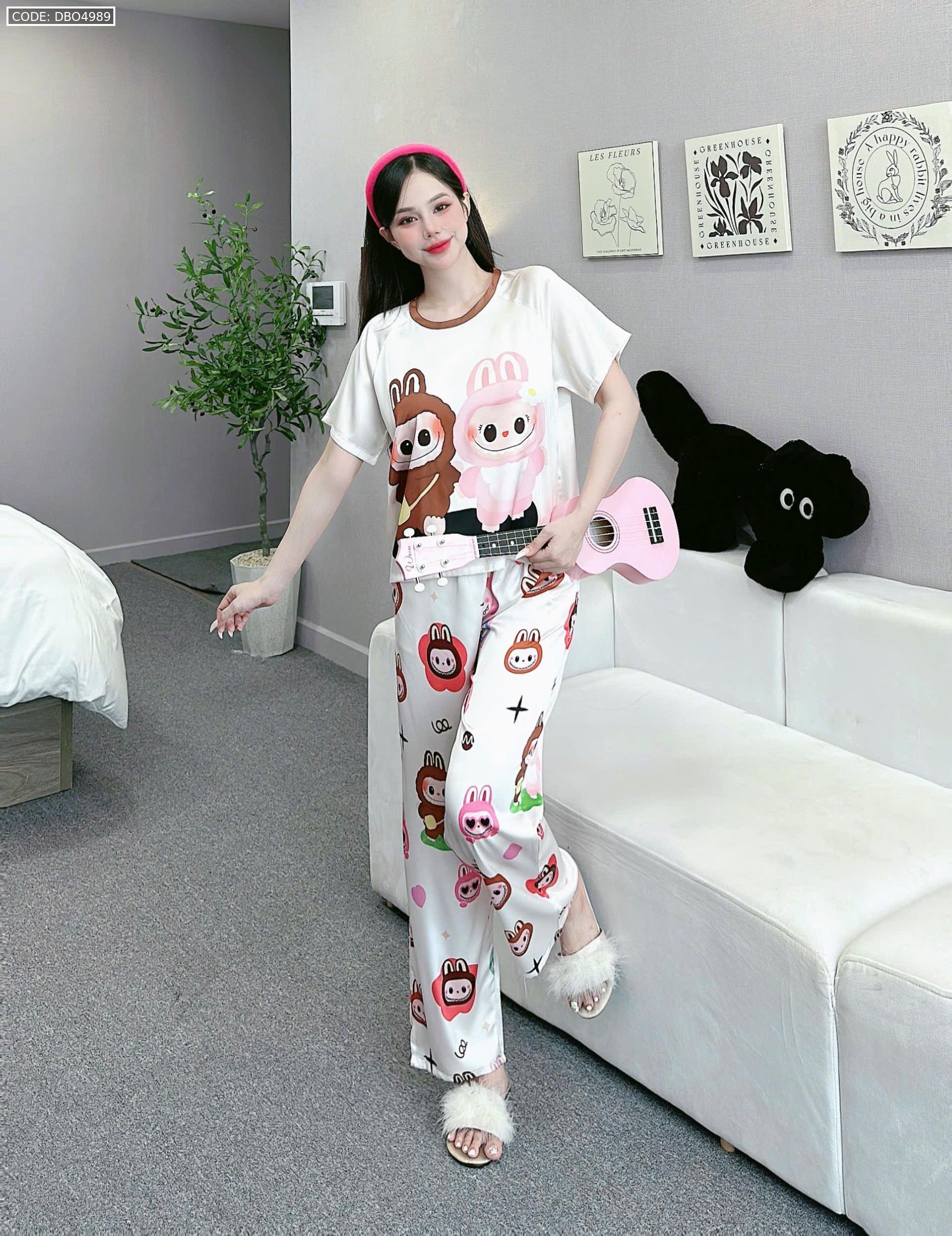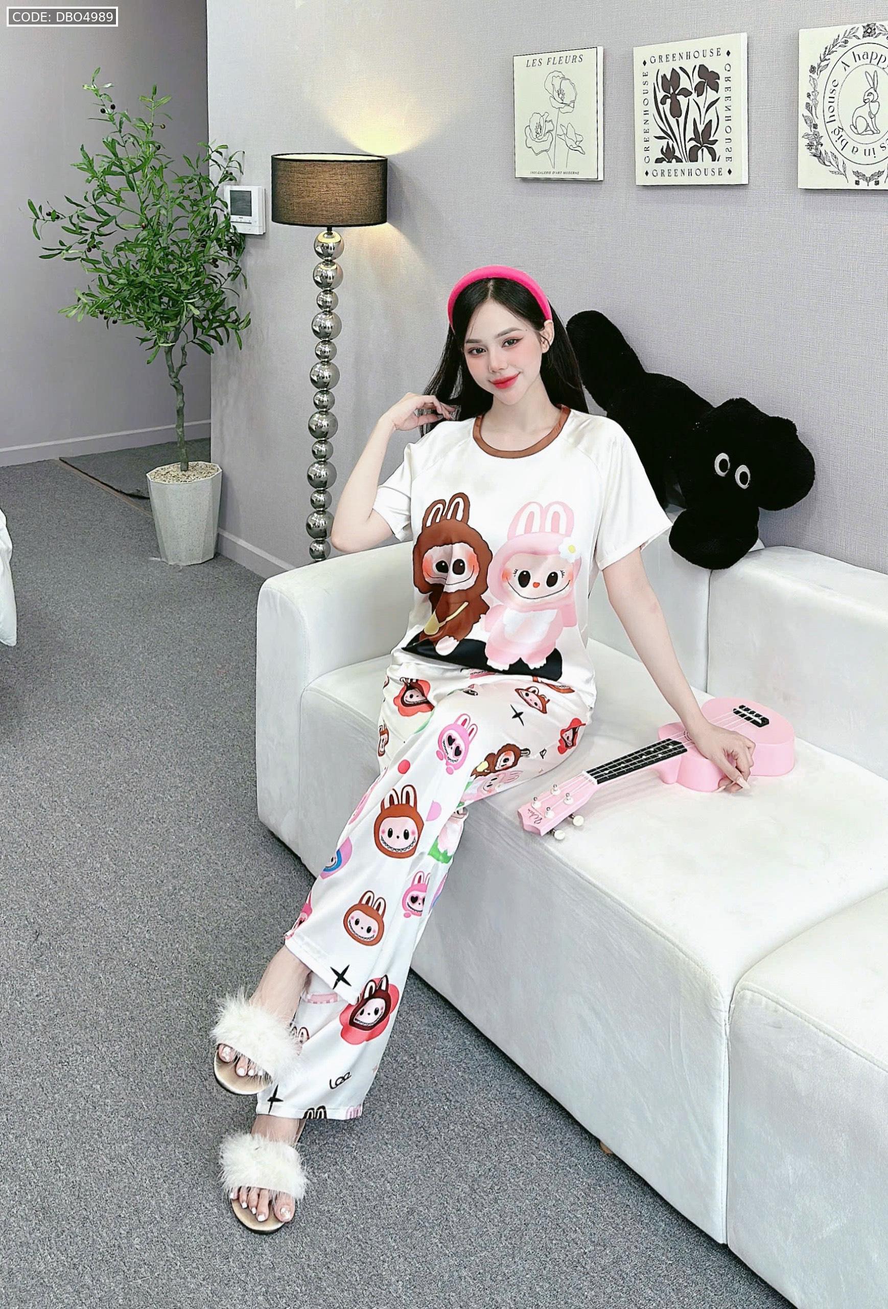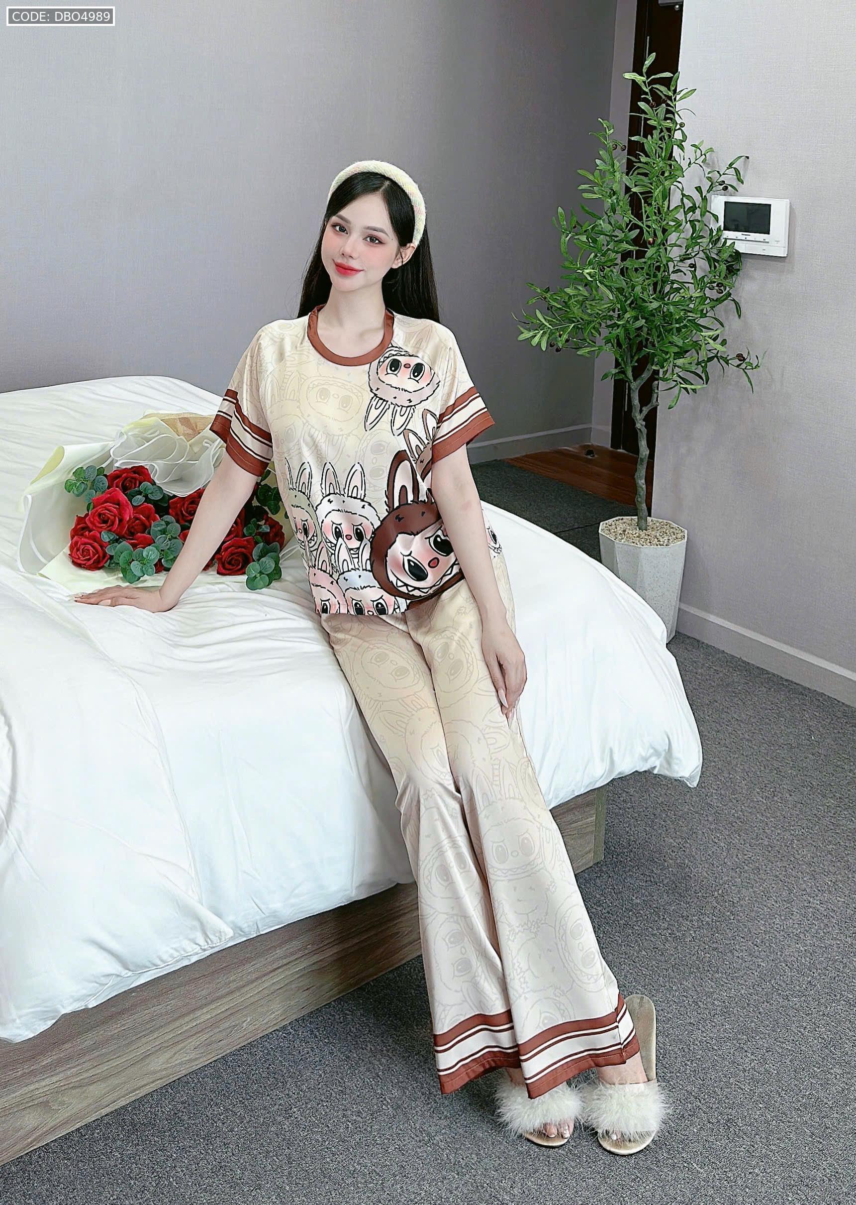 Shop sỉ đồ bộ quần dài áo cổ tròn tay ngắn in nhiều hoạ tiết
