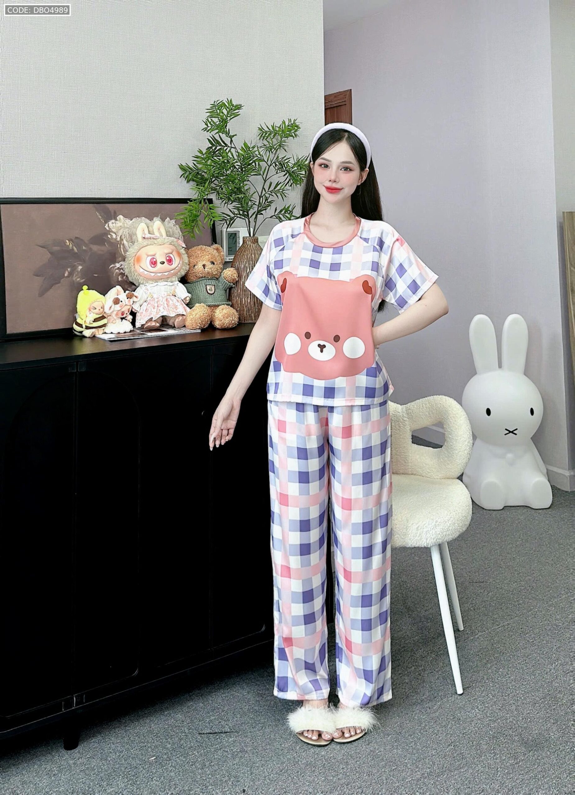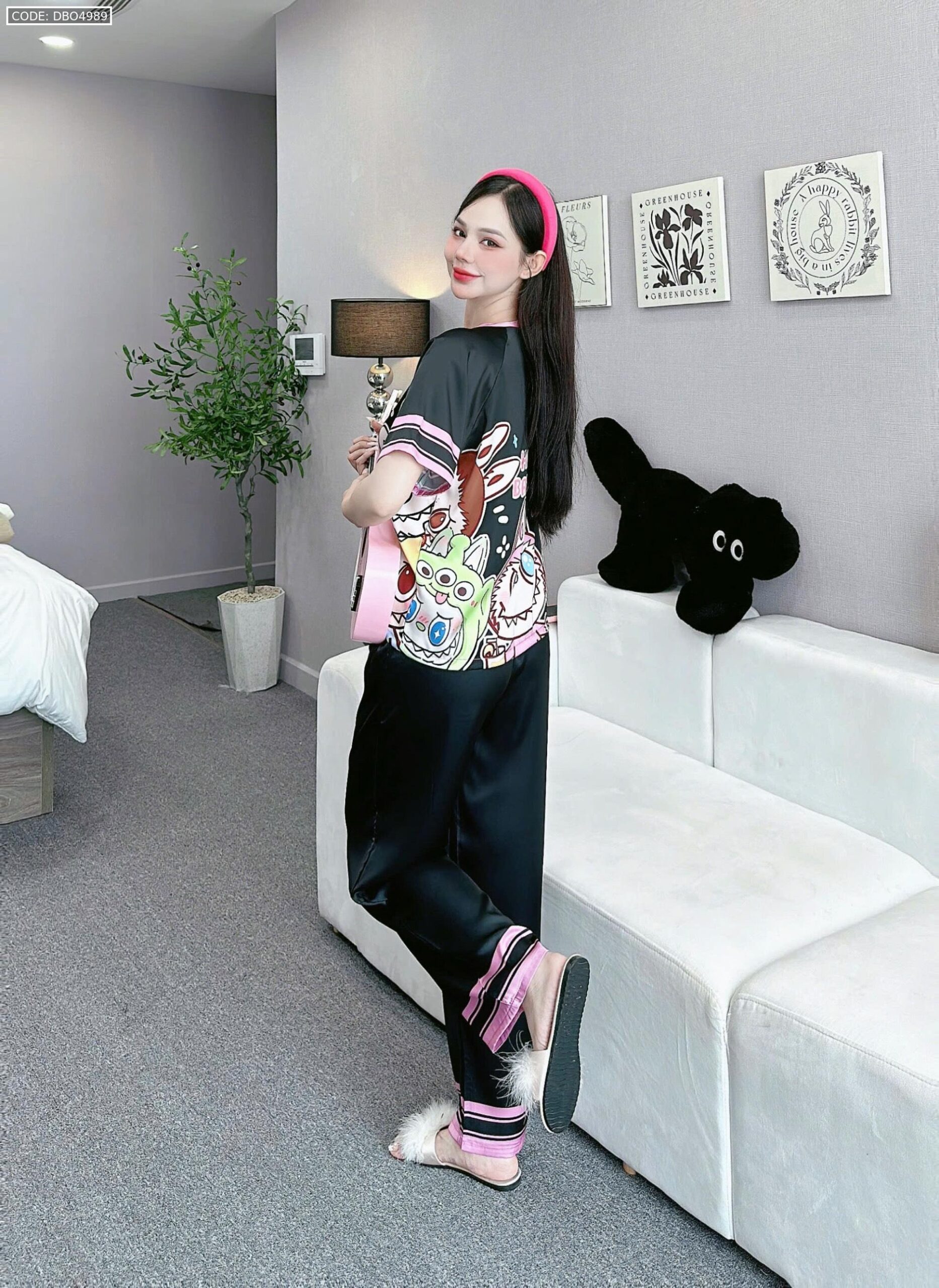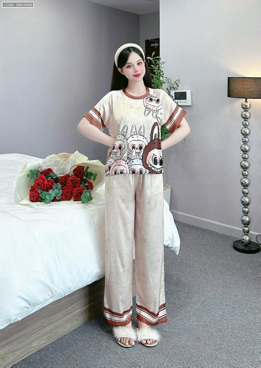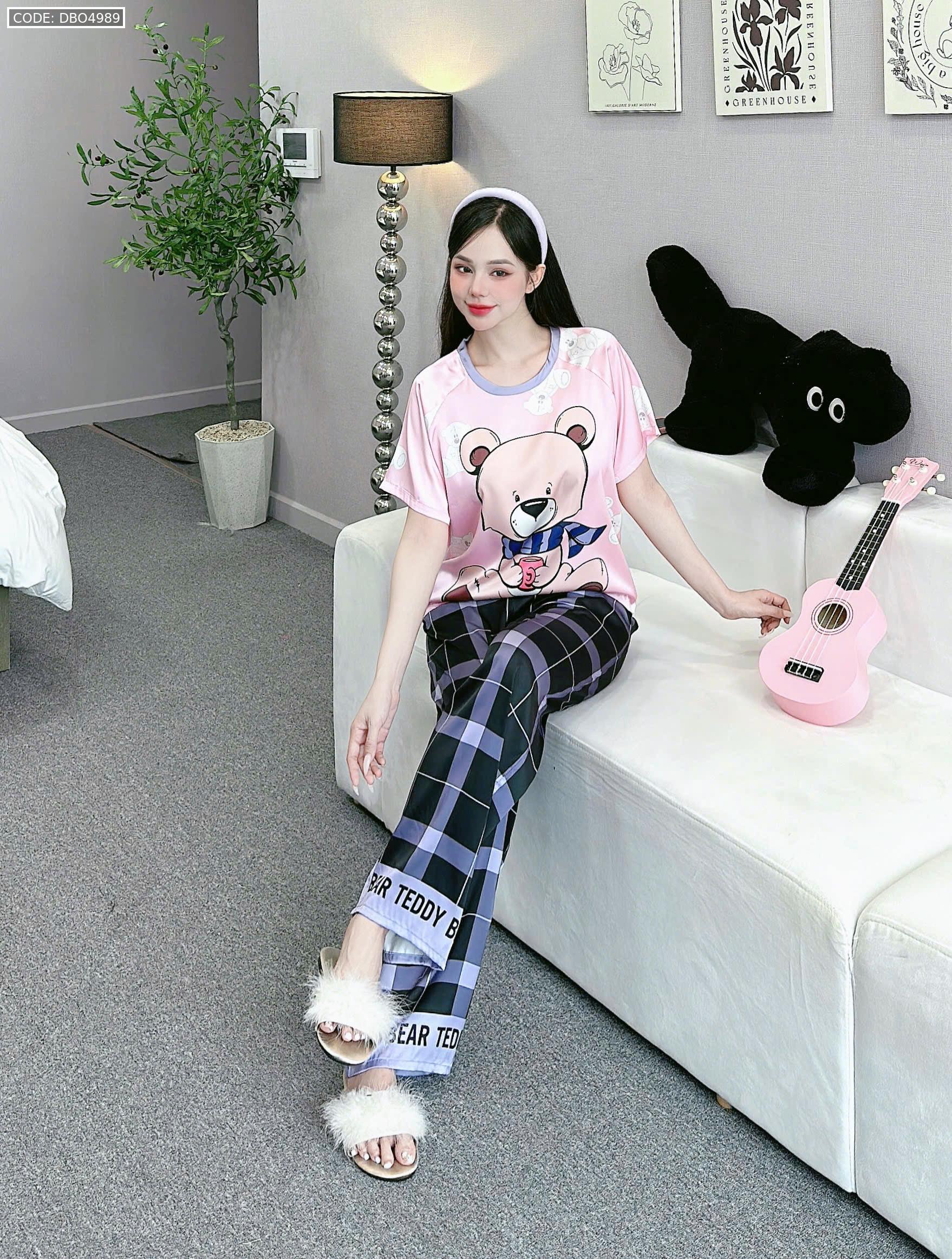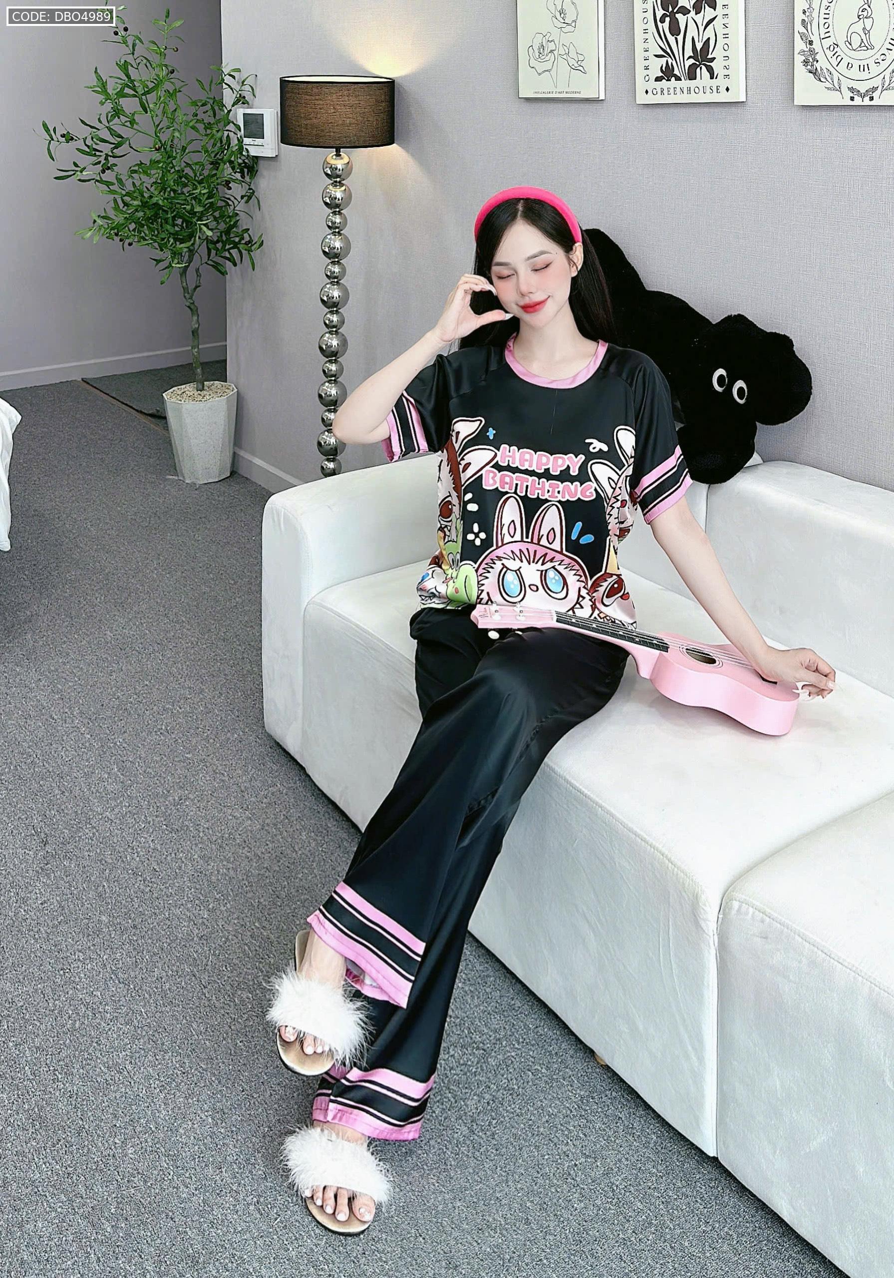 Shop sỉ đồ bộ quần dài áo cổ tròn tay ngắn in nhiều hoạ tiết