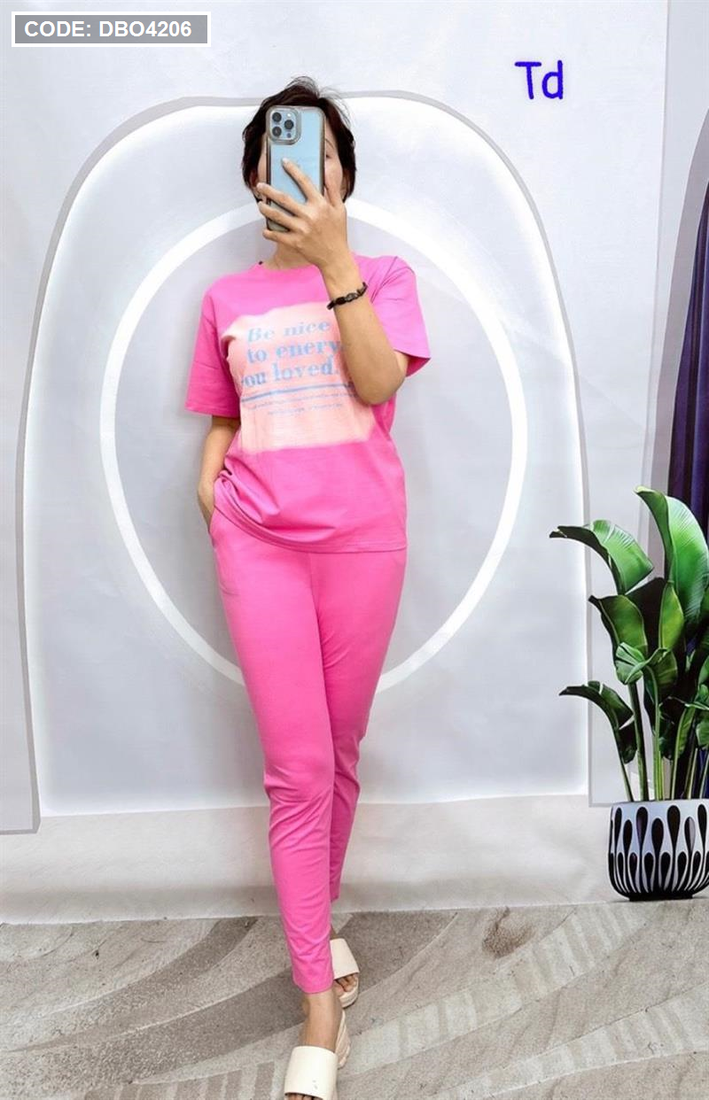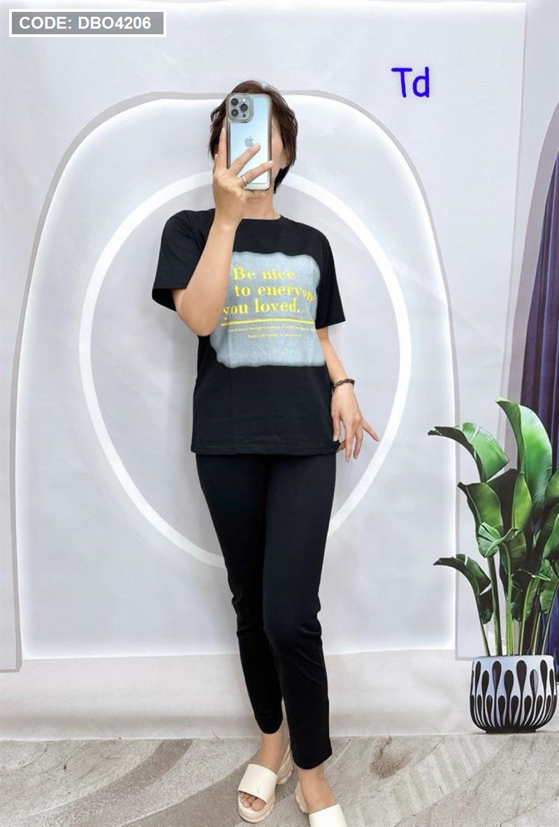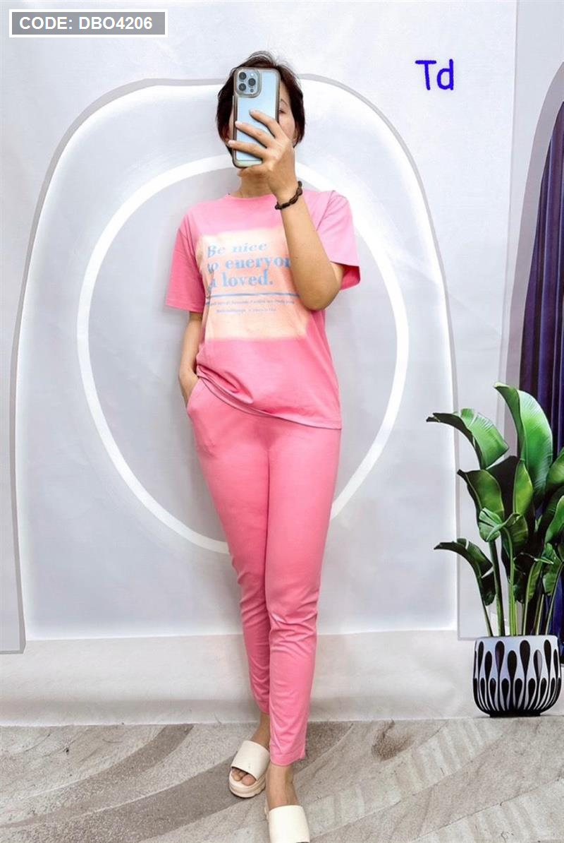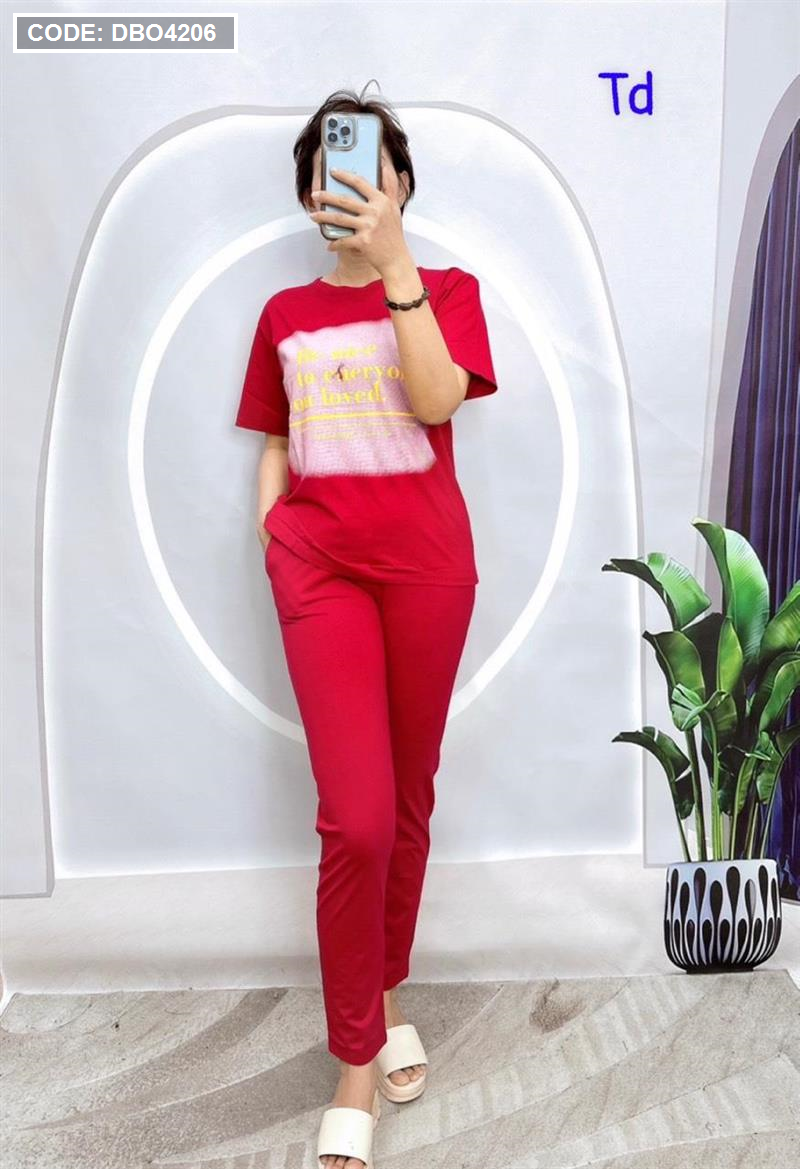 Shop sỉ đồ bộ quần dài áo tay ngắn in chữ trên nền trắng
