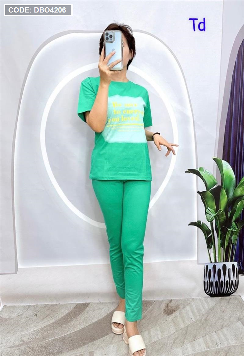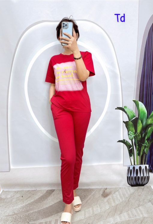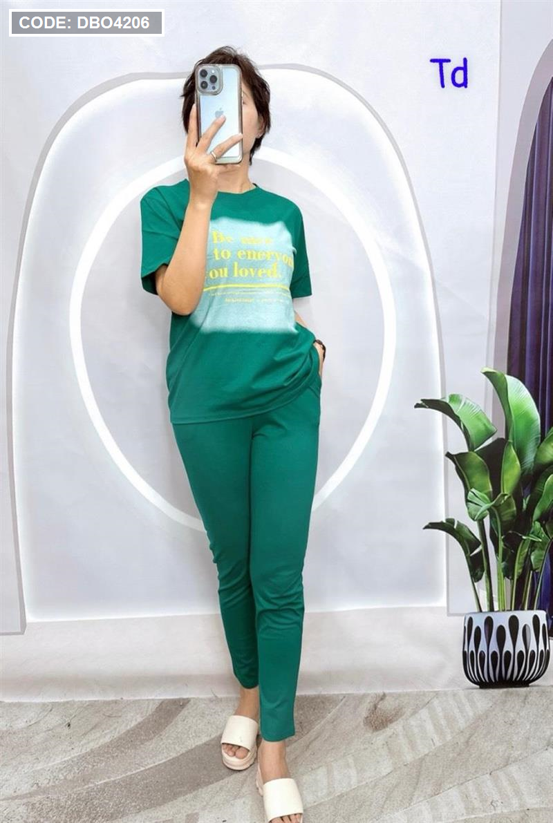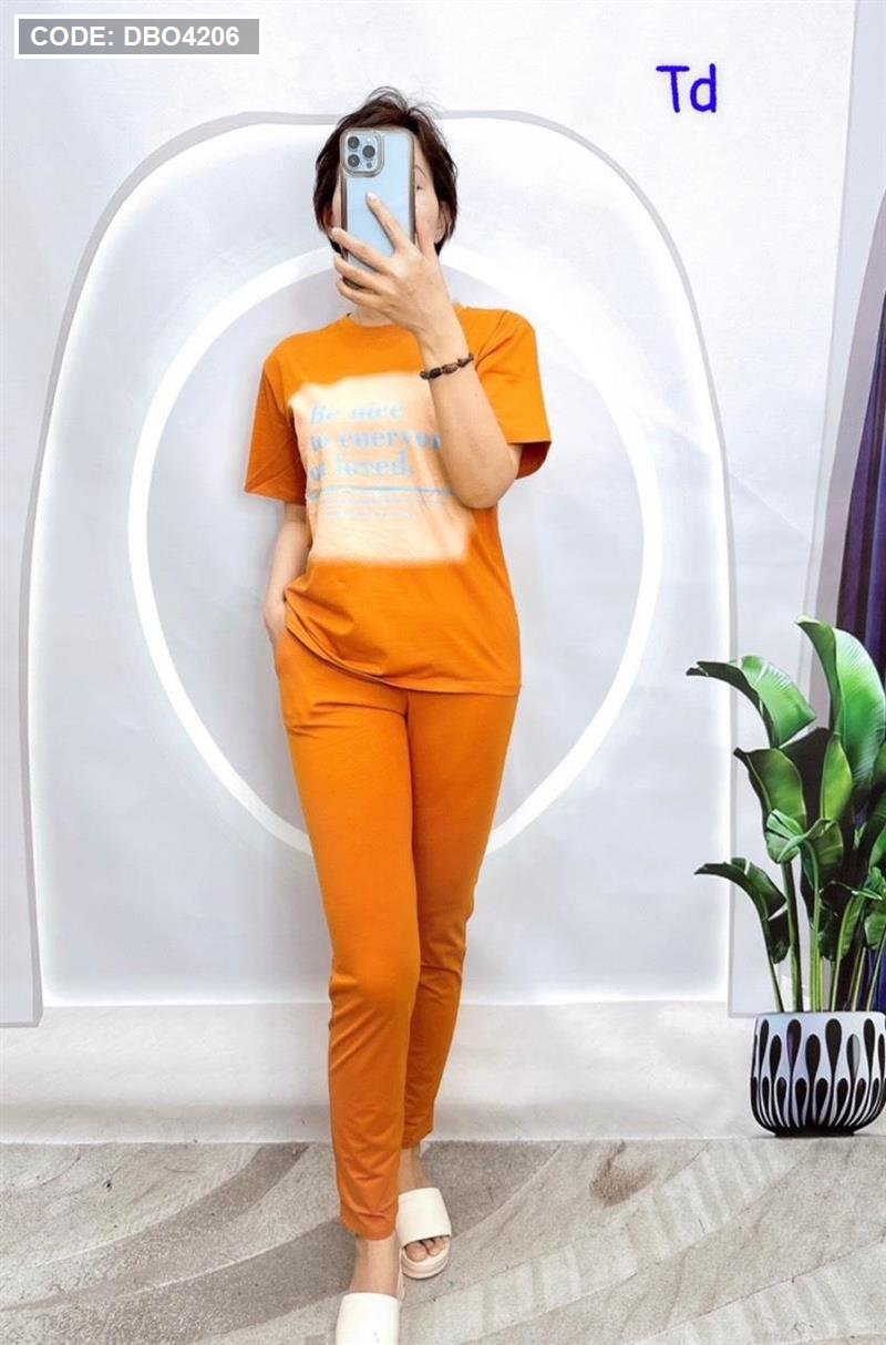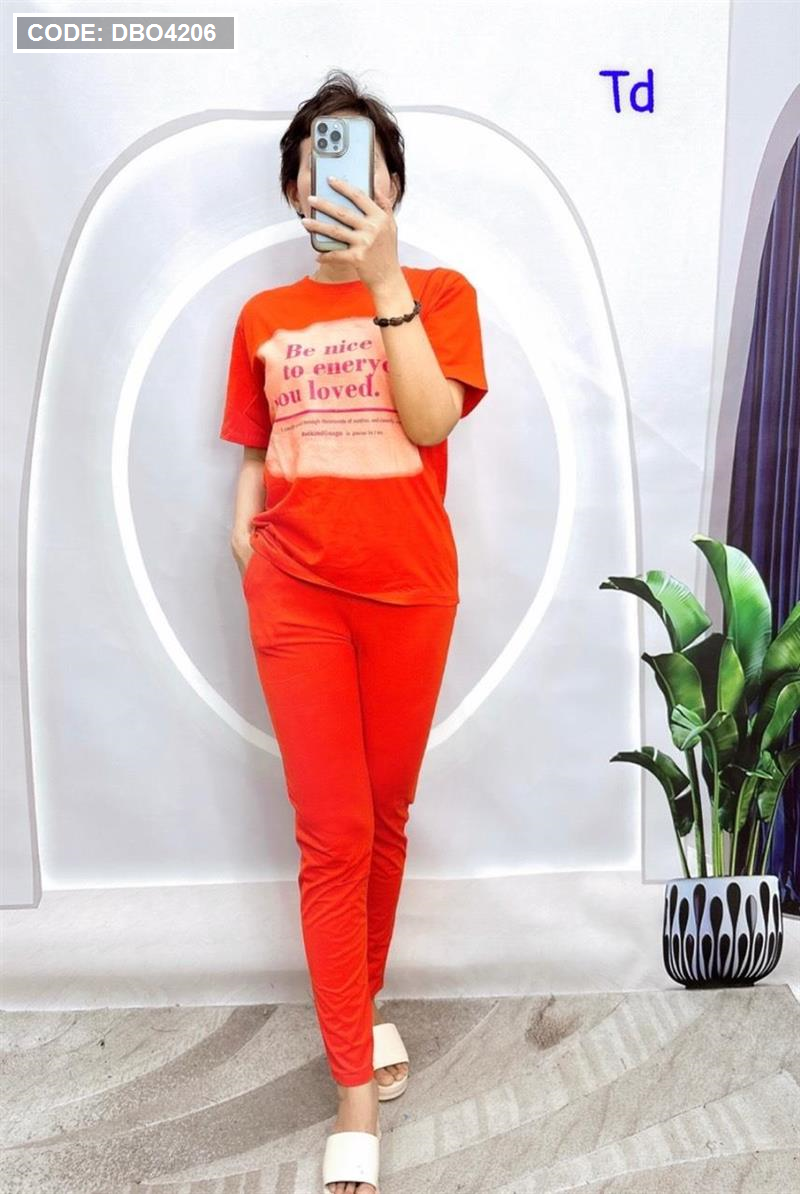 Shop sỉ đồ bộ quần dài áo tay ngắn in chữ trên nền trắng