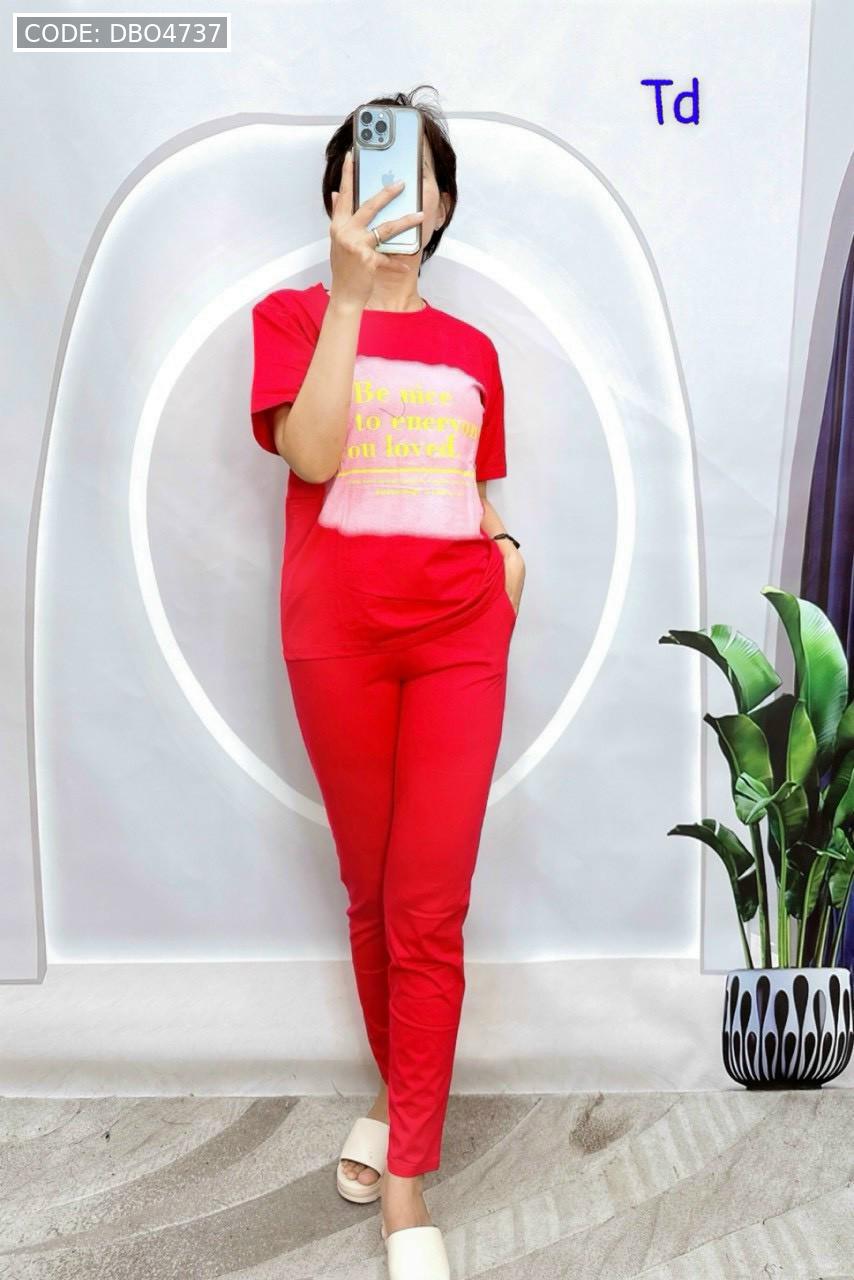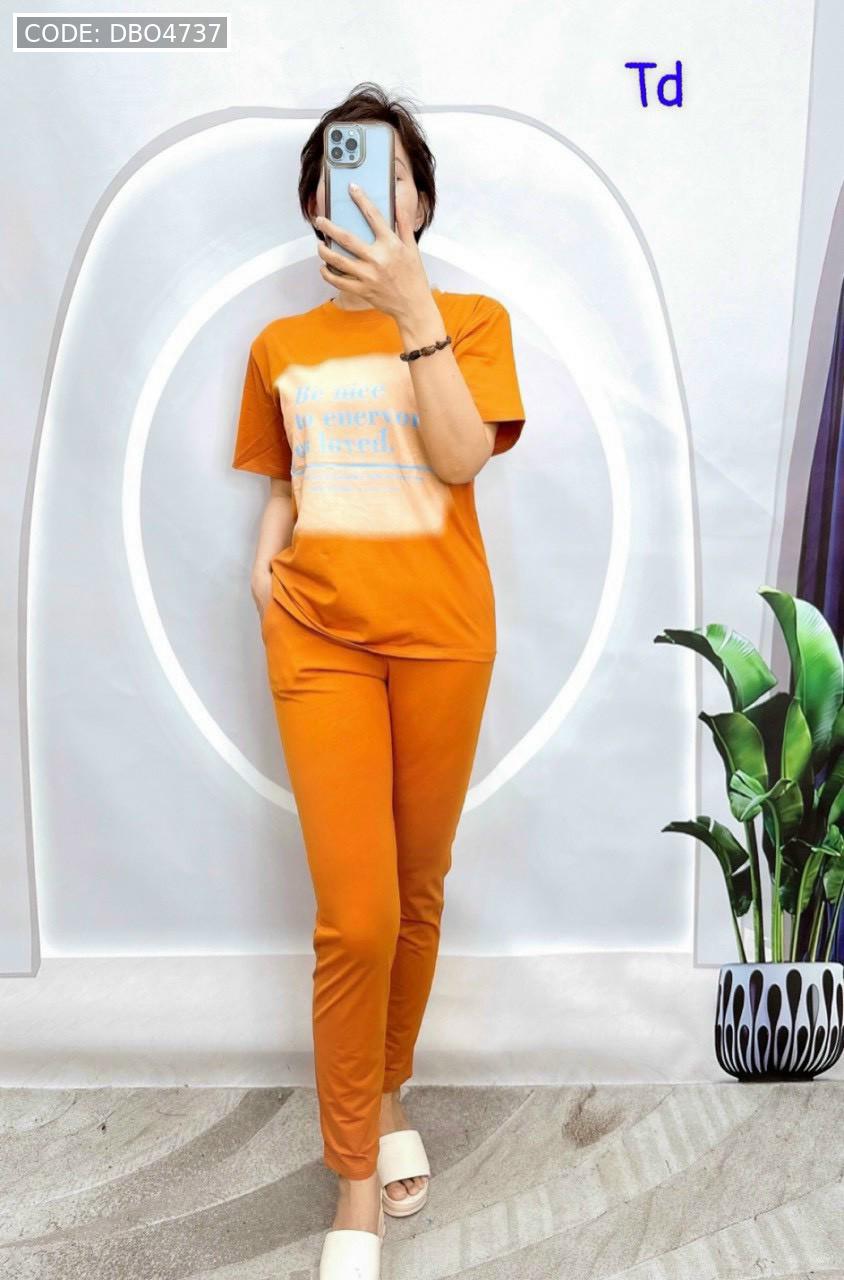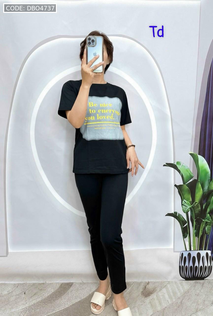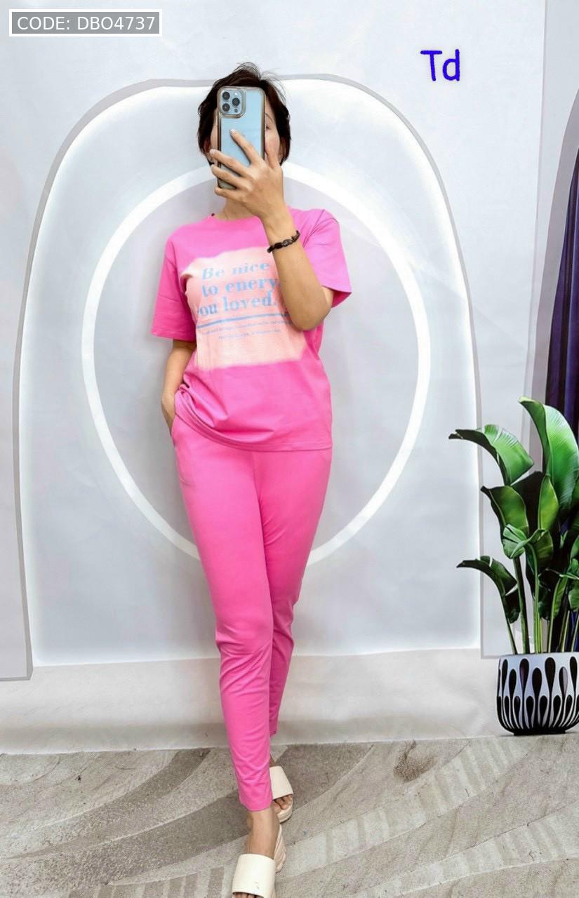 Shop sỉ đồ bộ quần dài bo thun áo tay ngắn in bảng chữ