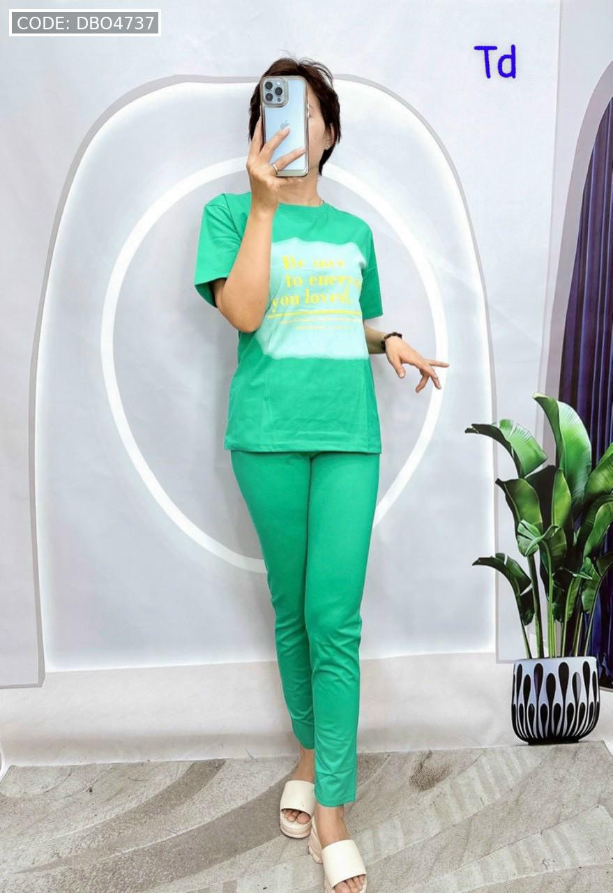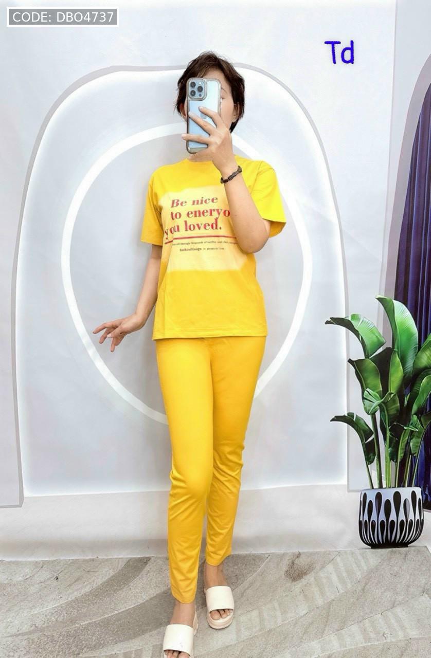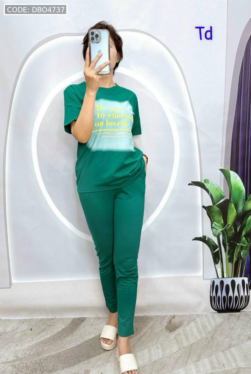 Shop sỉ đồ bộ quần dài bo thun áo tay ngắn in bảng chữ