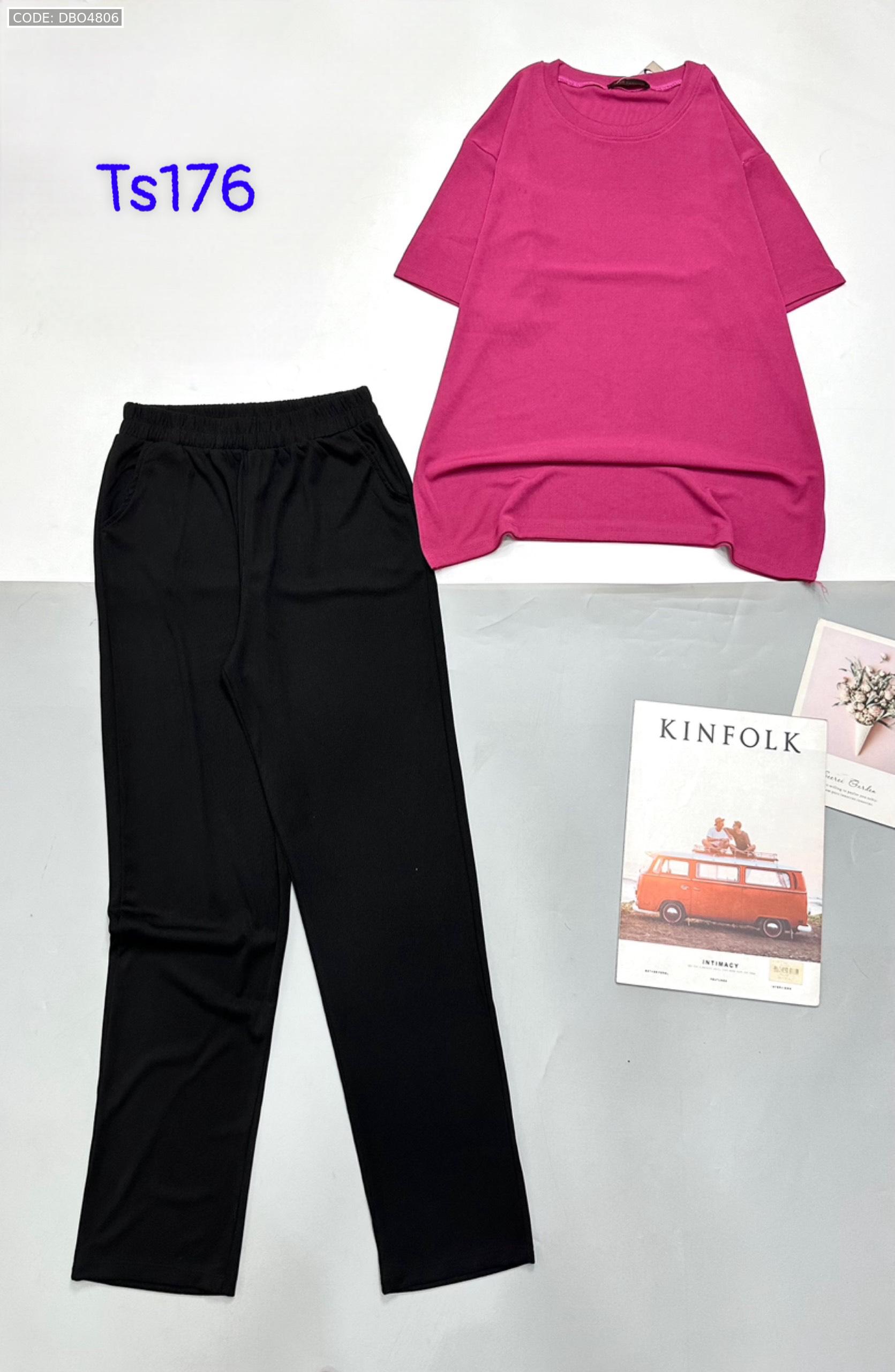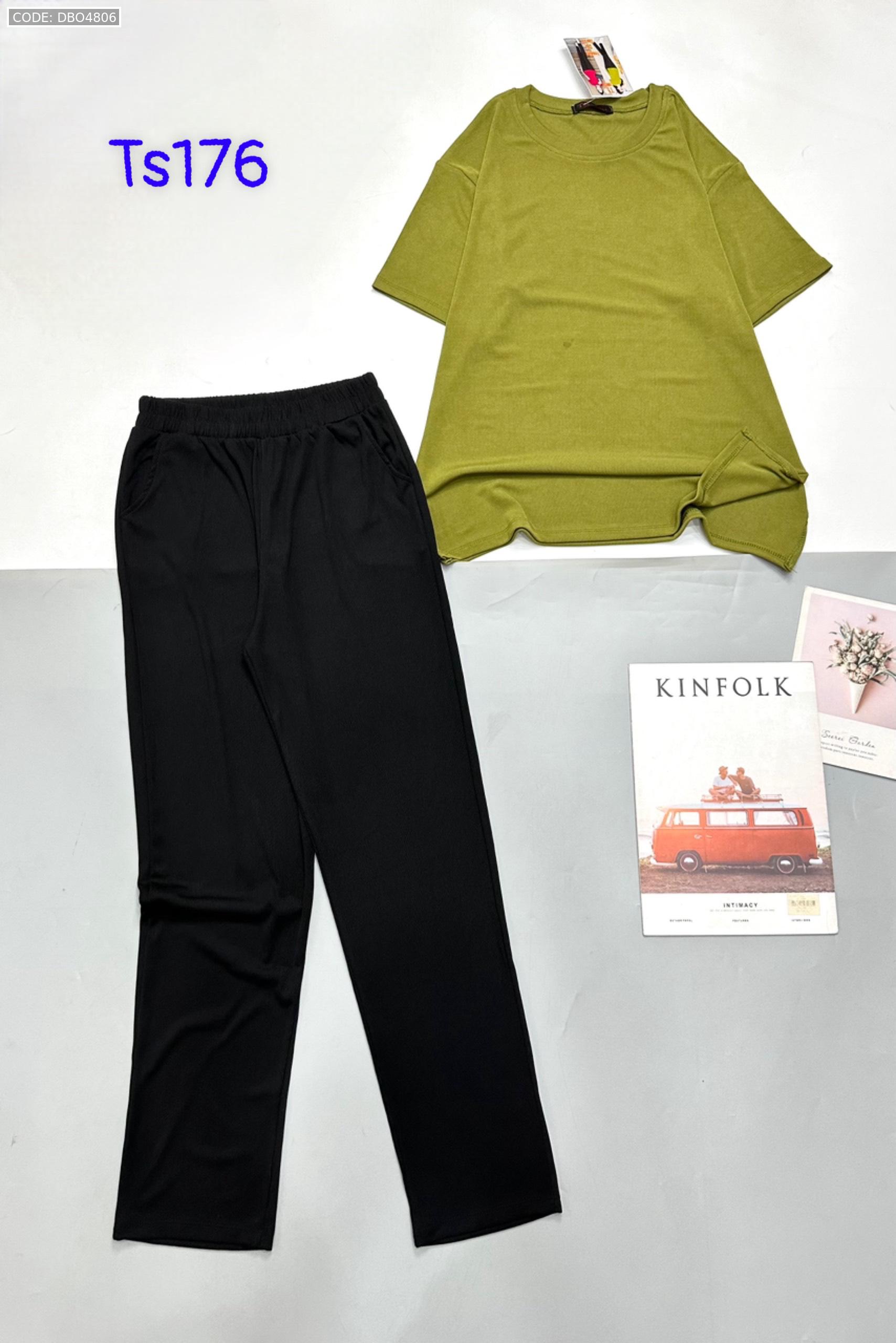 Shop sỉ đồ bộ quần dài đen áo thun trơn tăm 2 da