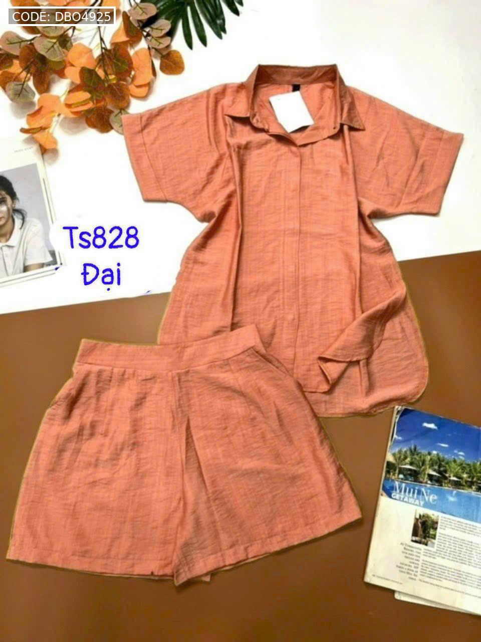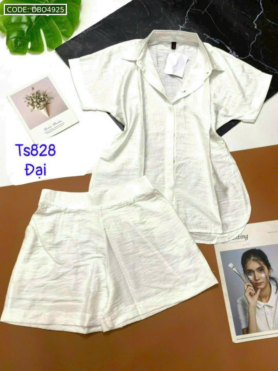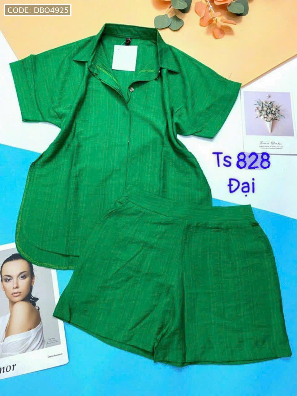 Shop sỉ đồ bộ quần đùi áo sơ mi tay ngắn màu trơn