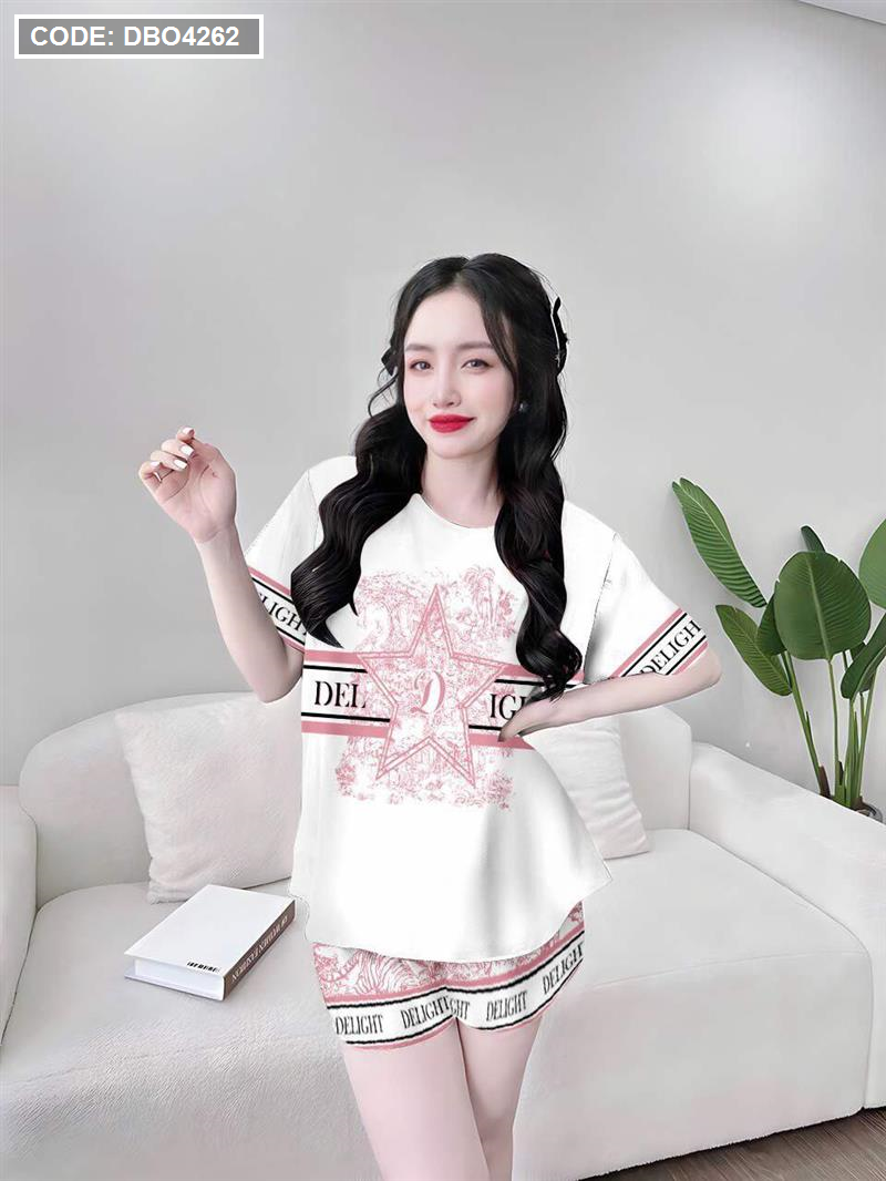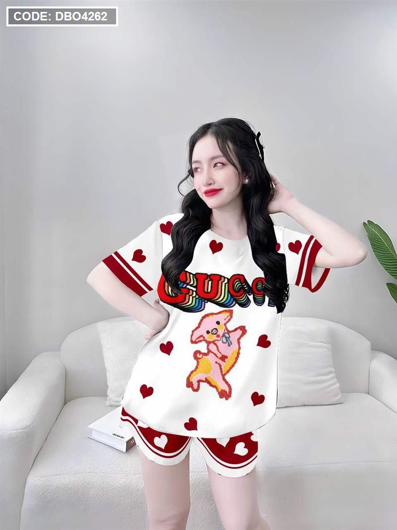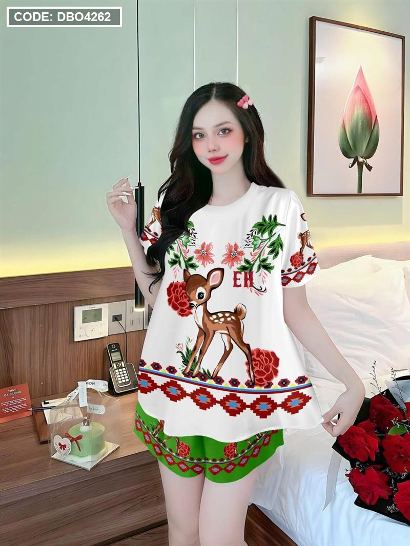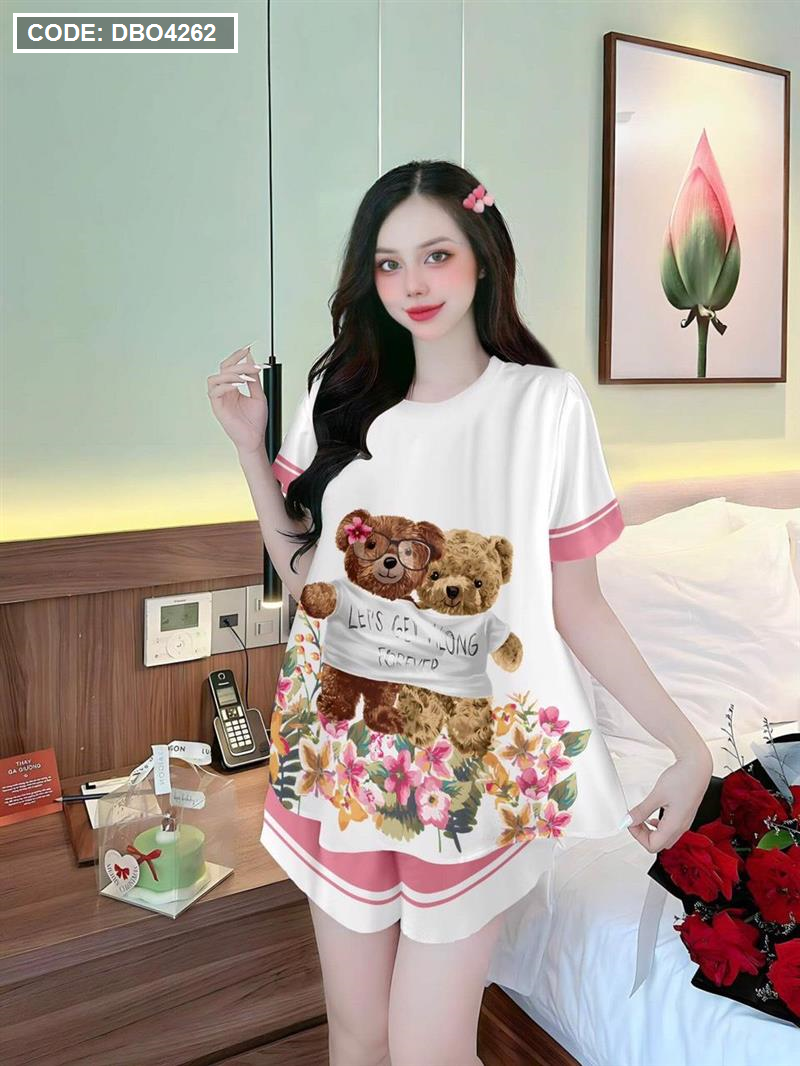 Đồ bộ quần đùi áo tay ngắn cổ tròn siêu mát in hình dể thương