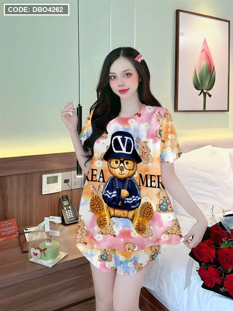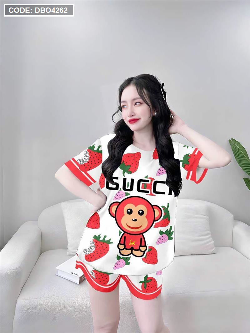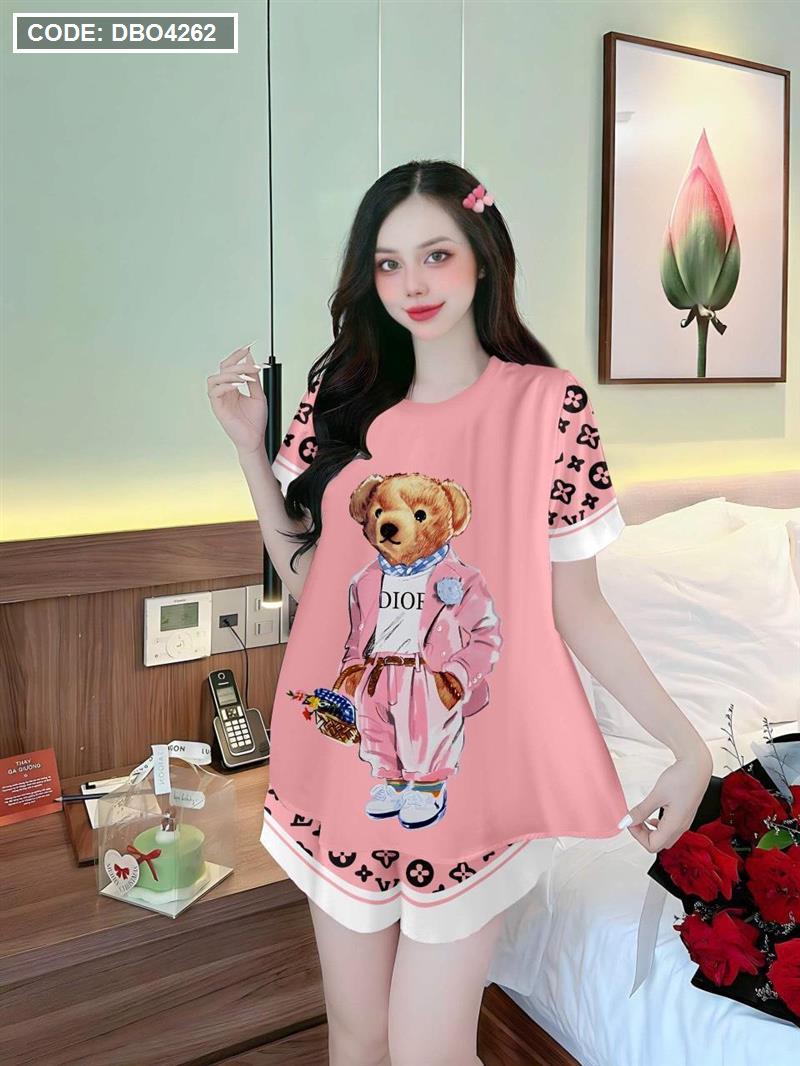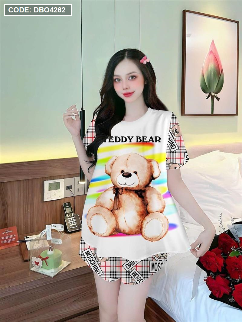 Đồ bộ quần đùi áo tay ngắn cổ tròn siêu mát in hình dể thương
