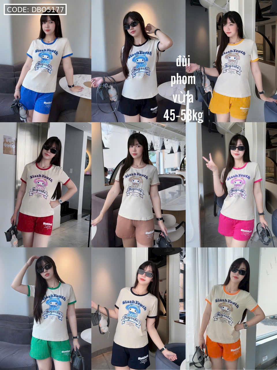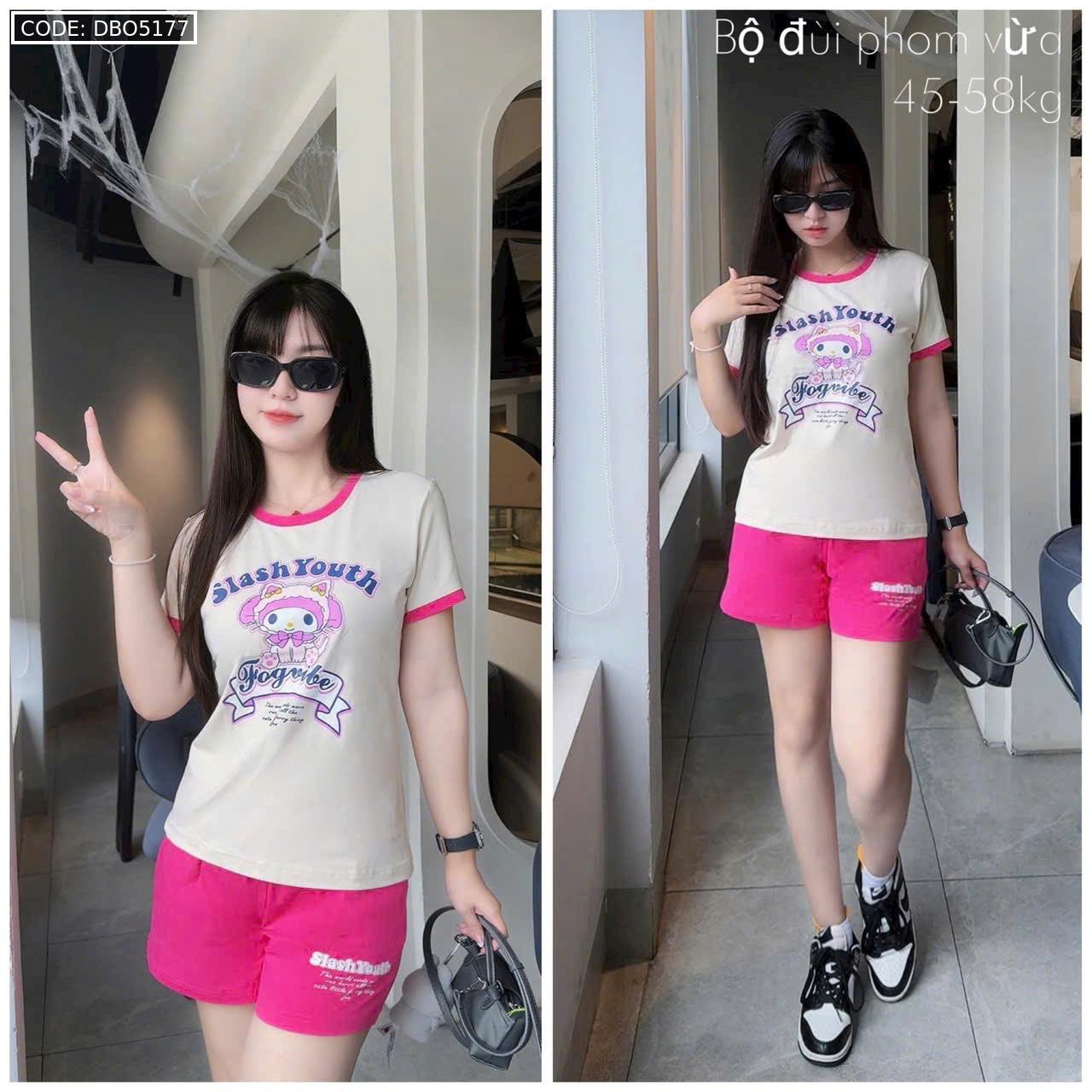 Shop sỉ đồ bộ quần đùi áo tay ngắn in hình và chữ