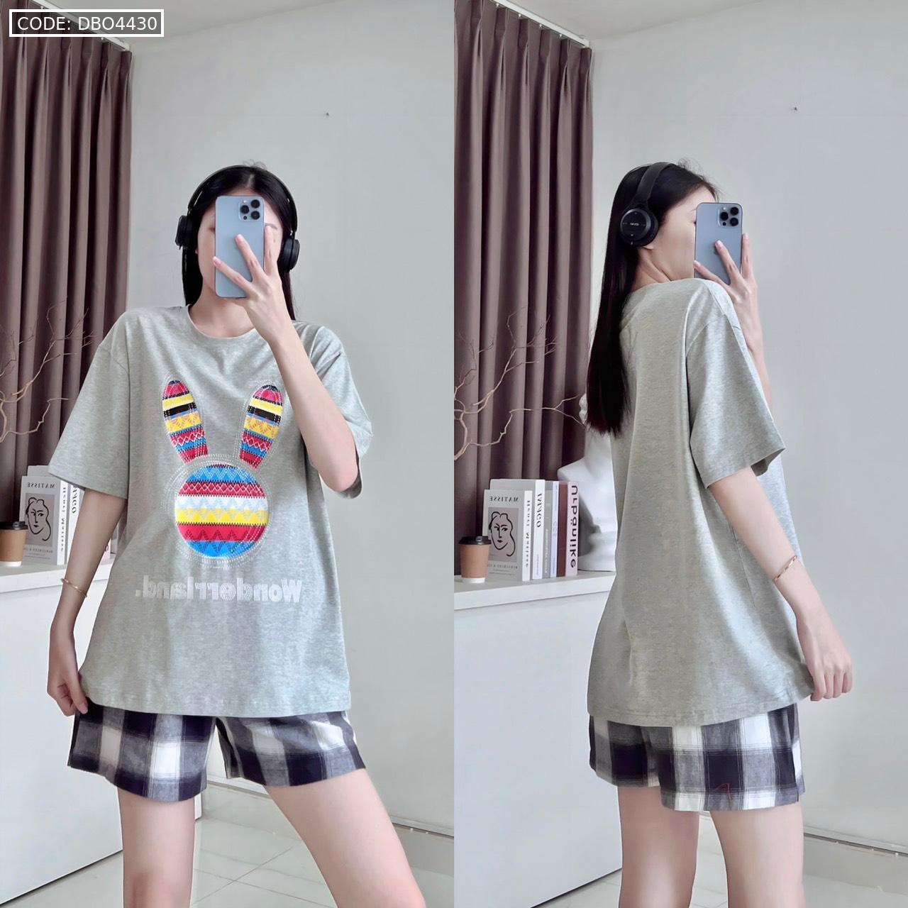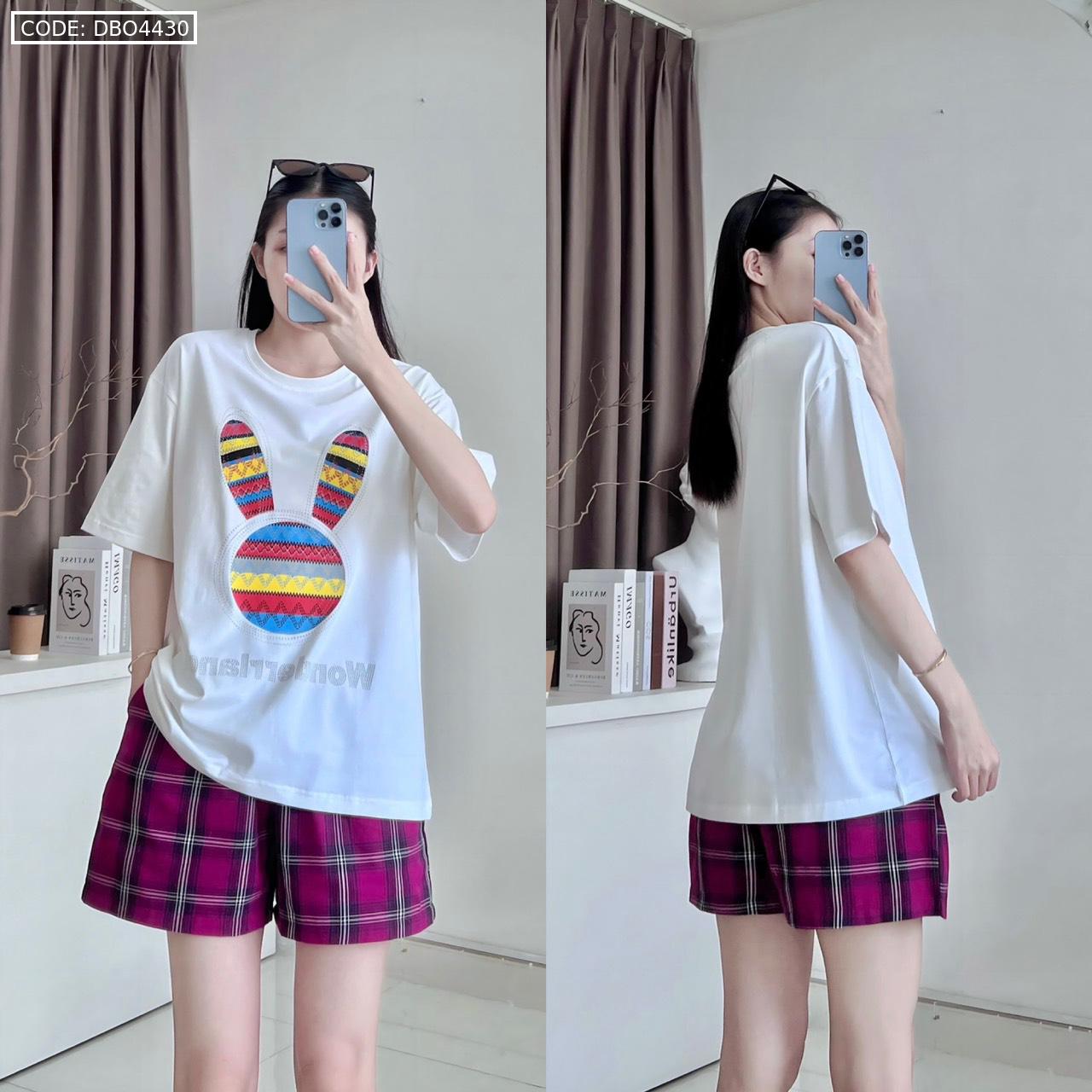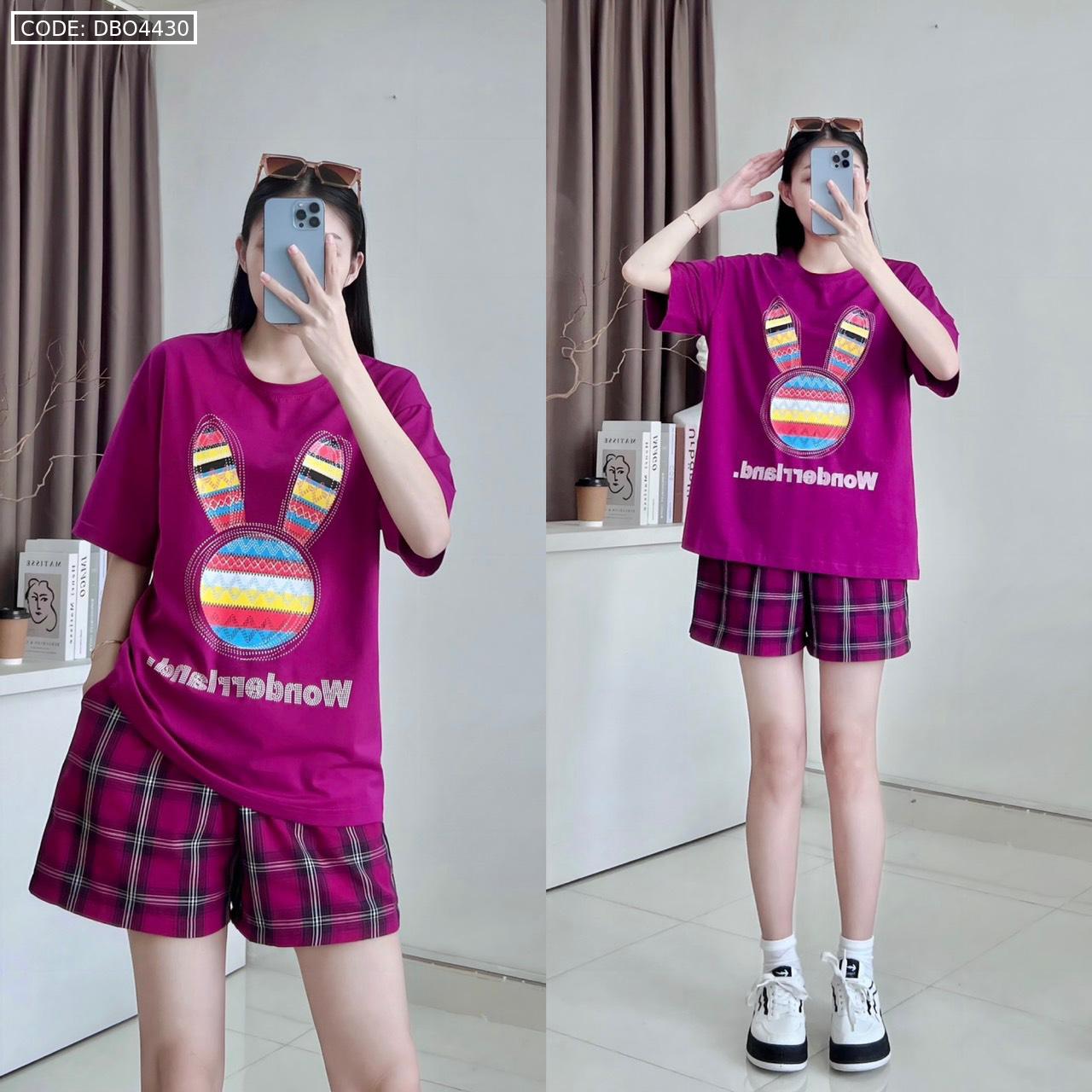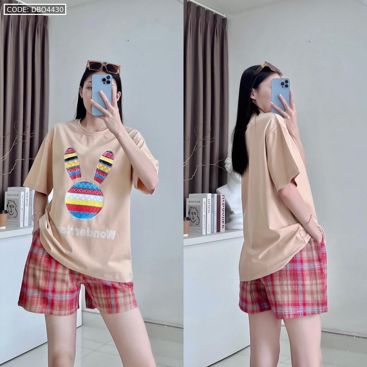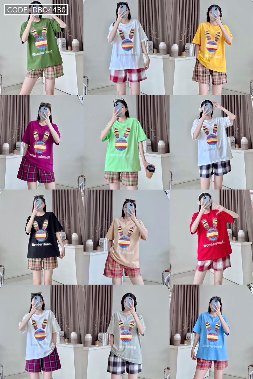 Shop sỉ đồ bộ quần đùi caro áo tay ngắn in đầu thỏ màu