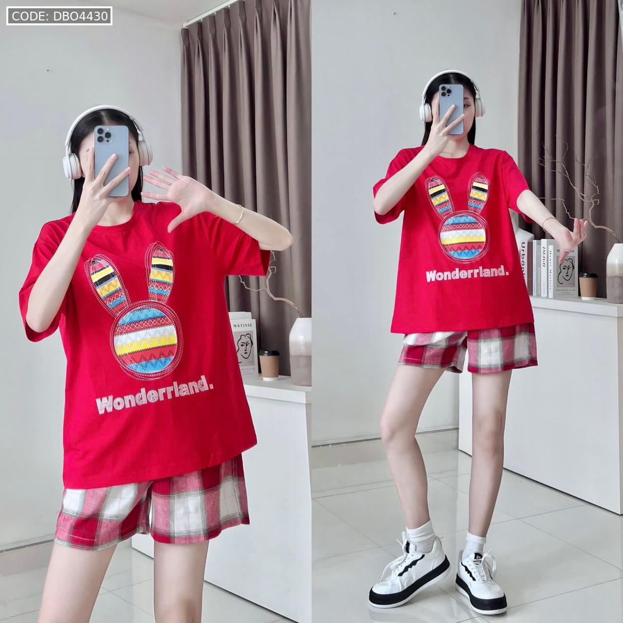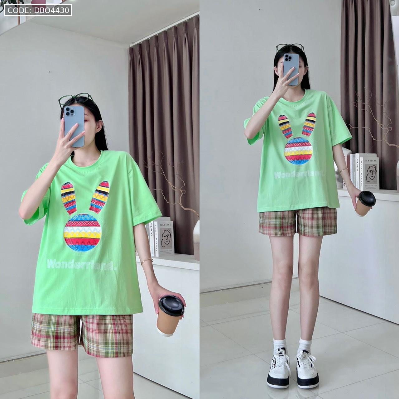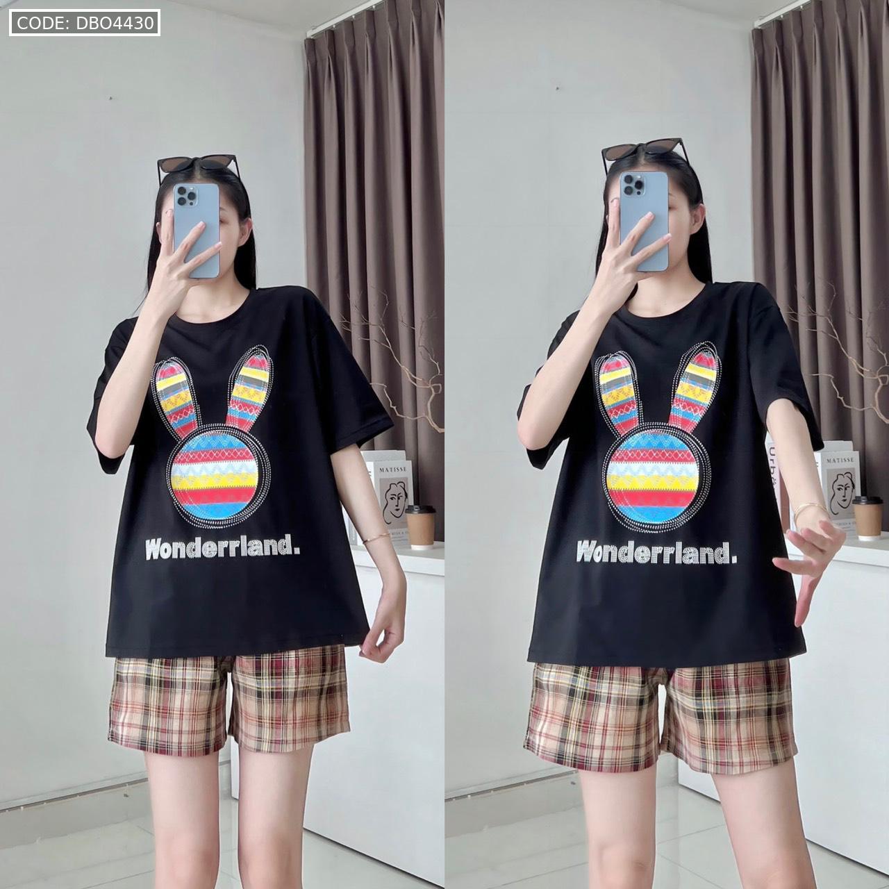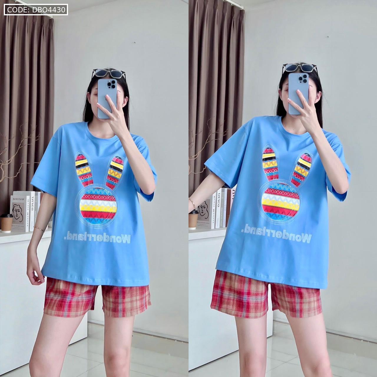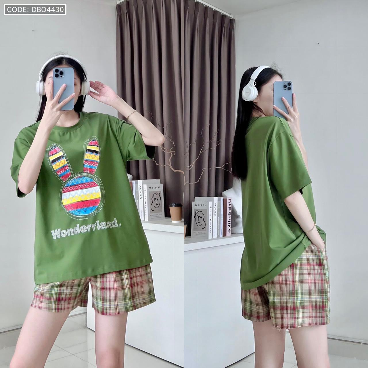 Shop sỉ đồ bộ quần đùi caro áo tay ngắn in đầu thỏ màu